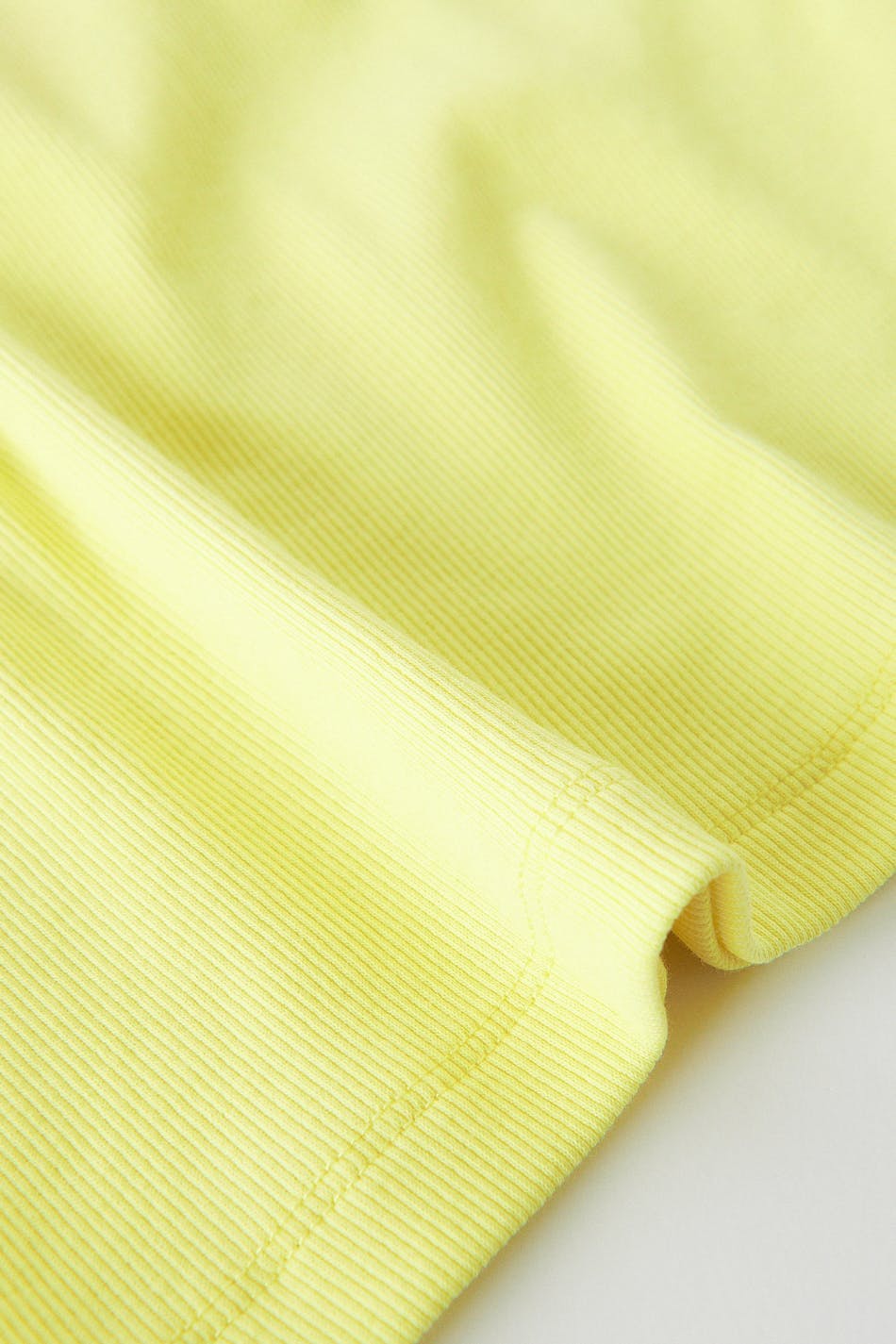 Oberteil von aus unserem Young-Sortiment mit Schulterträgern vorne. Das Oberteil ist gelb und hat eine gerippte Qualität aus Jersey.