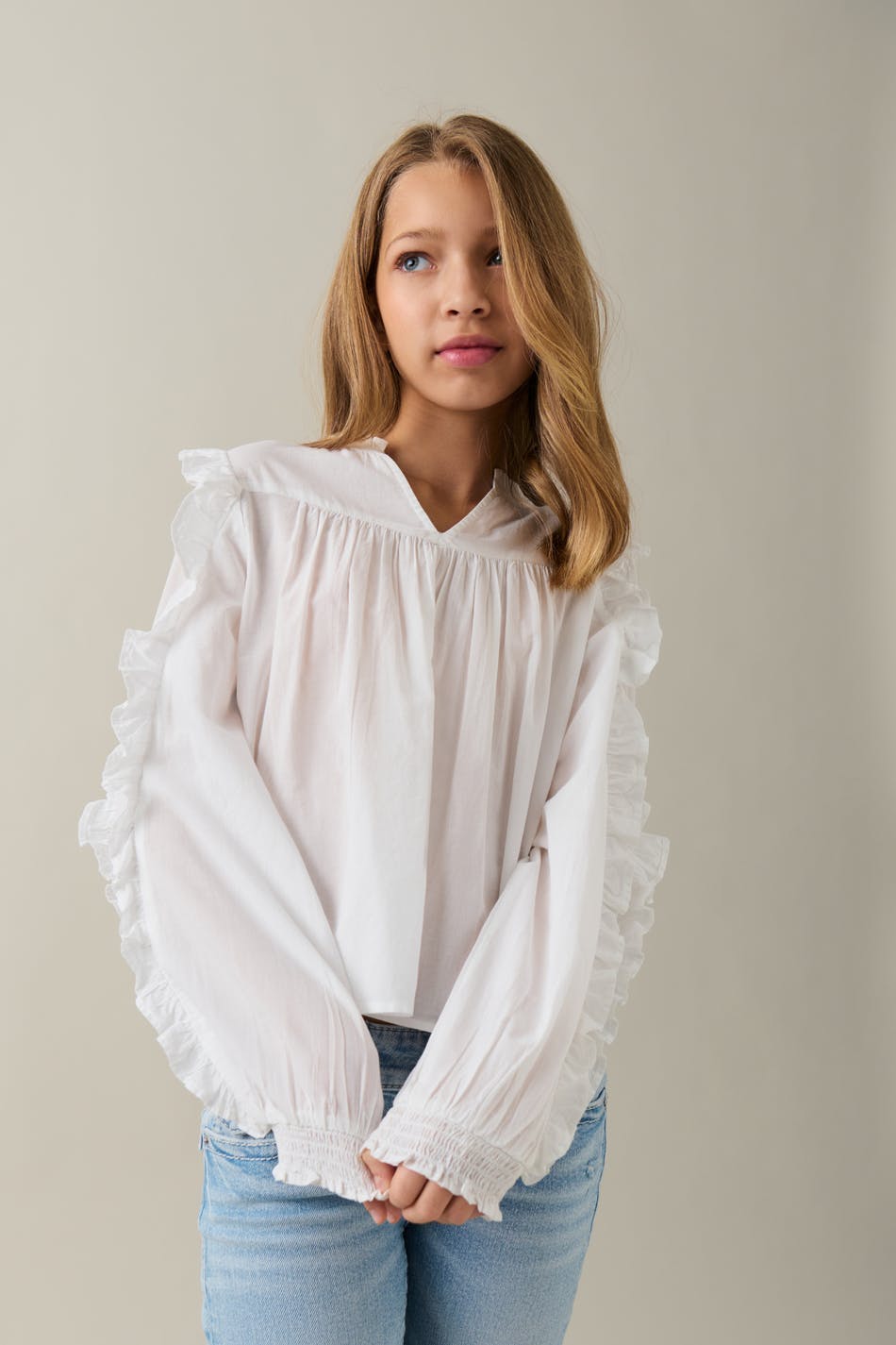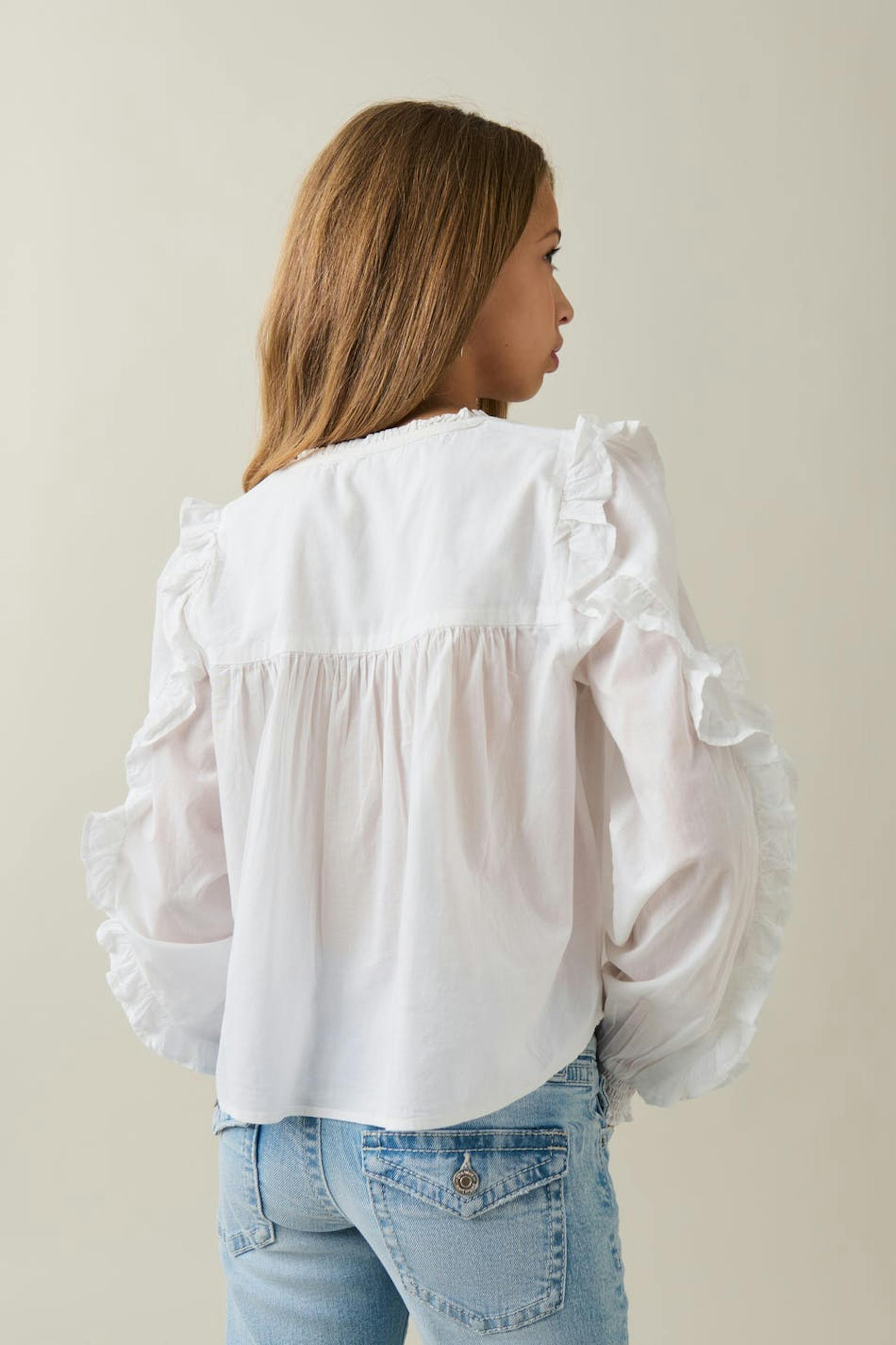 Y buttoned frill blouse