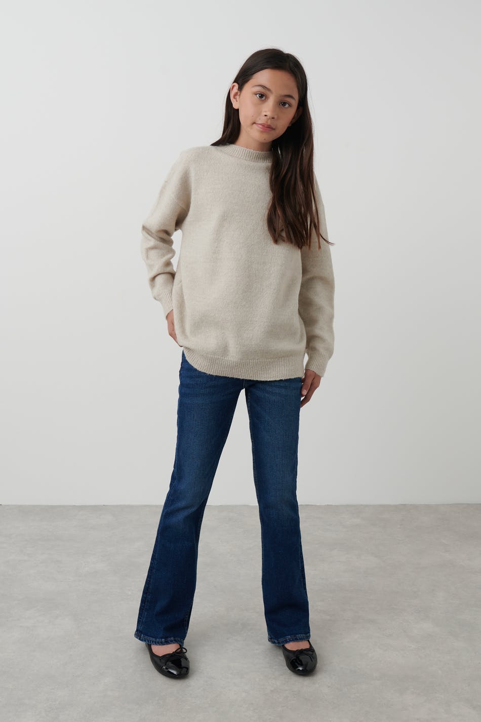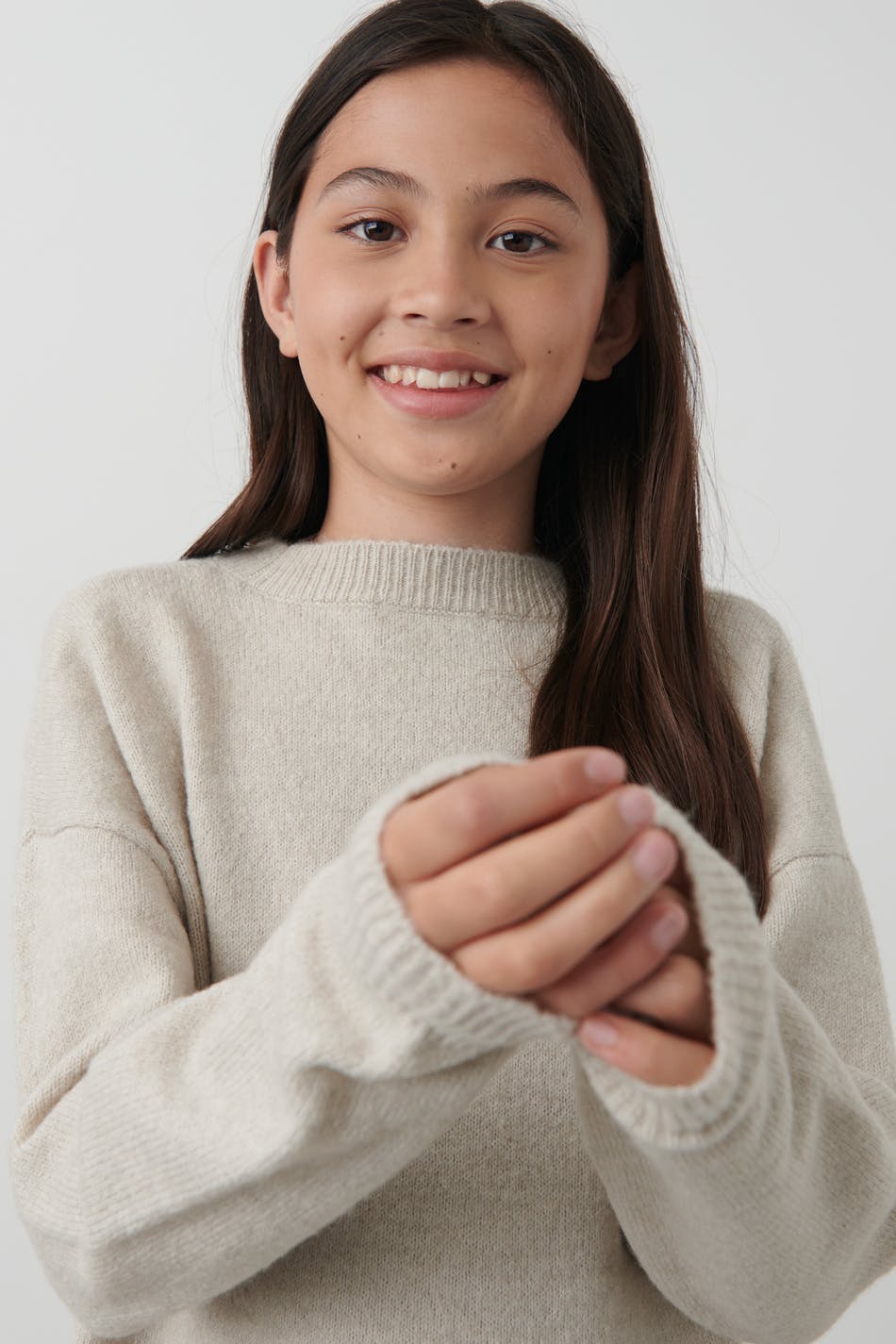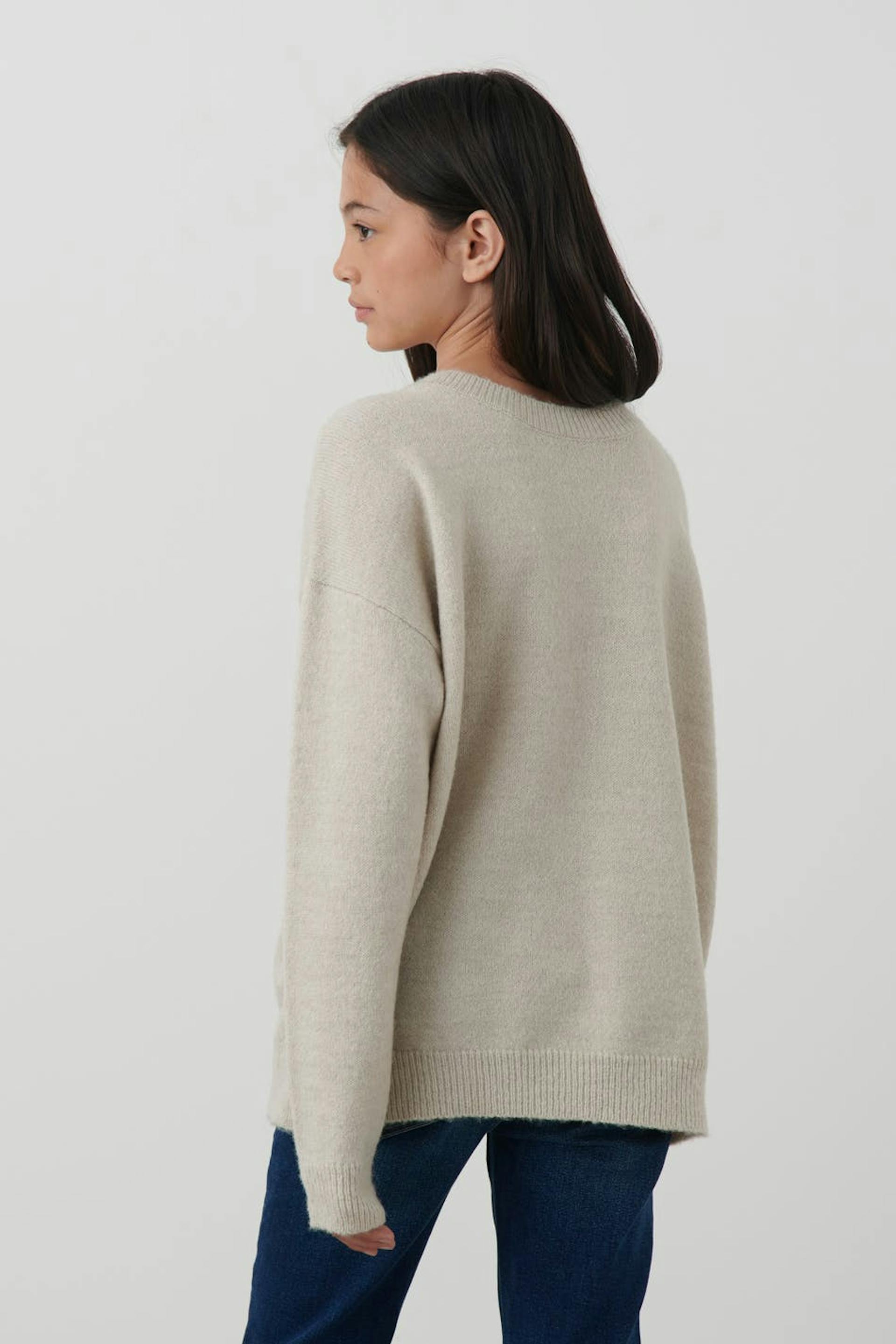 Strickpullover von Gina Tricot mit Oversize-Passform. Der Pullover ist beige.