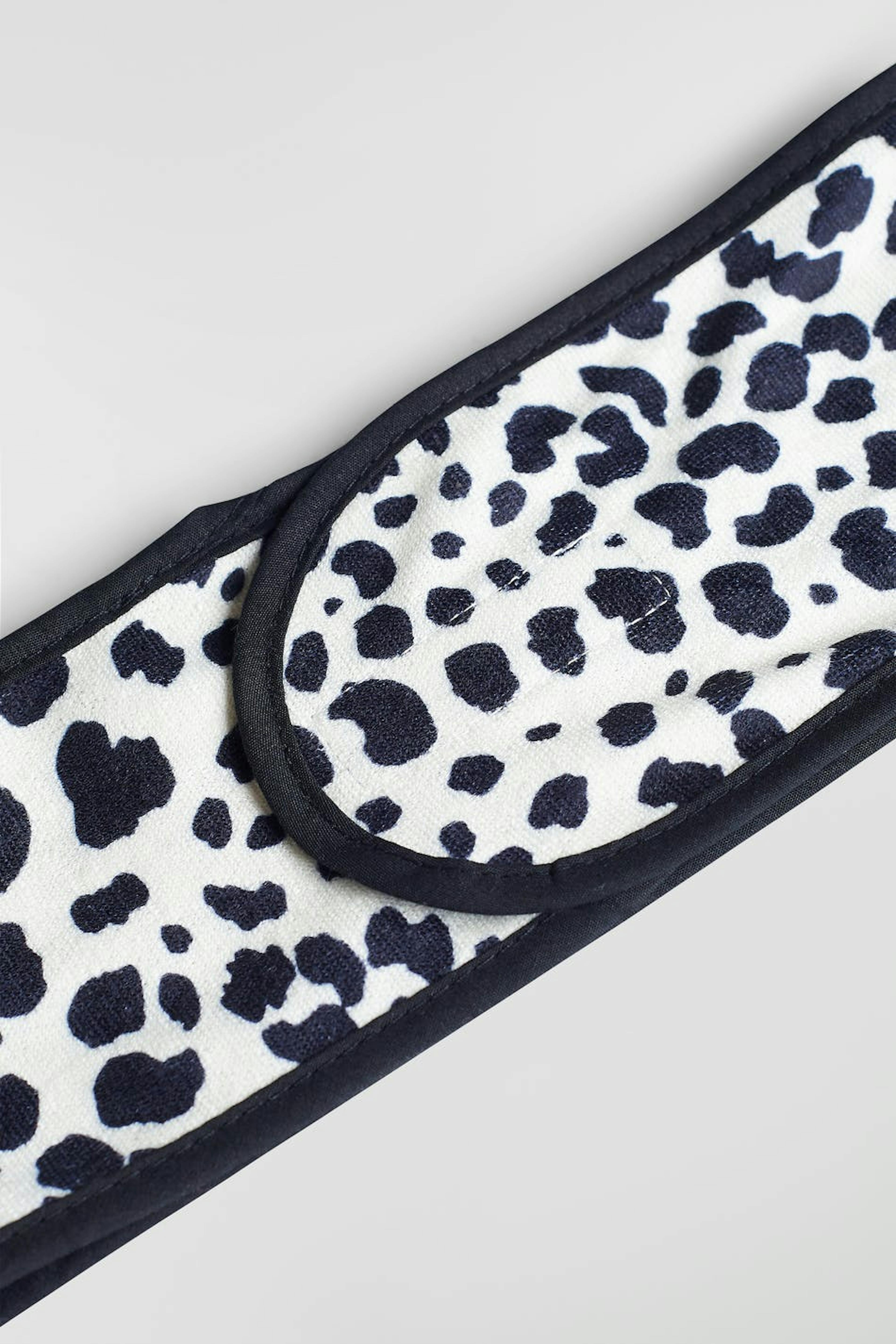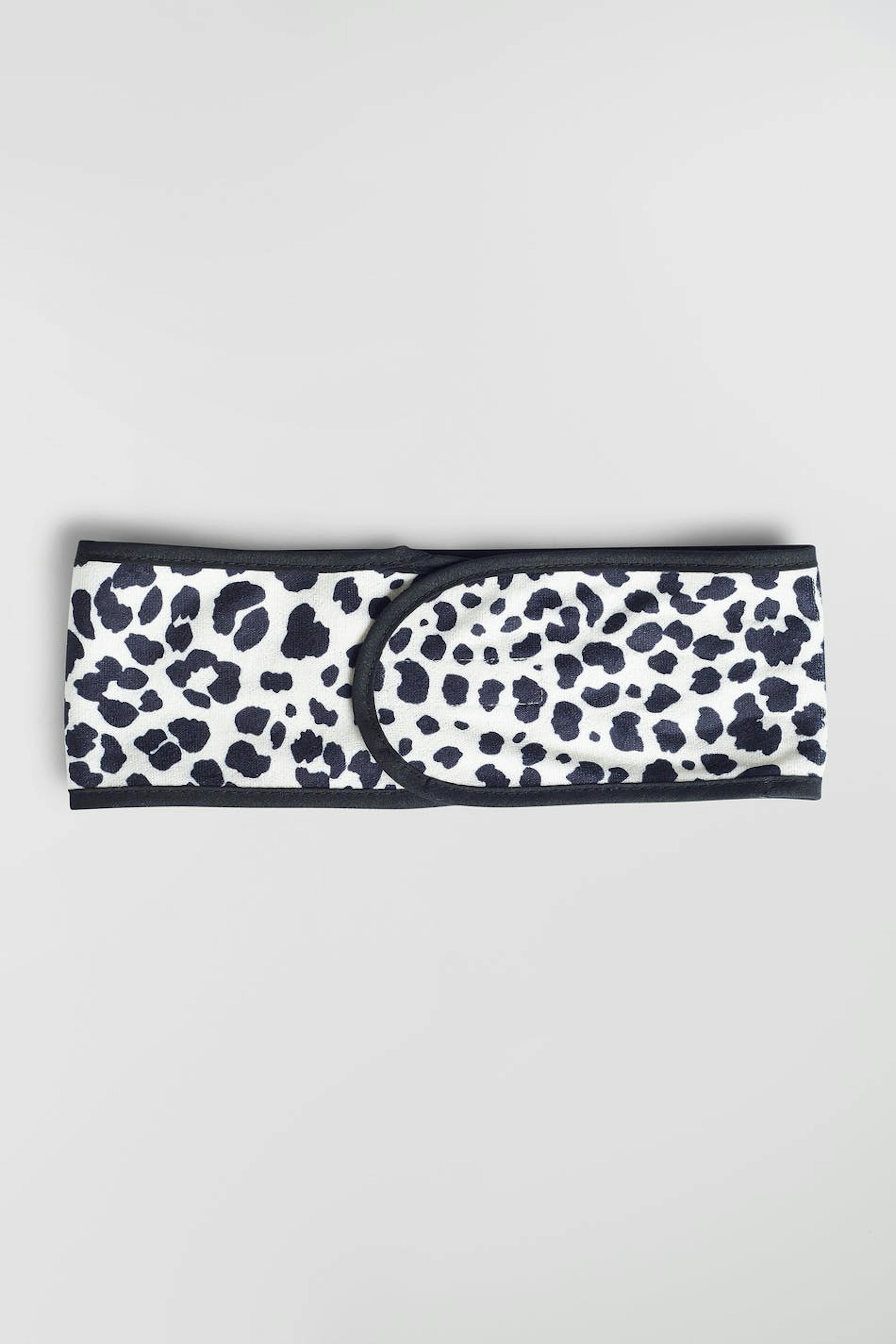 Elastisk hårbånd med en lukning med en velcrostrop. Leopard, hvid, sort og blød.