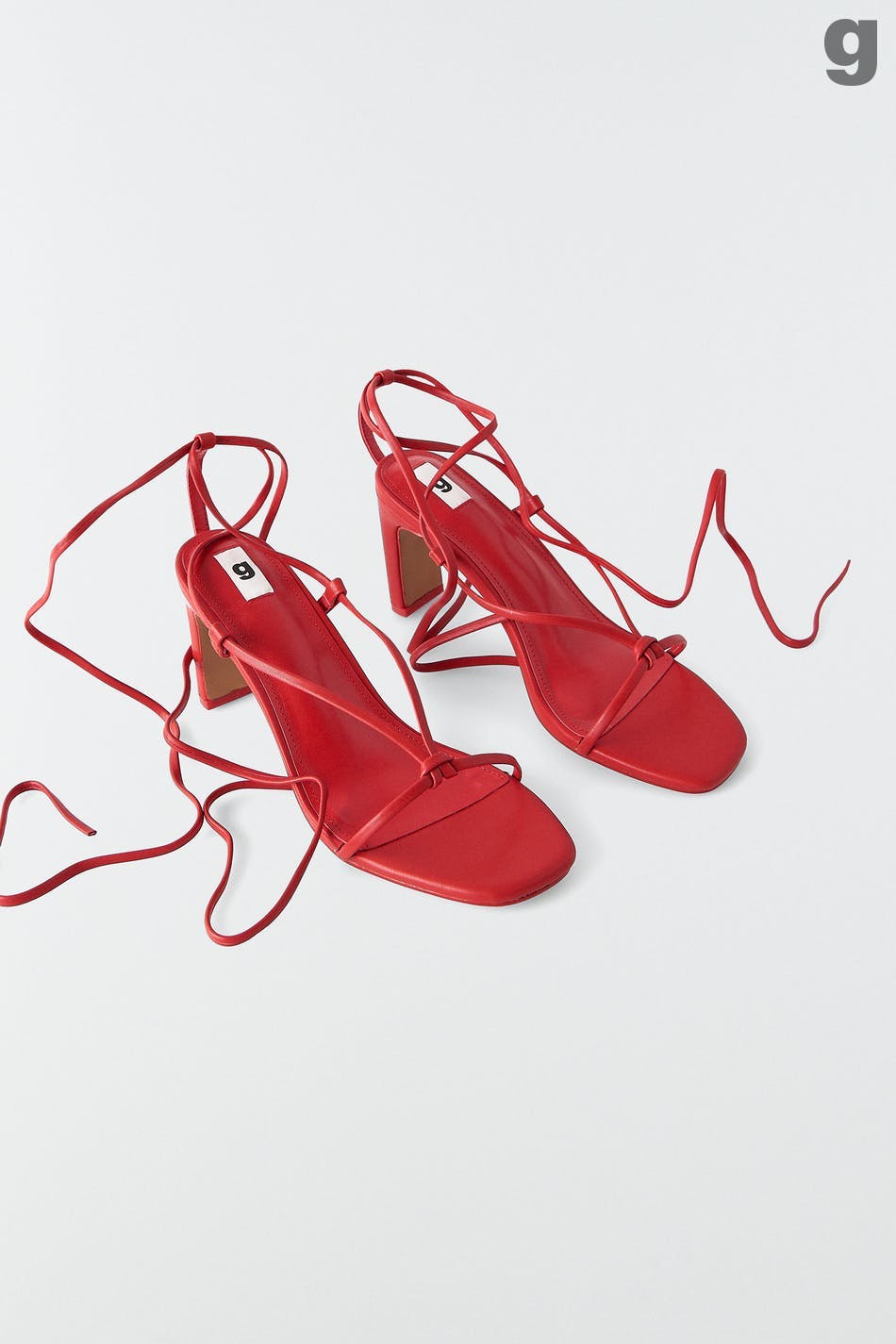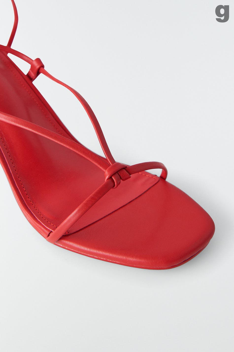 Højhælede sandaler i PU med justérbare, tynde remme ved anklerne. Sandalerne er røde og har åben tå.