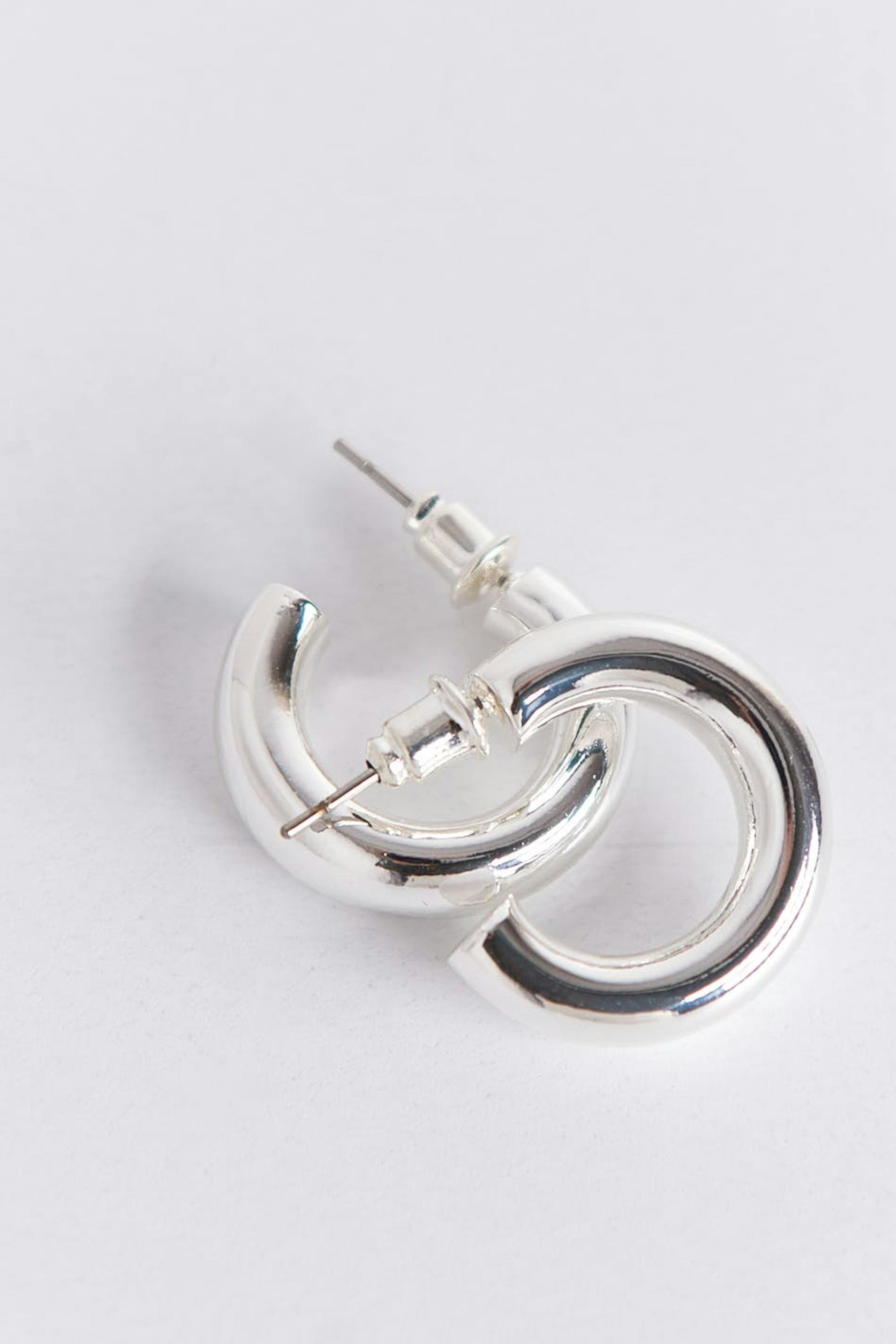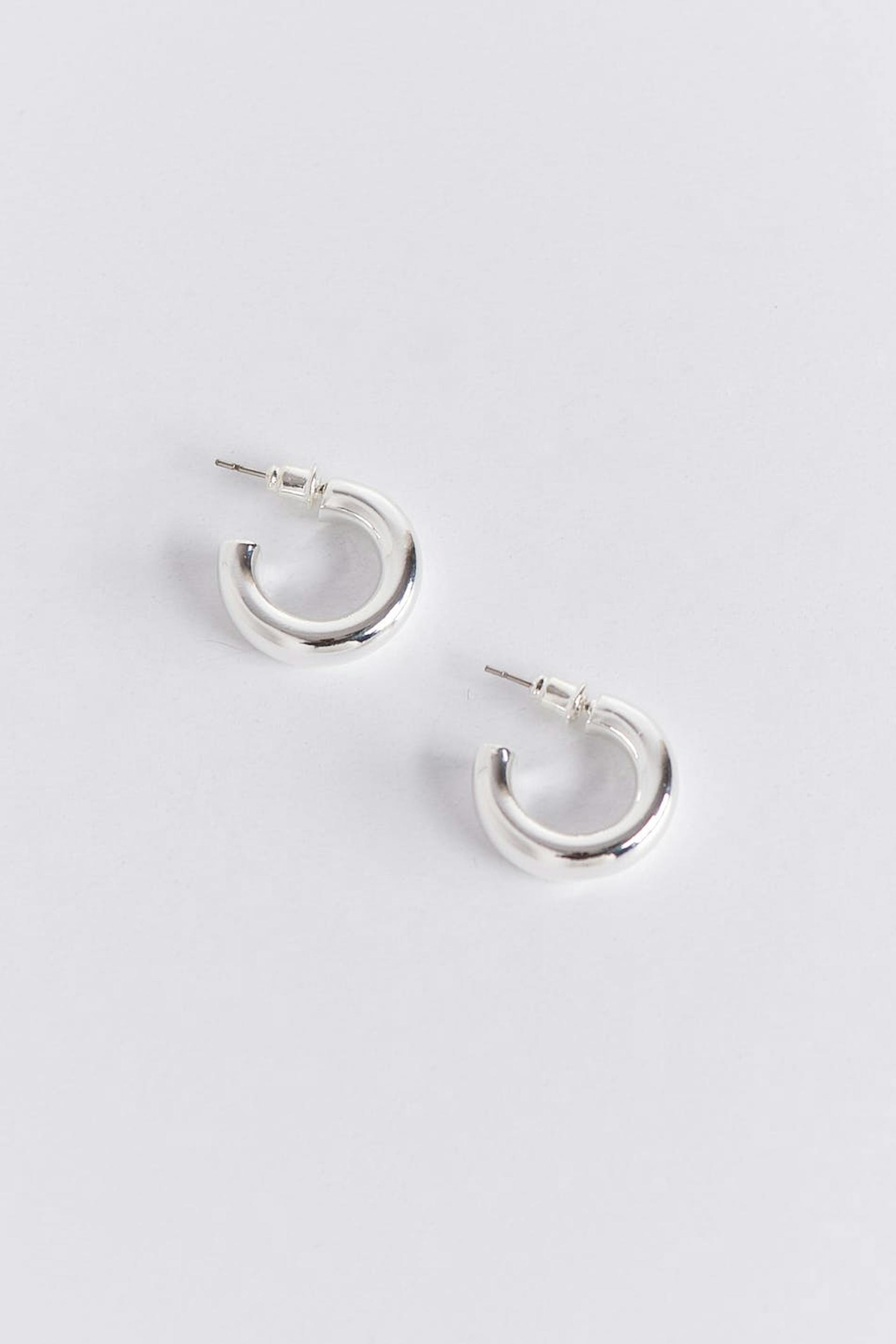 Små hoop-øreringe med klassisk design. Hoop-øreringene er sølvfarvede og har skinnende afslutning.