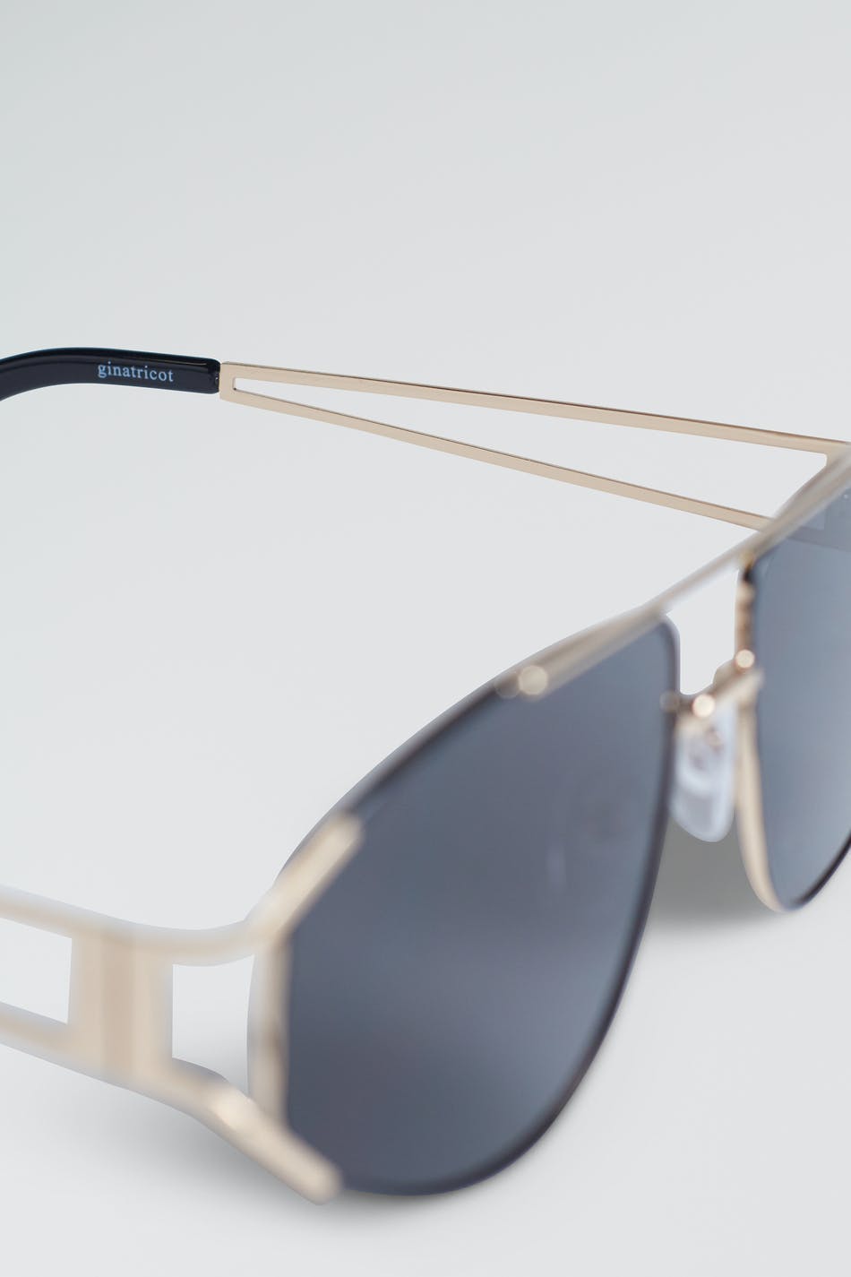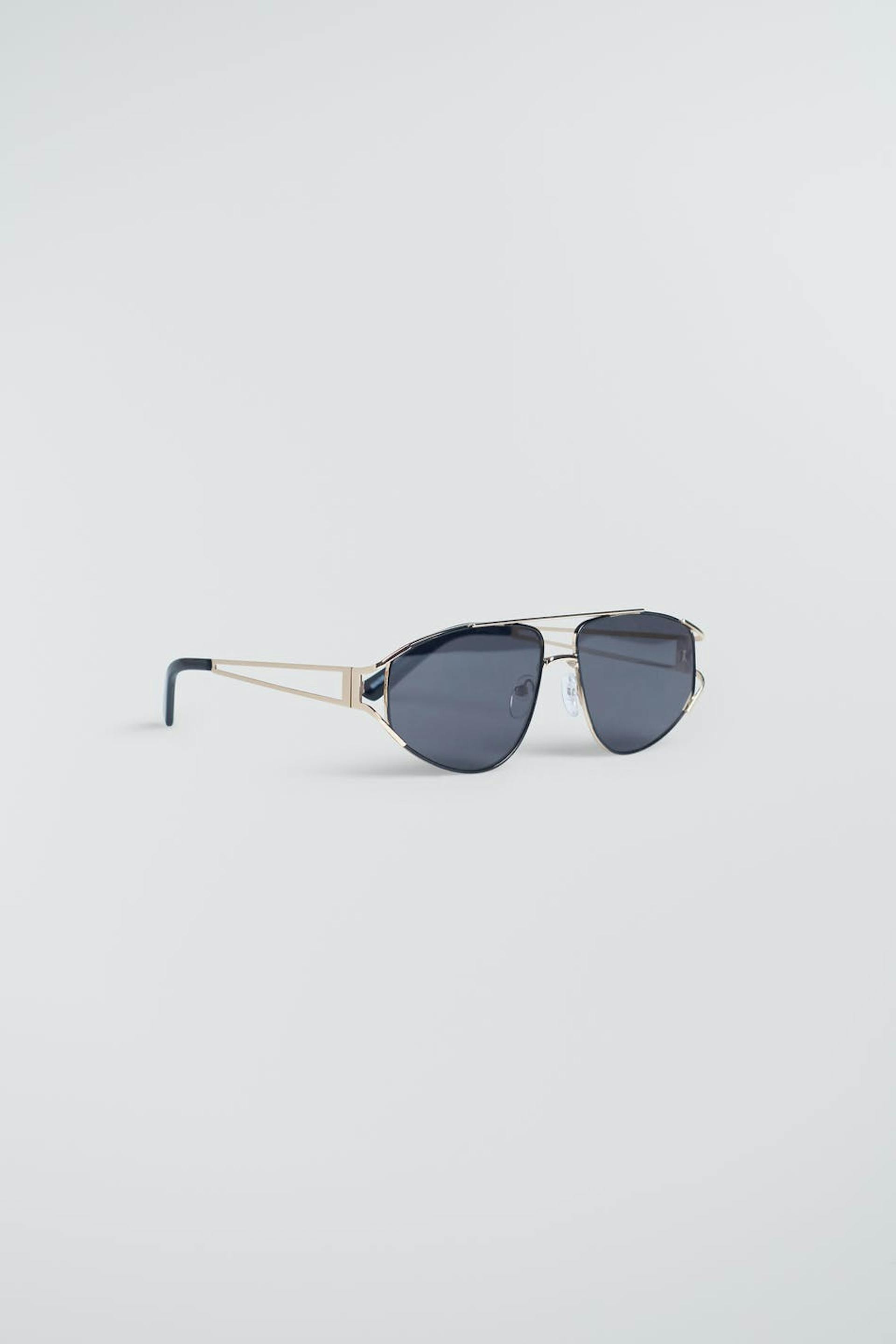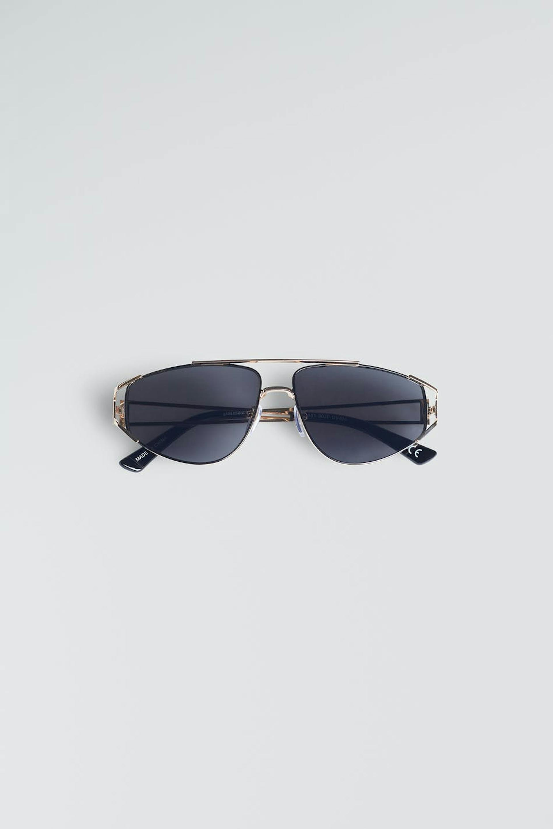 Futuristiske solbriller med et pilotdesign. Solbrillerne er sorte.