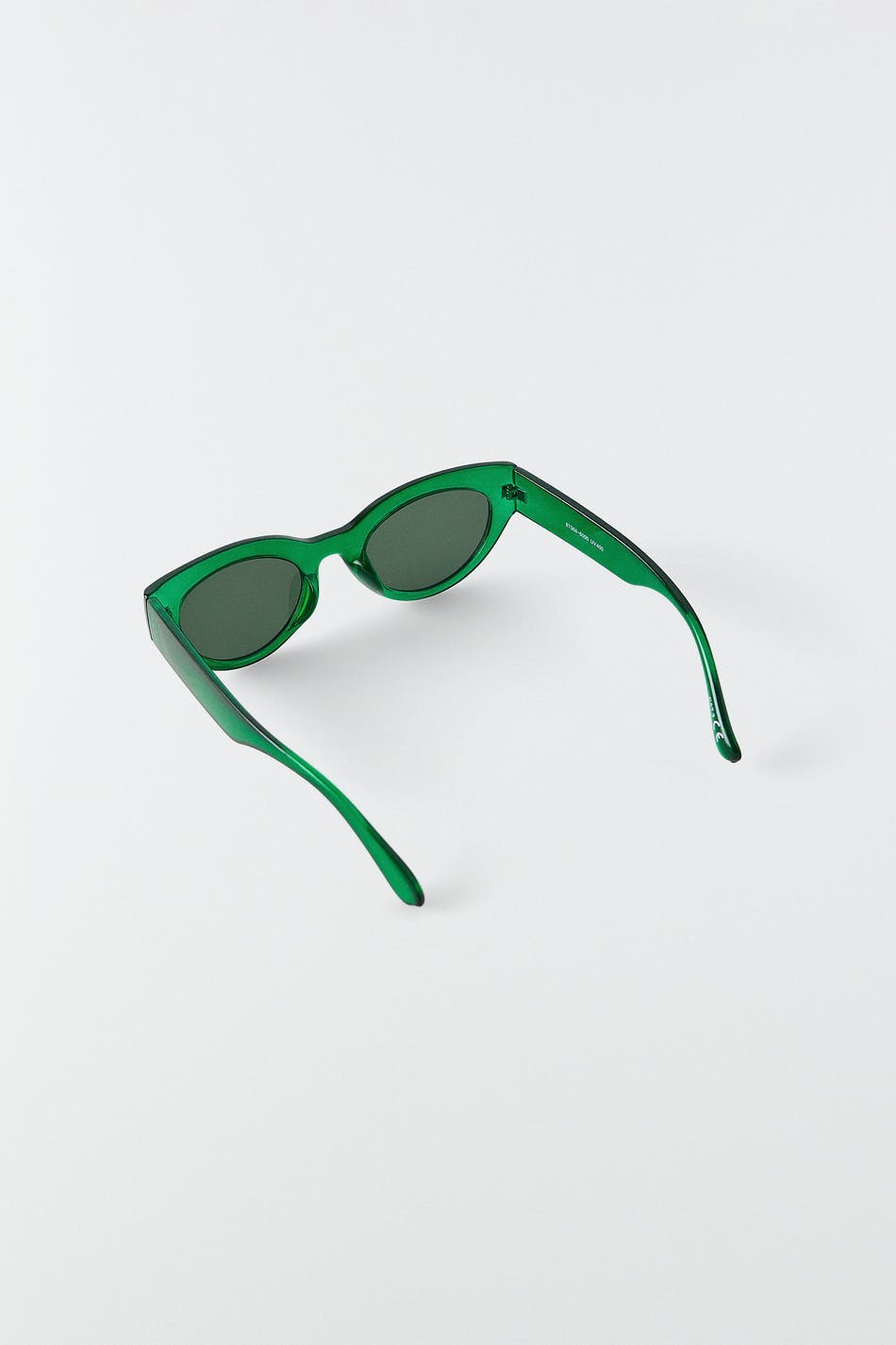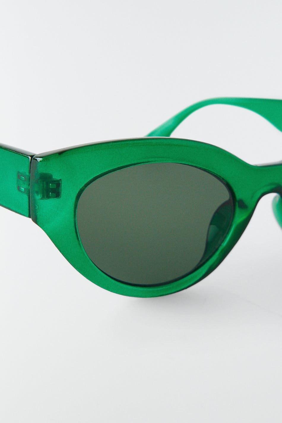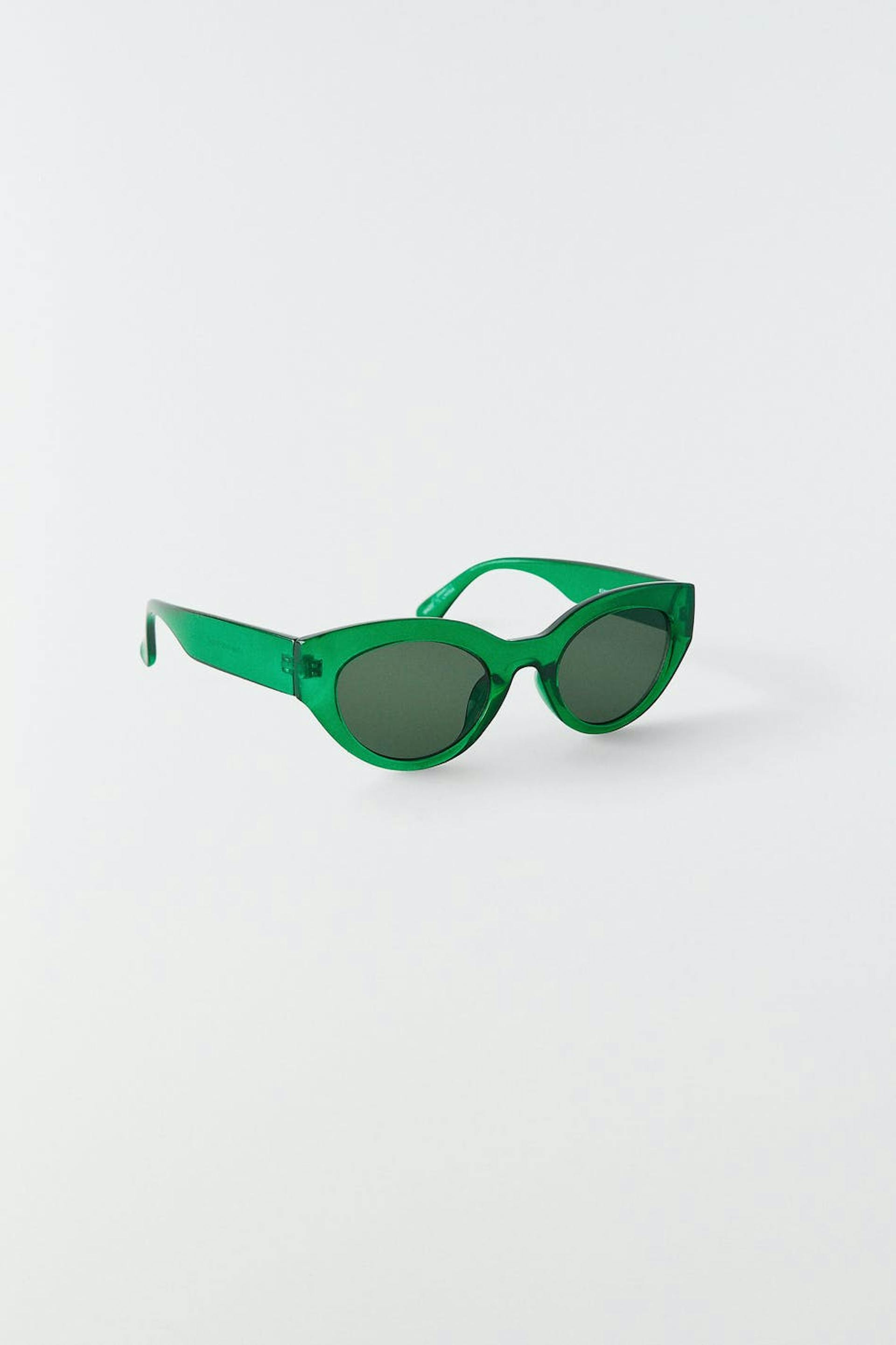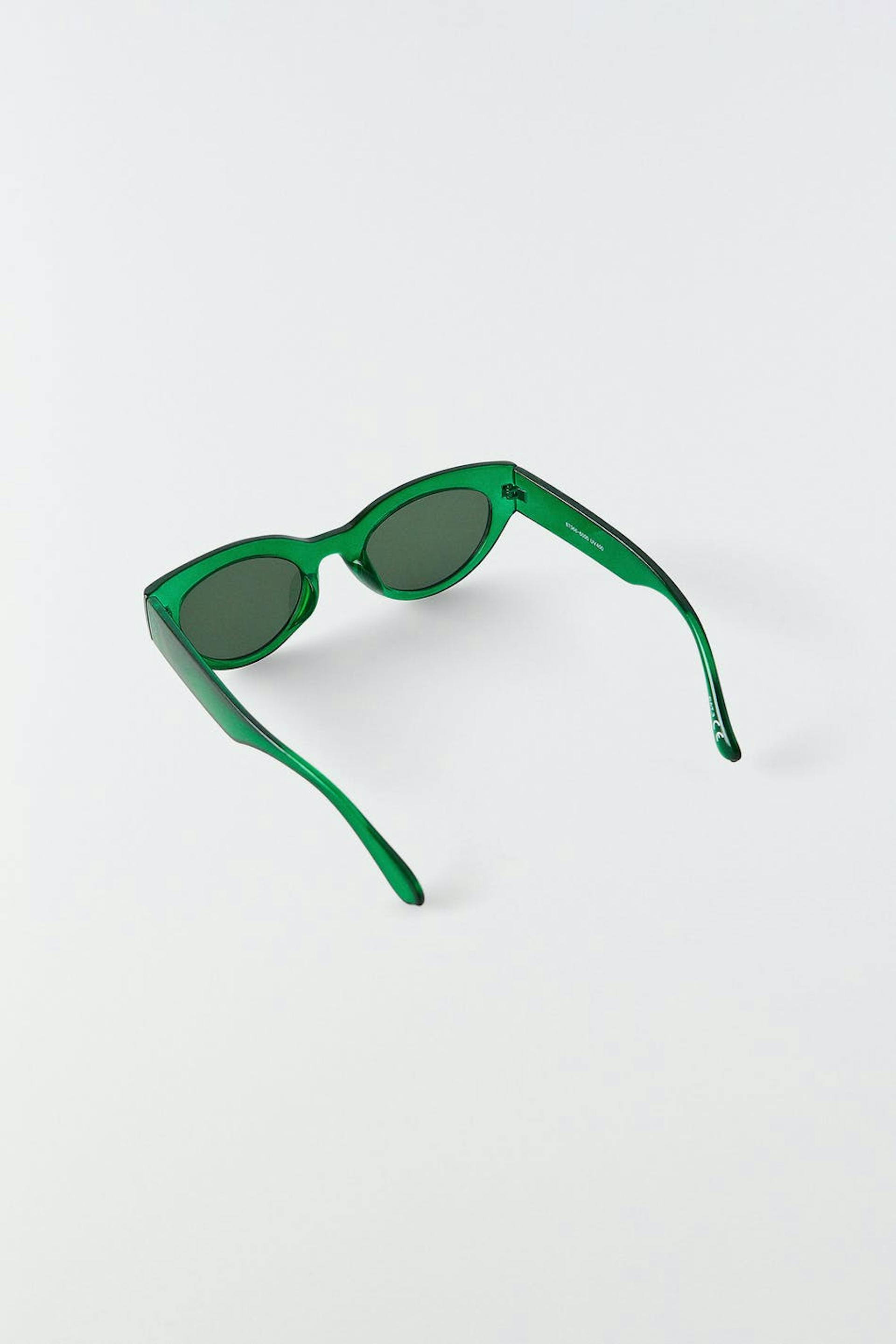 Ovalt solbriller med et stel i plastik. Solbrillerne er grønt.