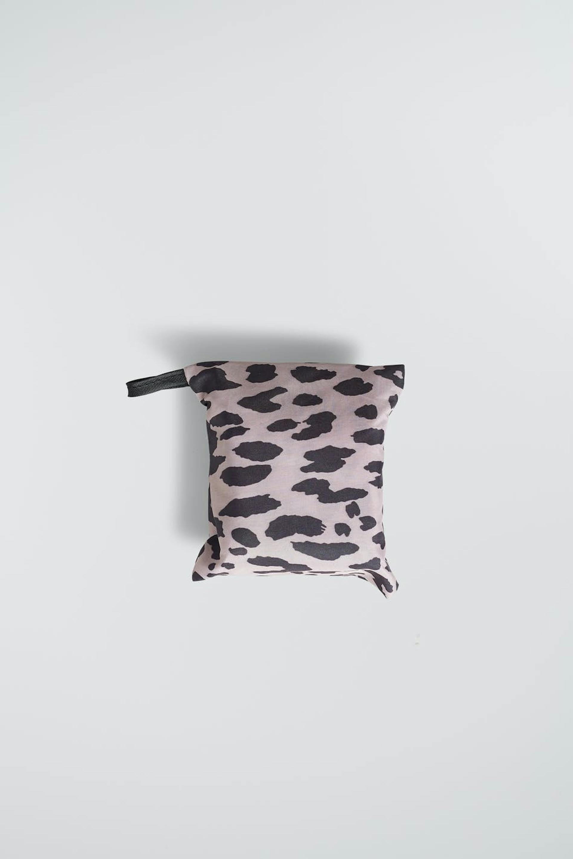 Prikket taske med et shopper design. Tasken er sort og hvid.