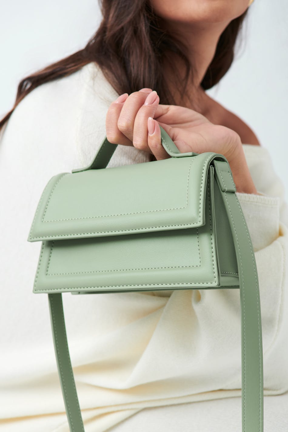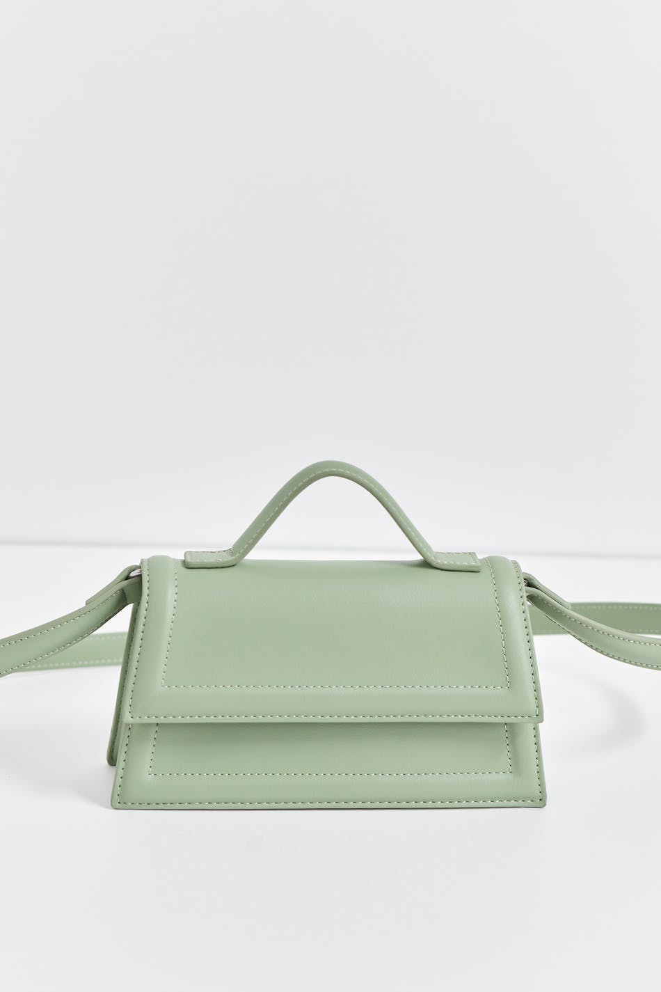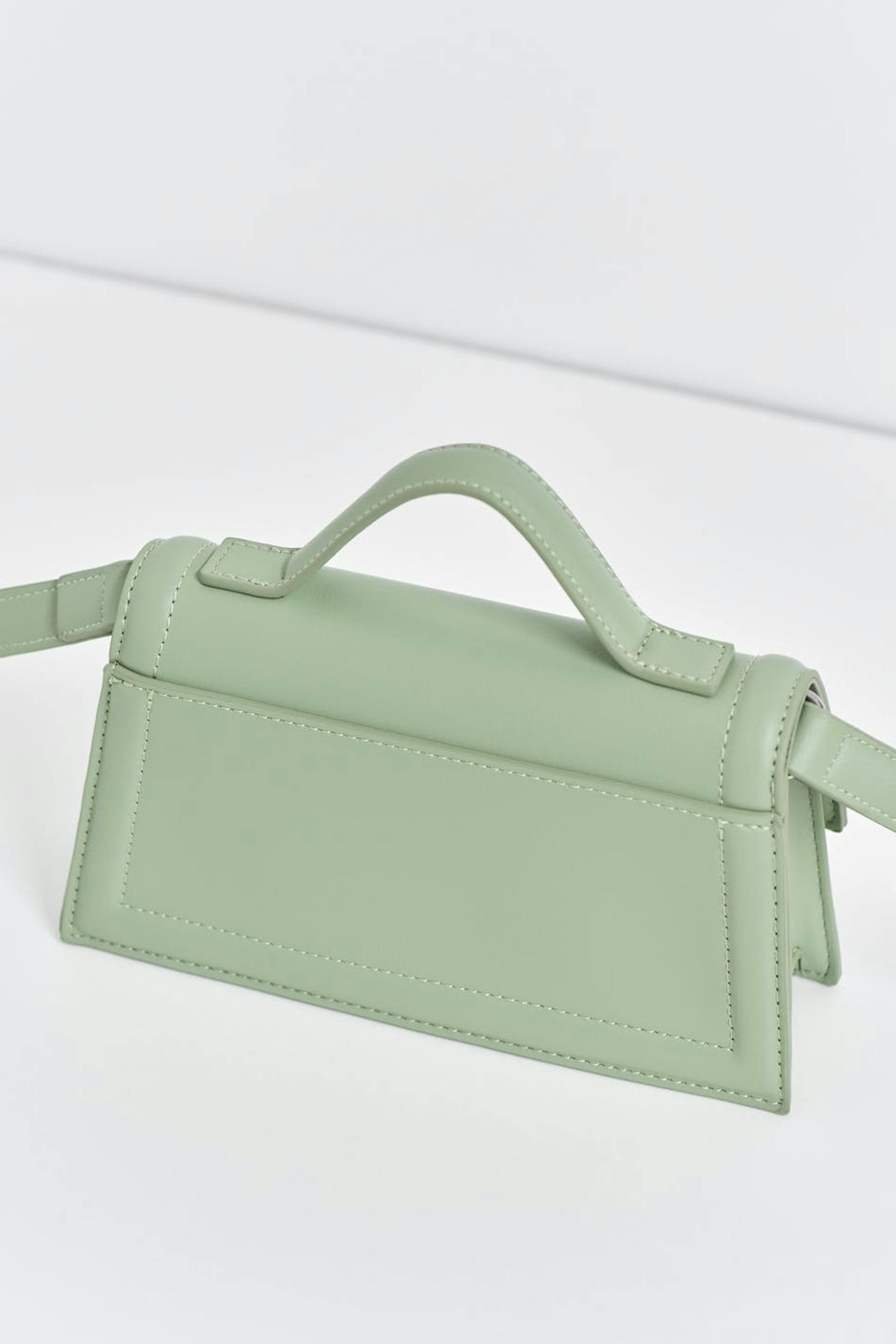 Lille skuldertaske i imiteret læder med klap. Tasken er grøn og har lang, aftagelig skulderstrop. Den har håndtag på toppen og magnetlukning.