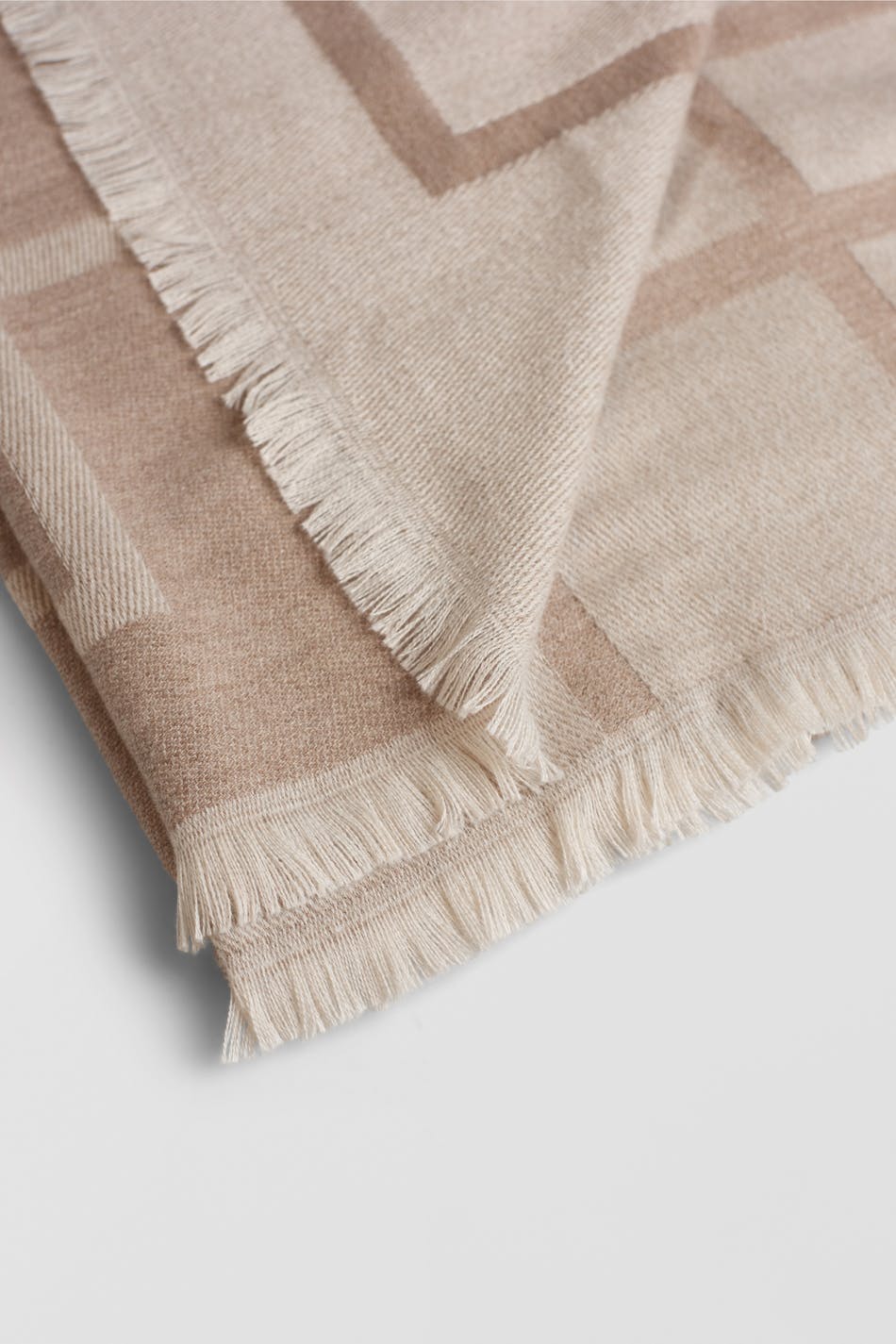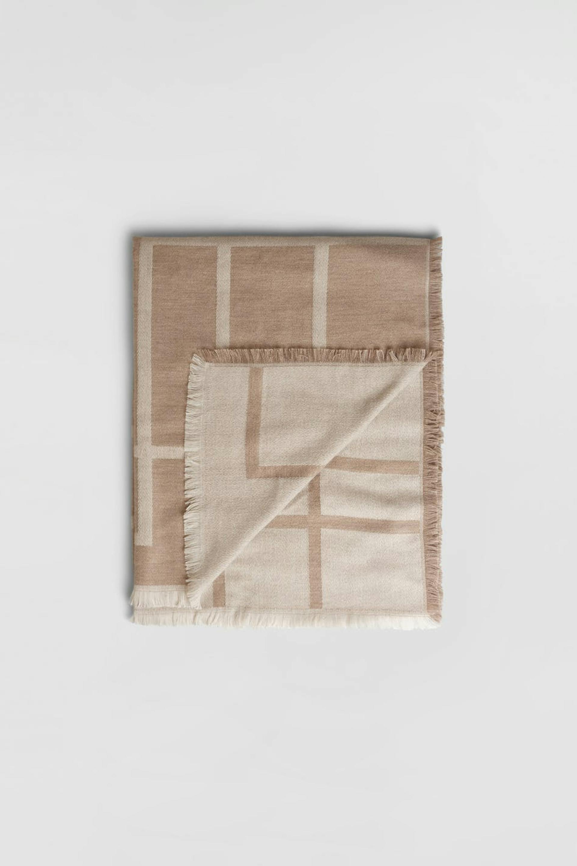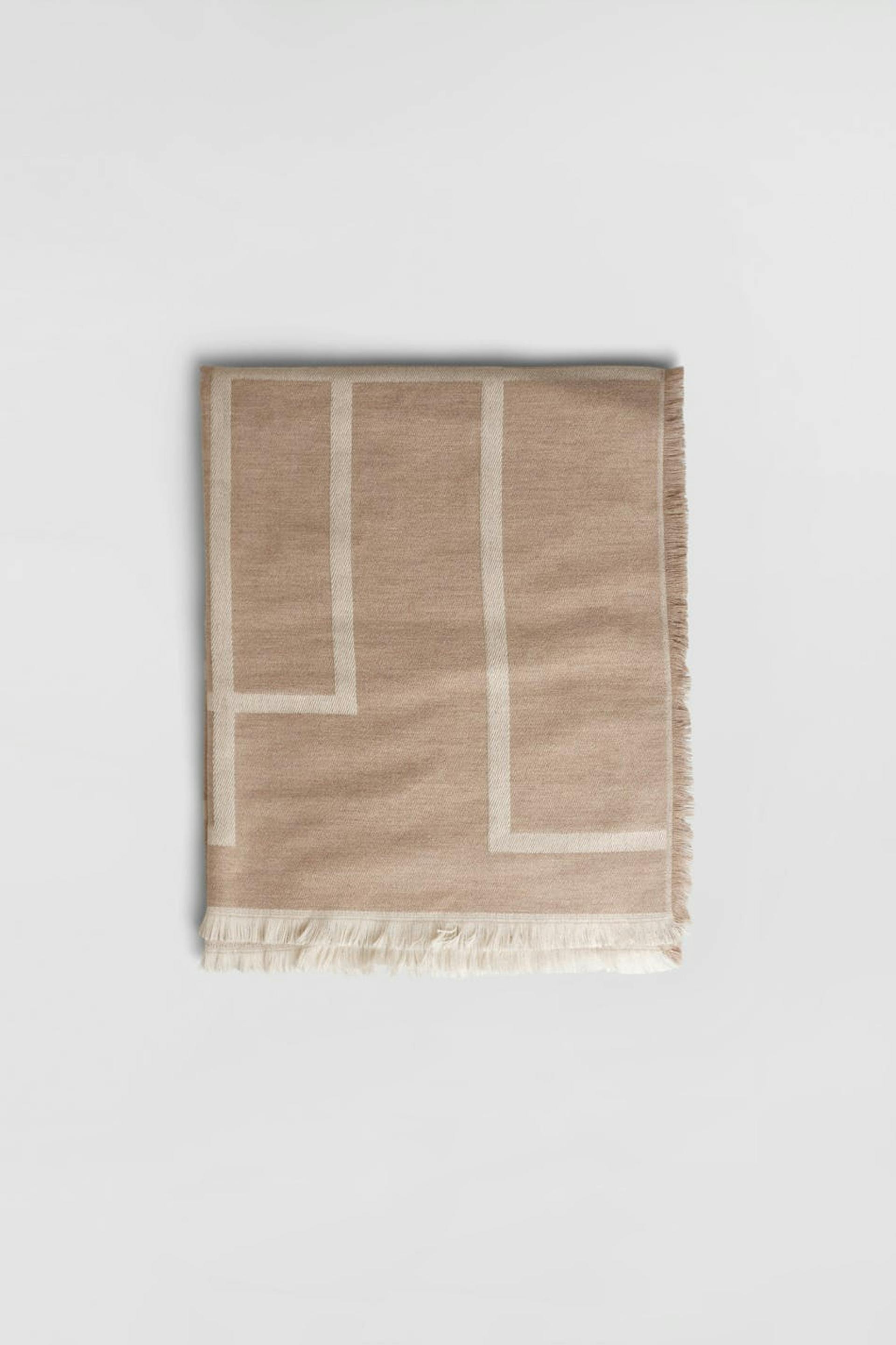 Blødt tørklæde. Tørklædet er beige.