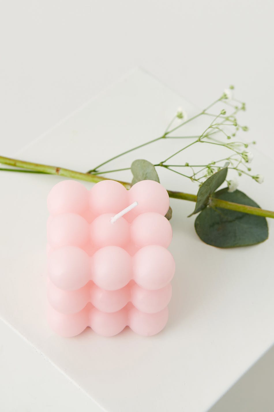 Lille bubble lys fra Gina Home med væge. Bubble lyset er pink.