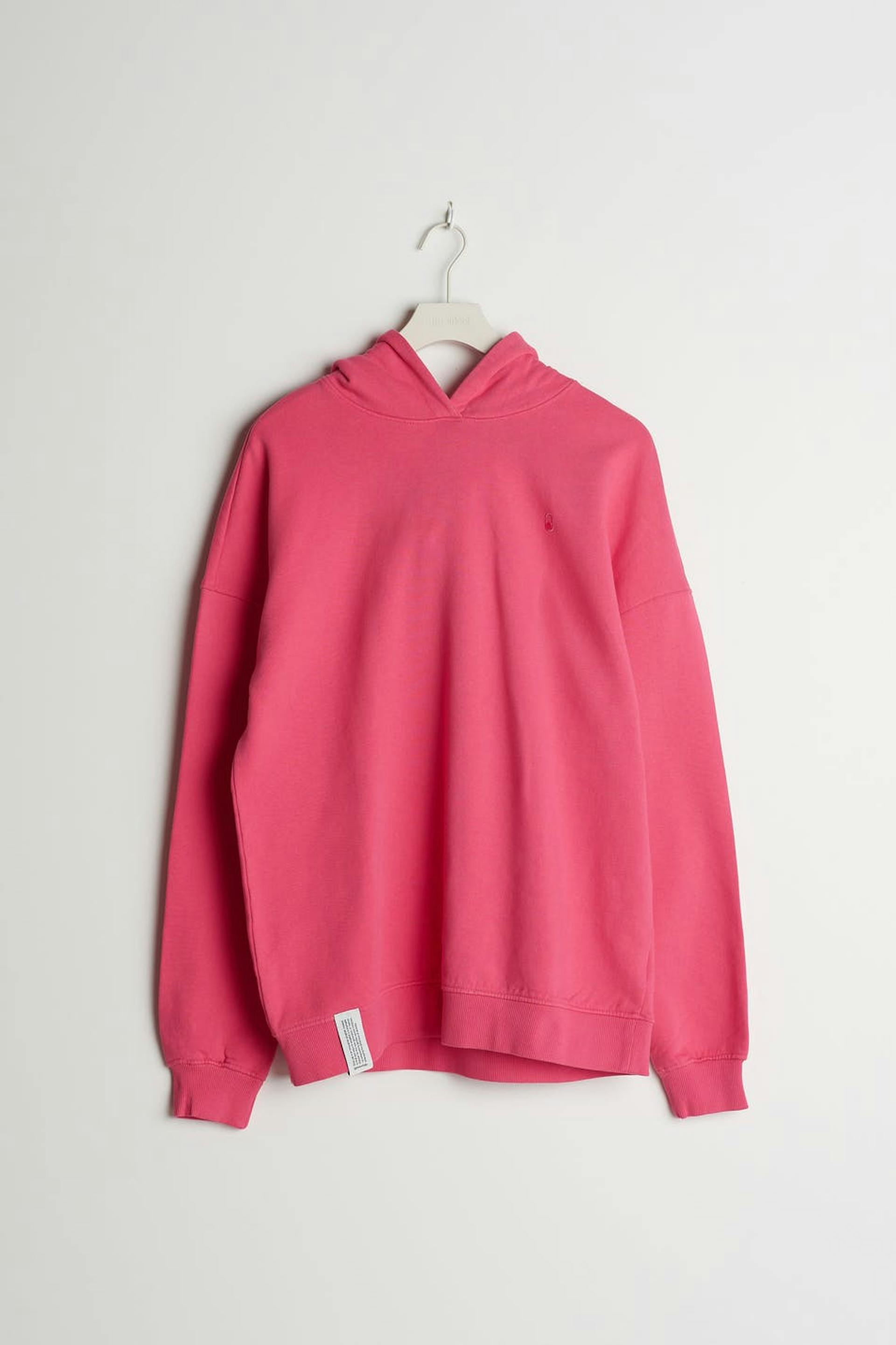 Unisex hættetrøje fra Gina Lab med en oversize pasform. Pink, blød, tidløs og gender-neutral. Den har en hætte, en ribmanchet på ærmeafslutningerne og ved sømmen og et lille, broderet logo på brystet.