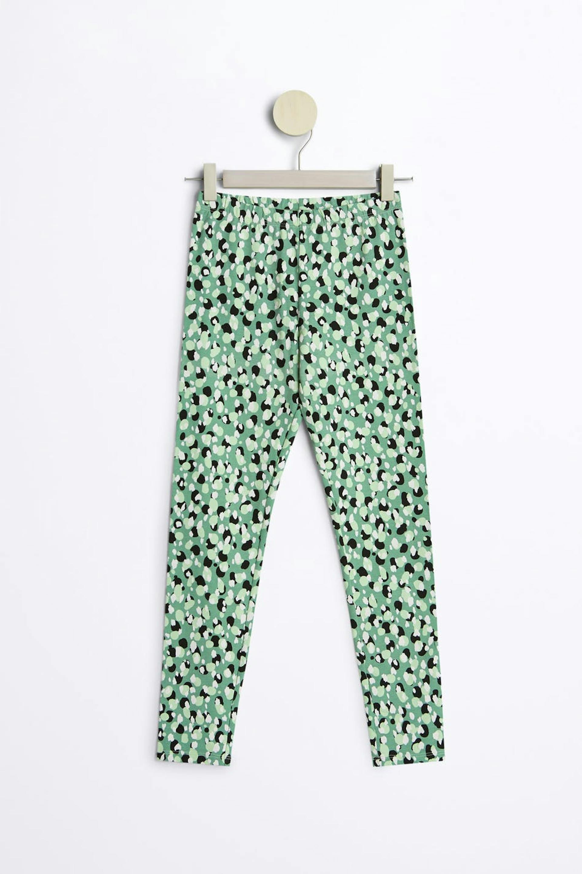 Unisex leggings til babyer med et mønster. Leggingsene er grønne. De er fremstillet af jersey.