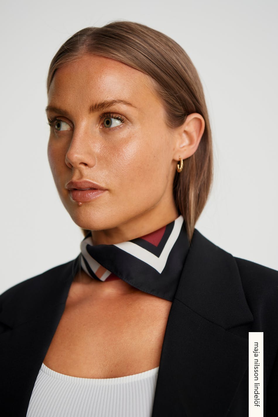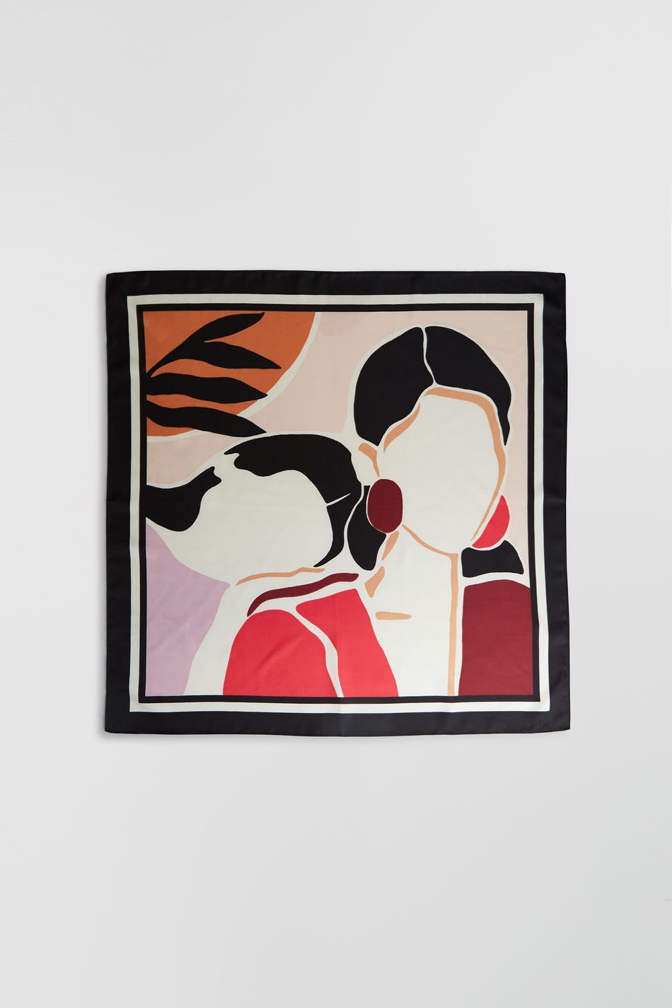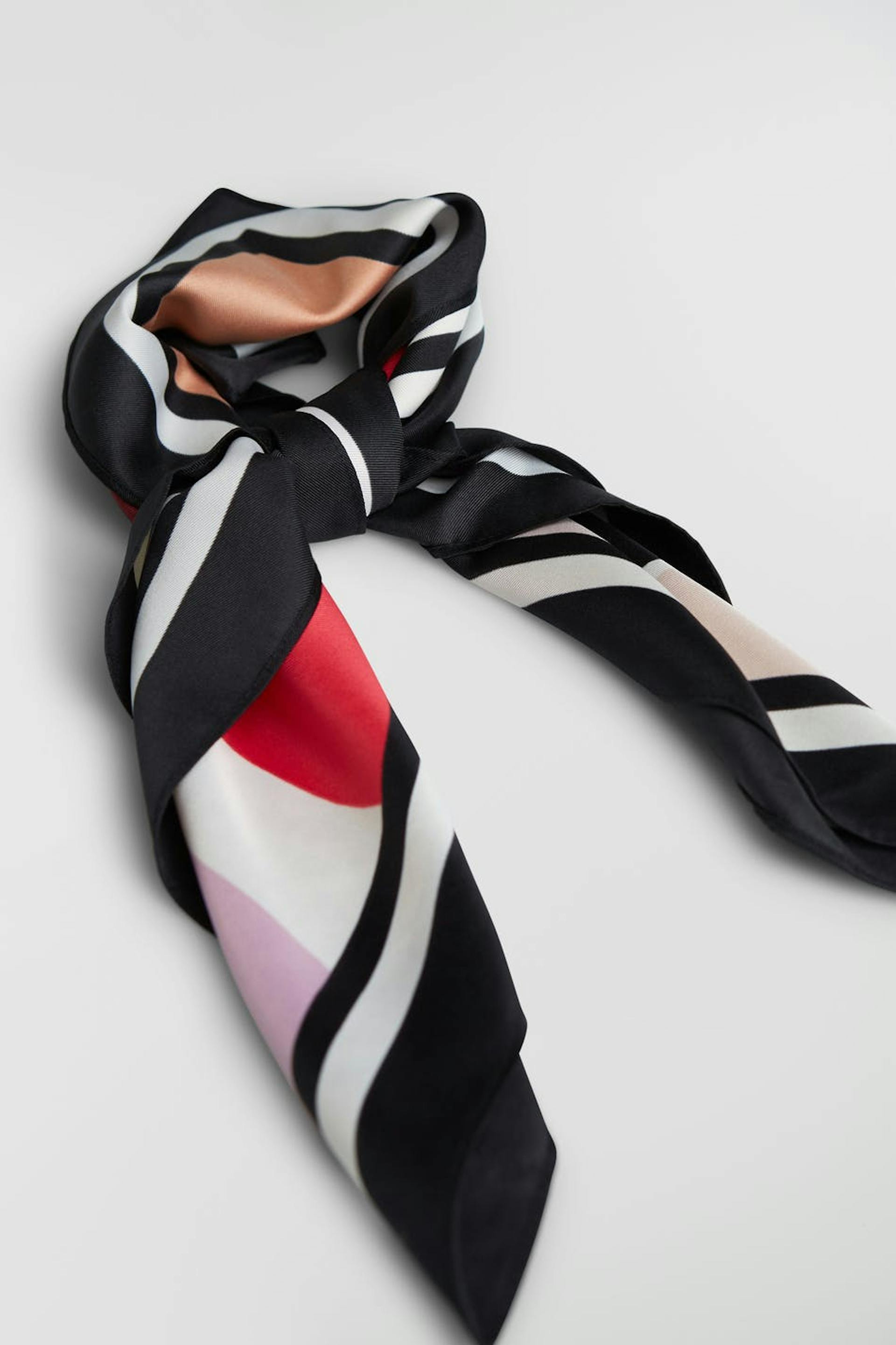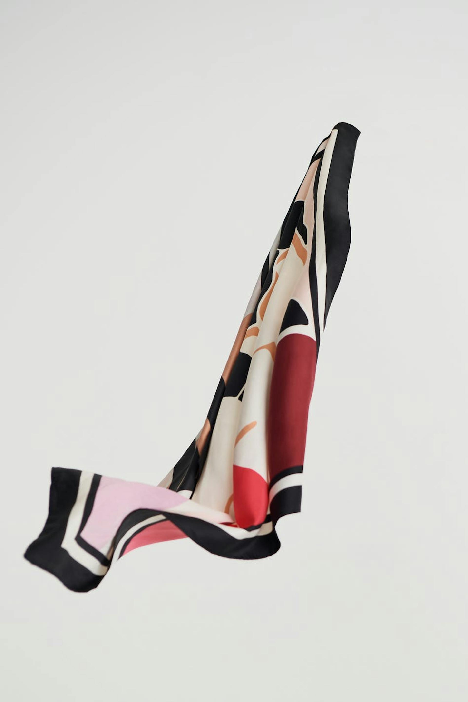 Maja X Gina tricot. Tørklæde med et flerfarvet tryk. Tørklædet er sort.