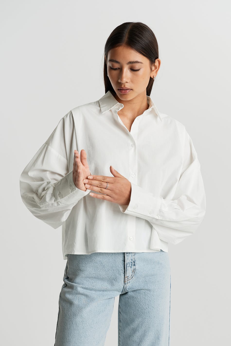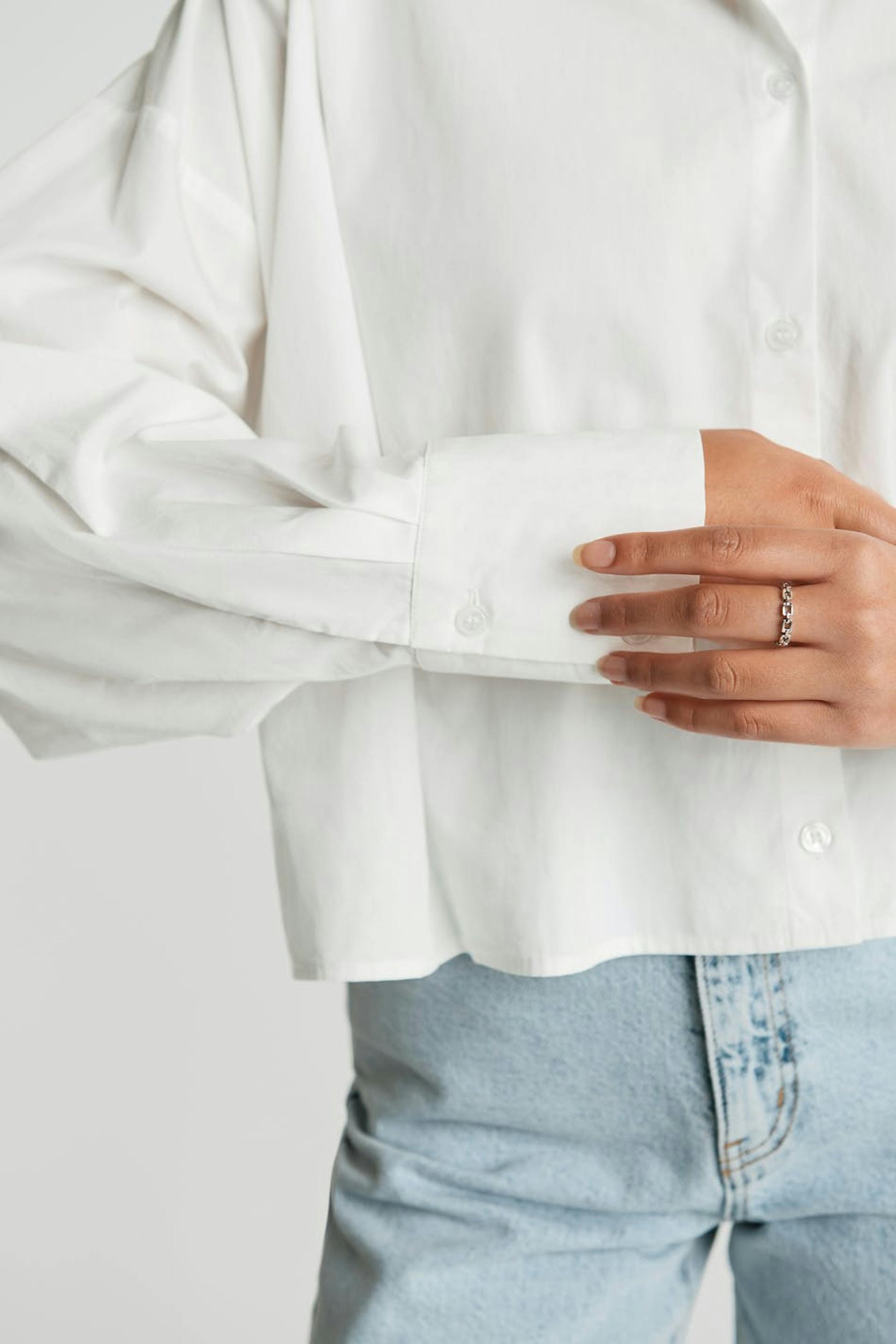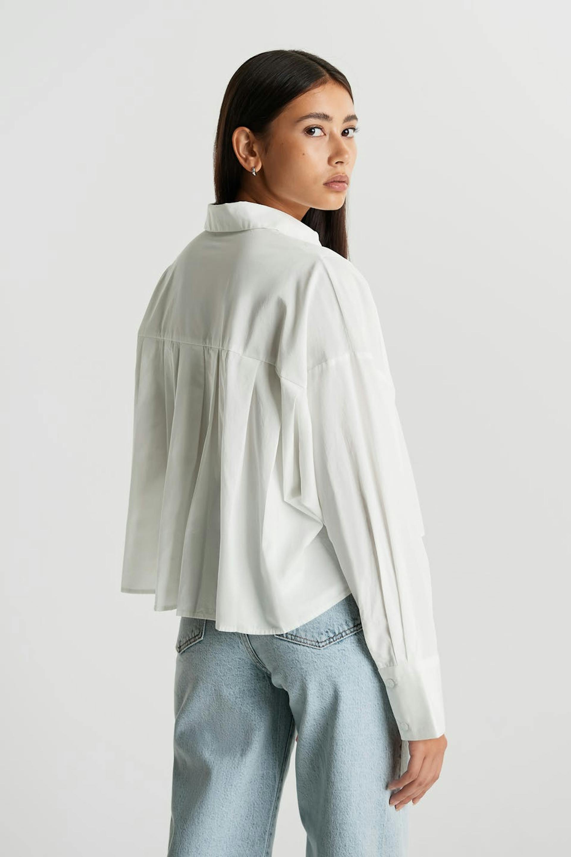 Langærmet skjorte med en oversize pasform. Skjorten er hvid.