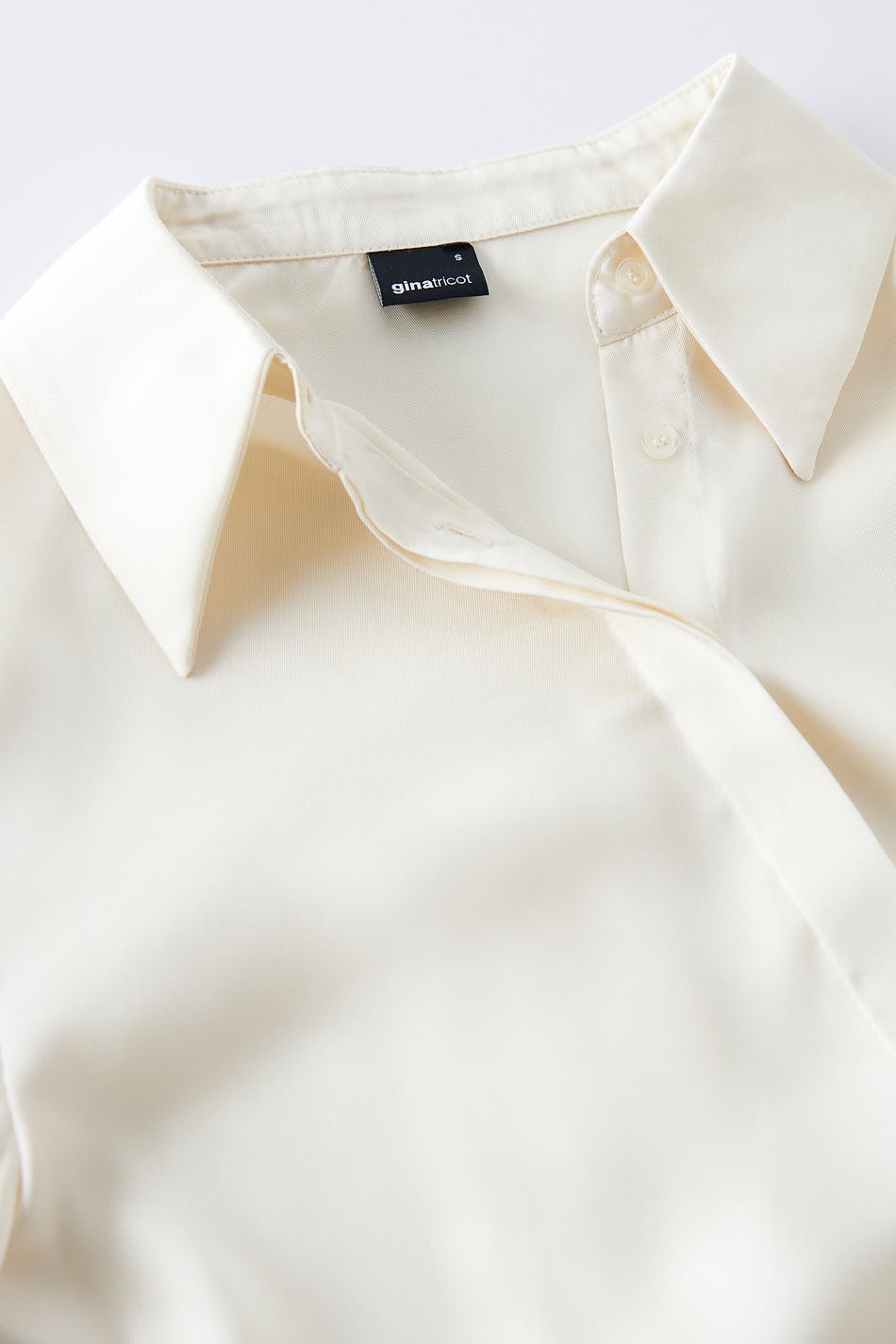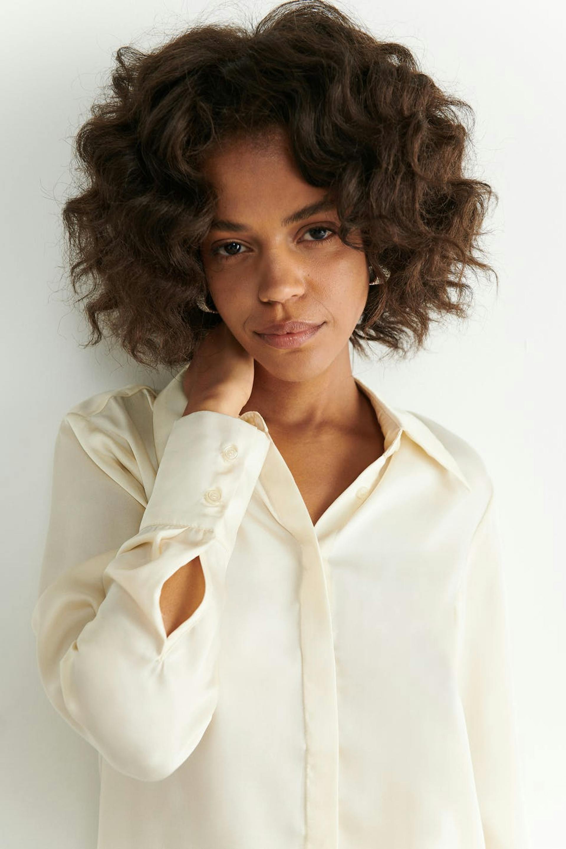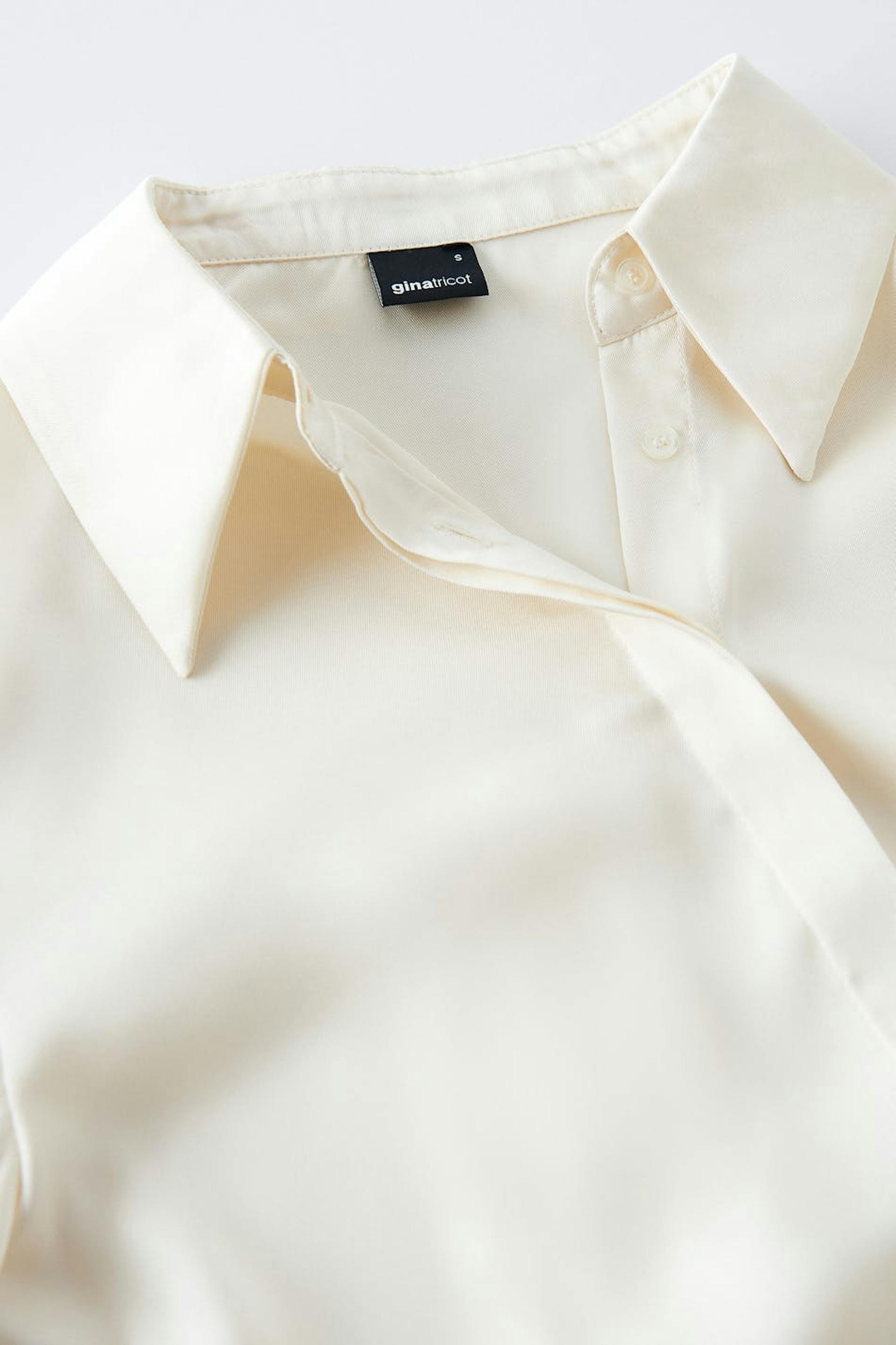 Skjorte med afslappet pasform. Skjorten er hvid og har lange ærmer med manchetter. Den har krave og knapstolpe ved fronten.