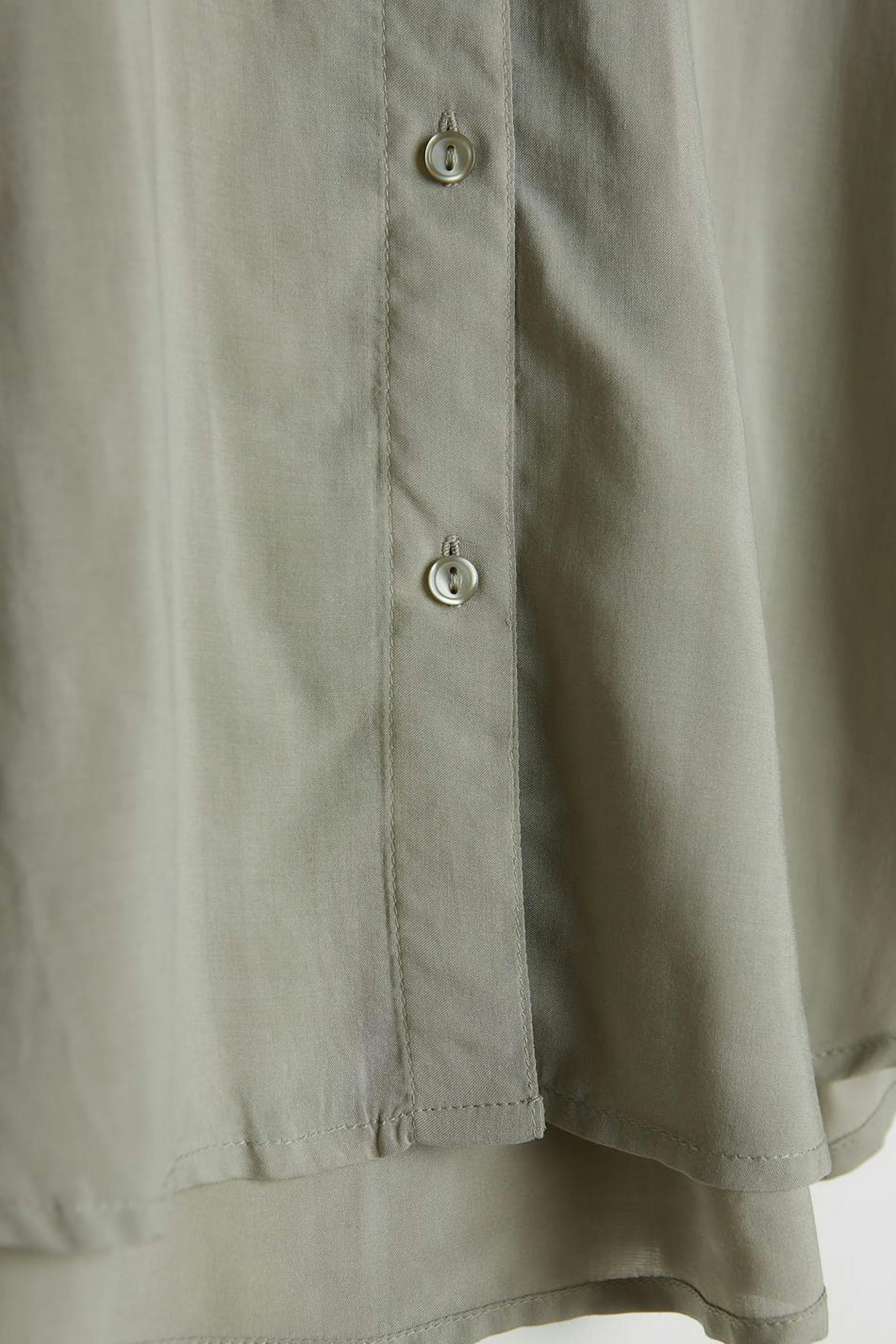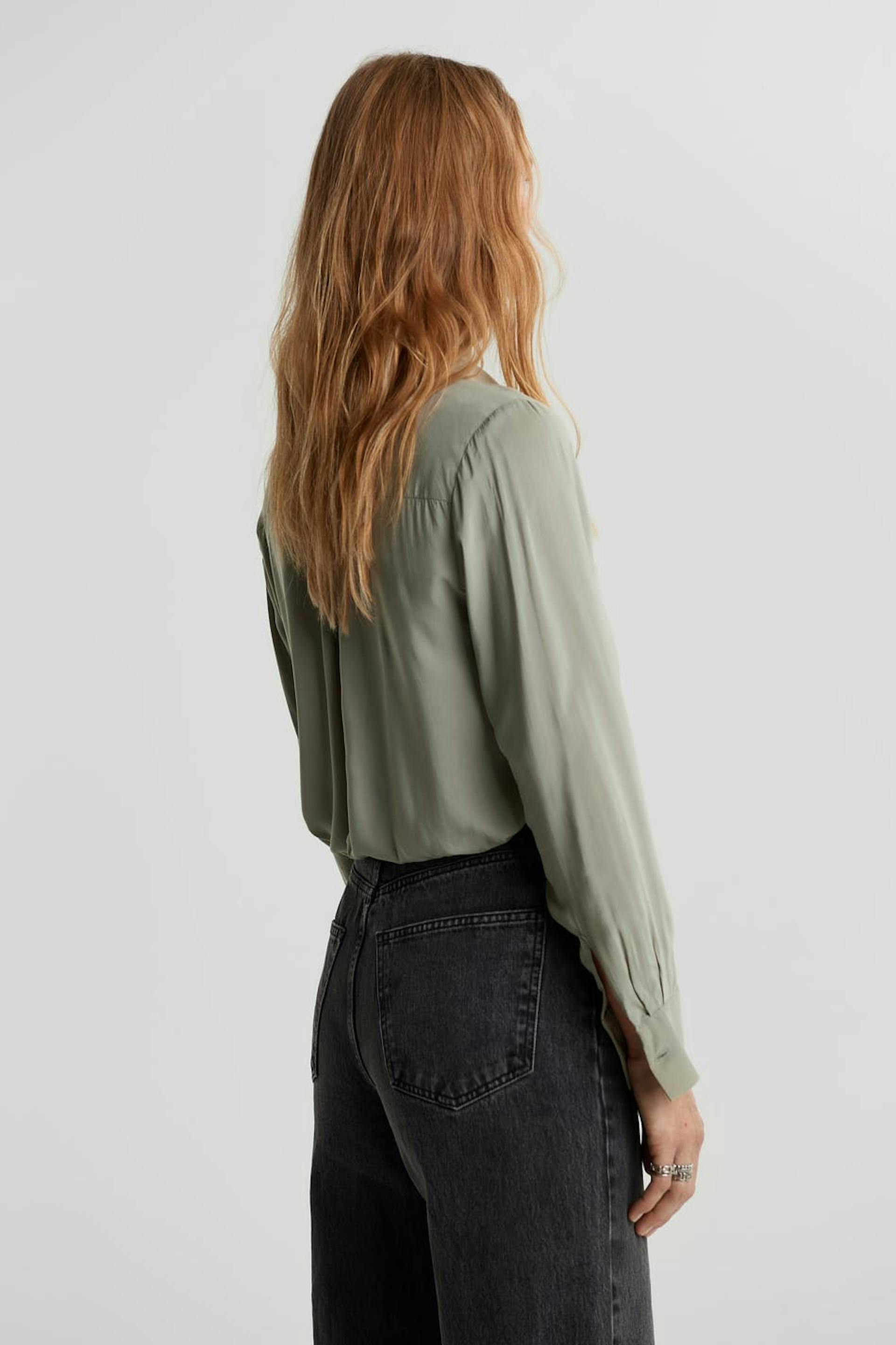 Blød skjorte med lange ærmer. Skjorten er grøn og lidt længere bagtil.