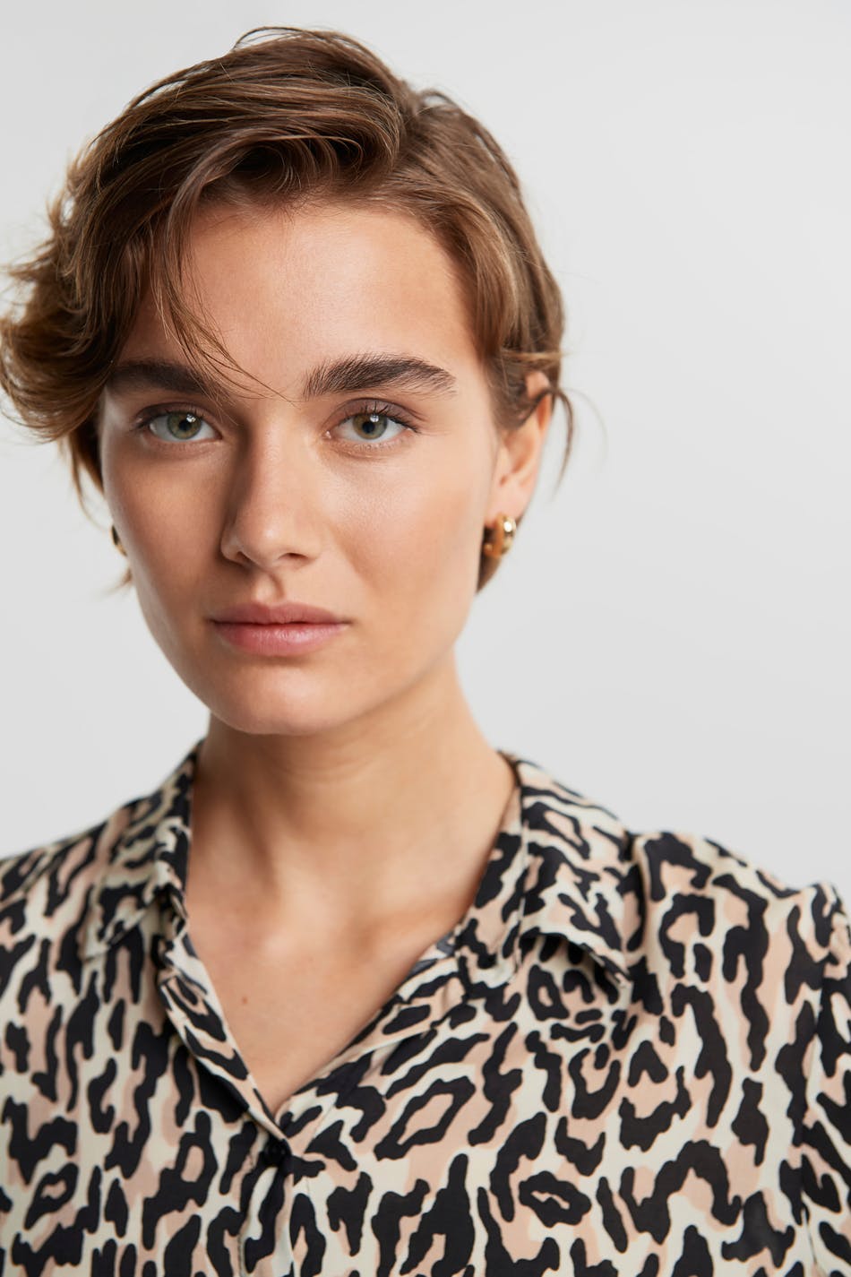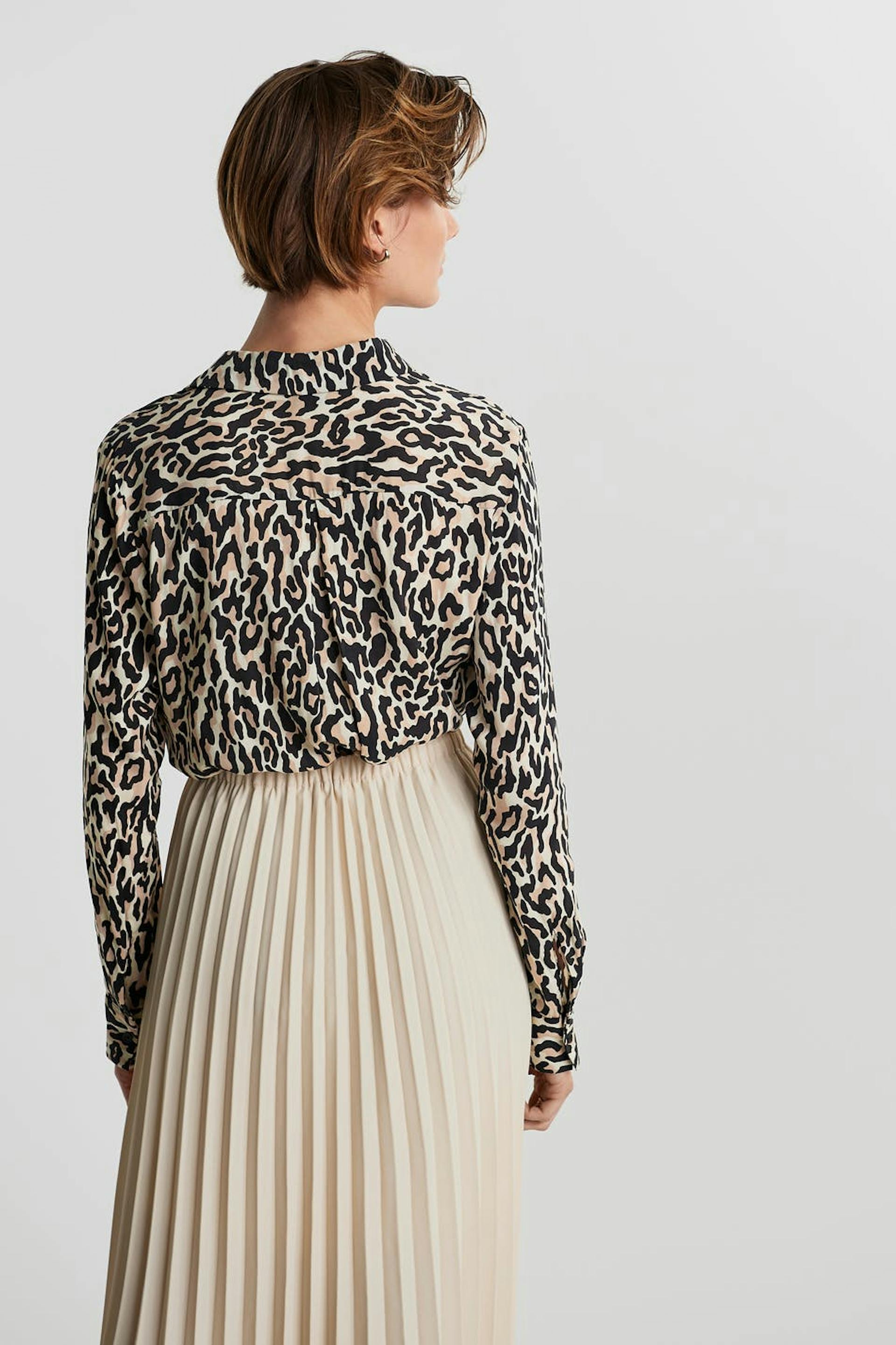 Blød skjorte med en normal pasform. Skjorten er leopard, lidt længere bagtil og langærmet.