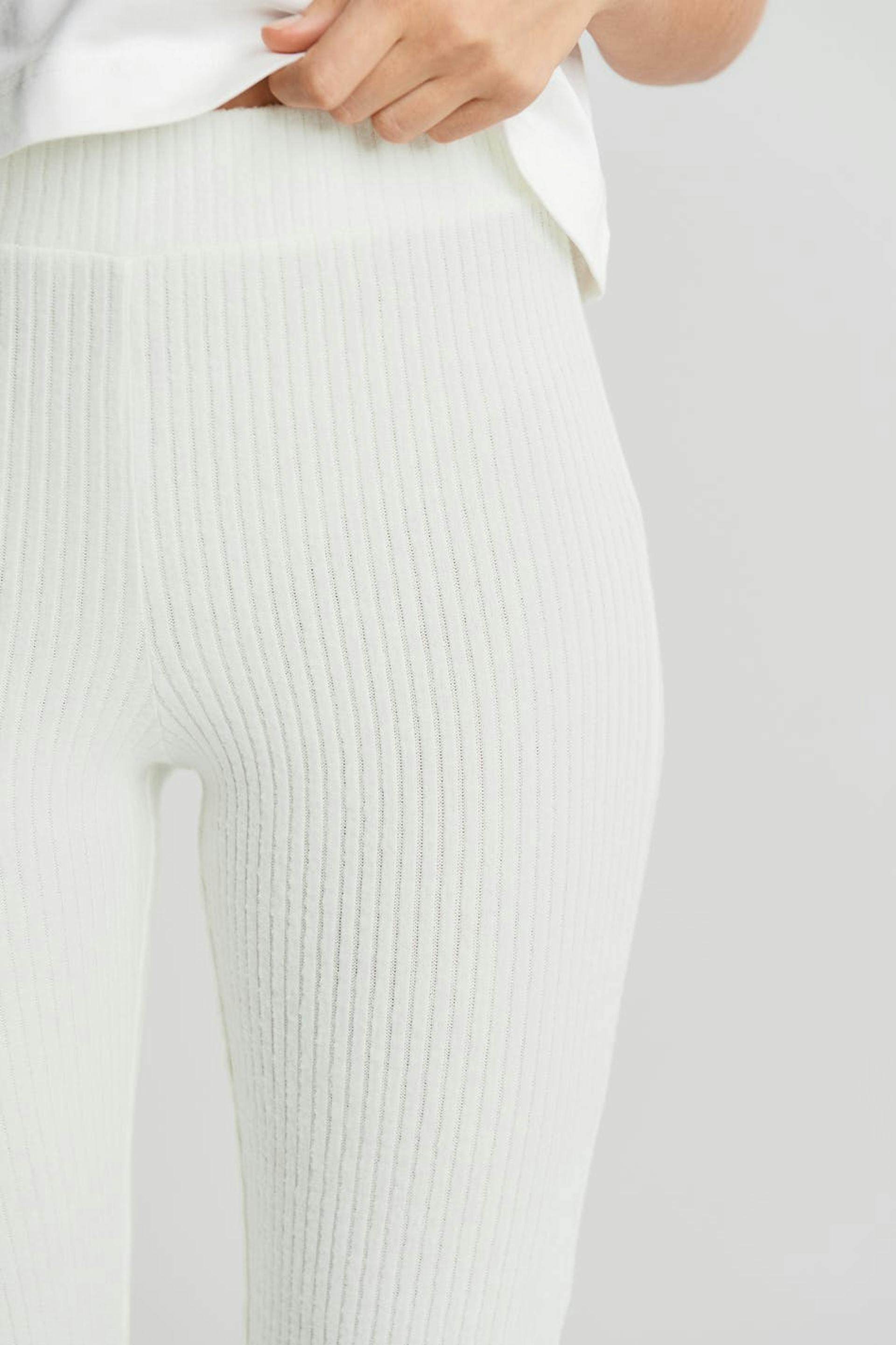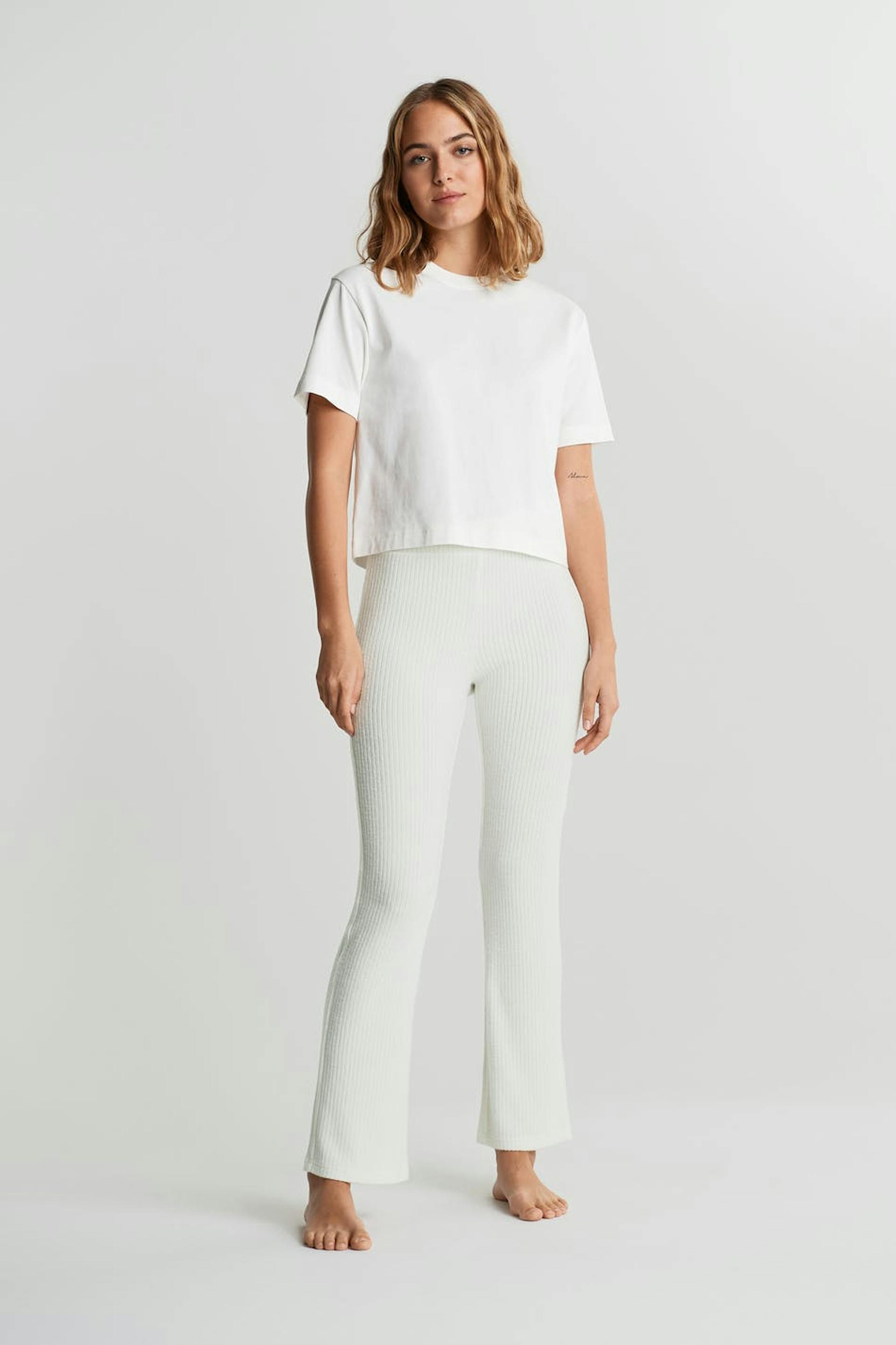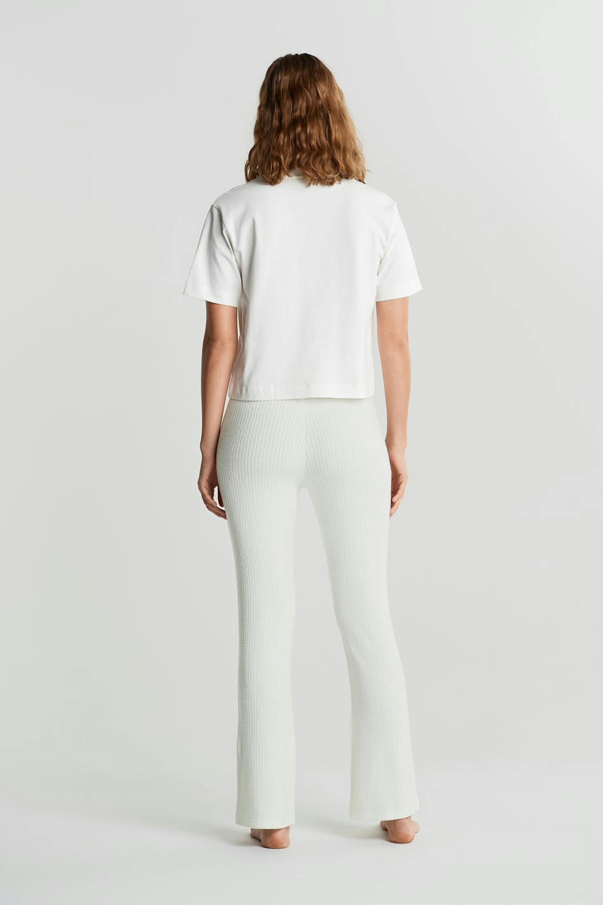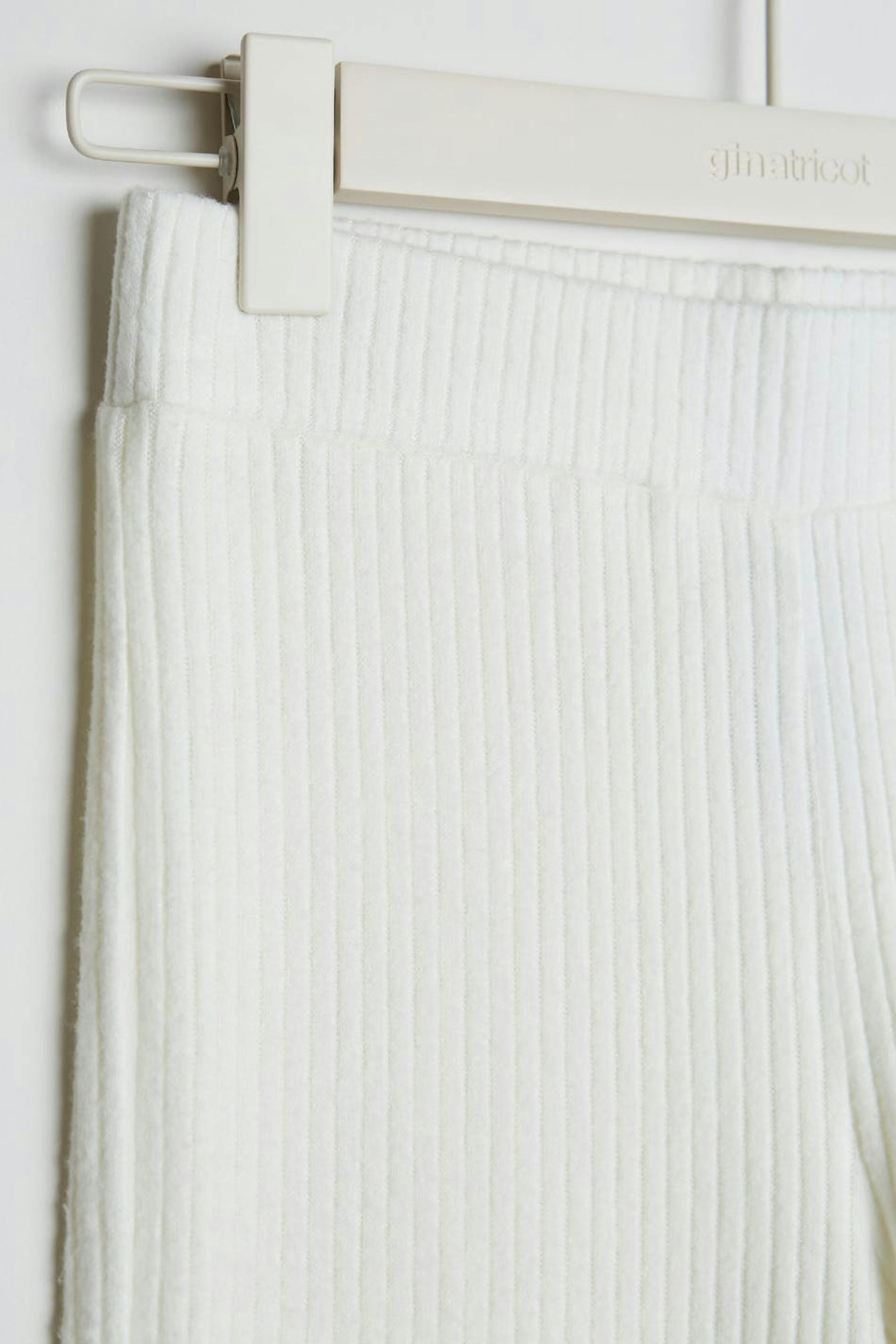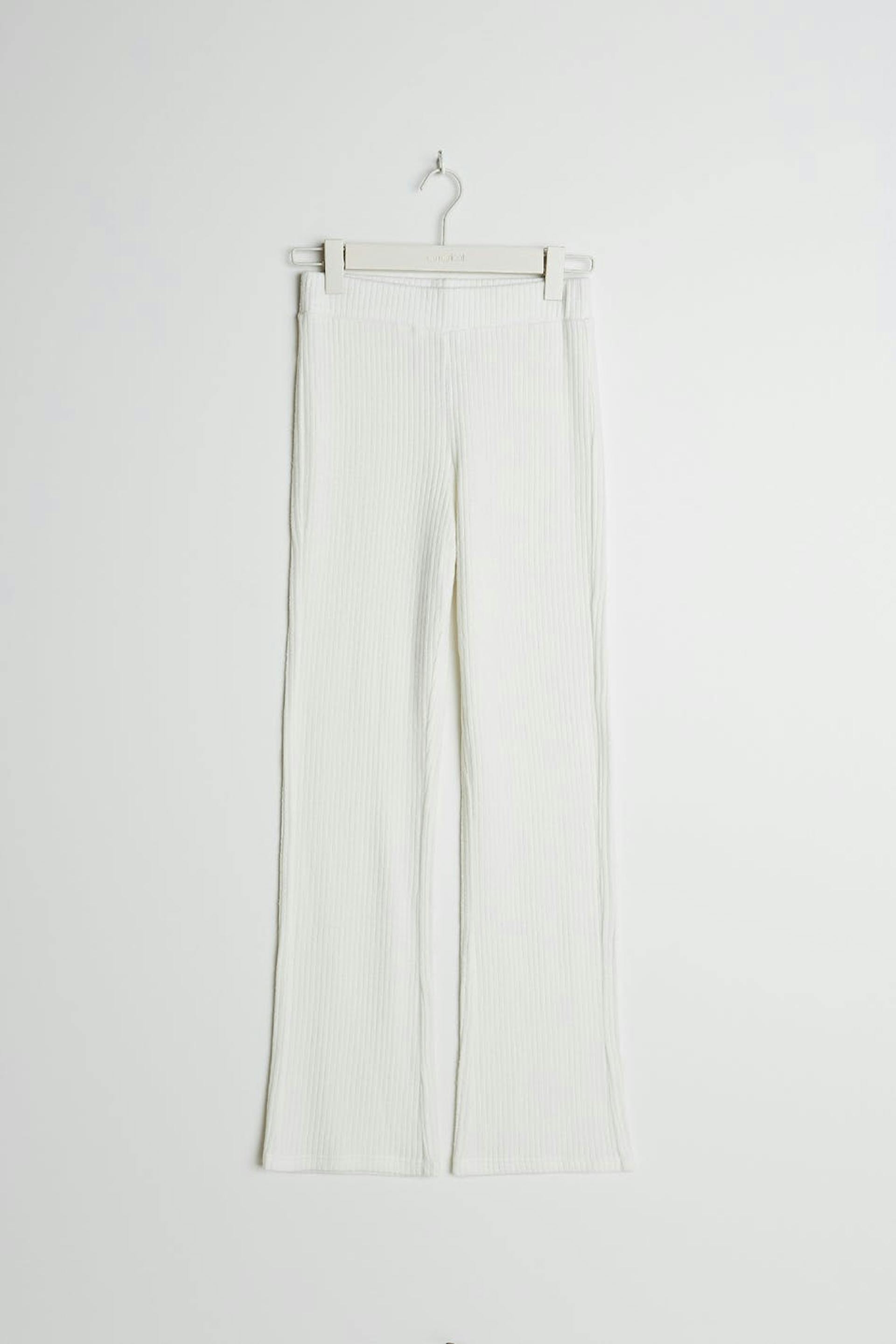 Ribstrikkede træningsbukser med en normal pasform. Bukserne er hvide og har lige ben. De har et blødt elastisk bånd ved taljen.