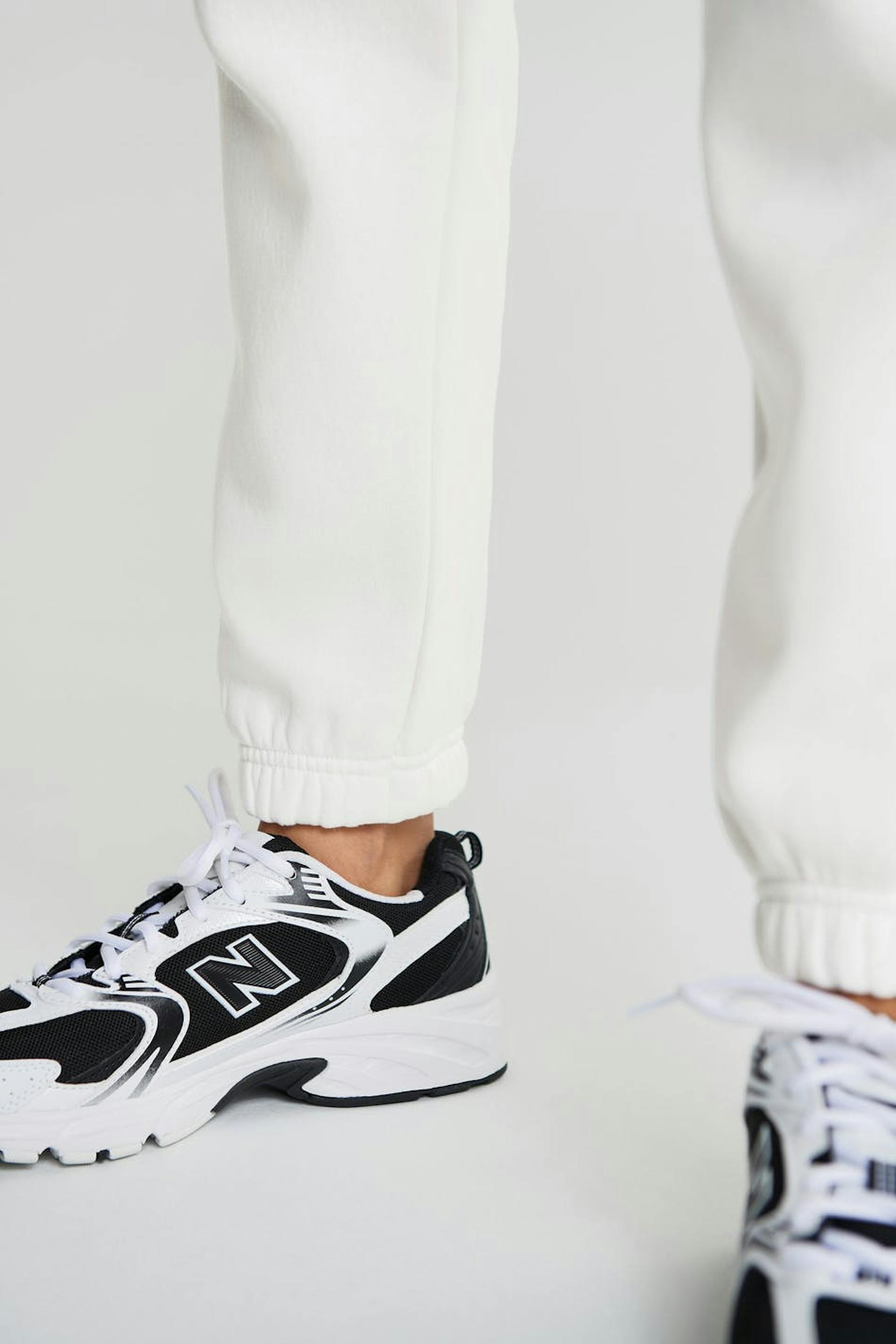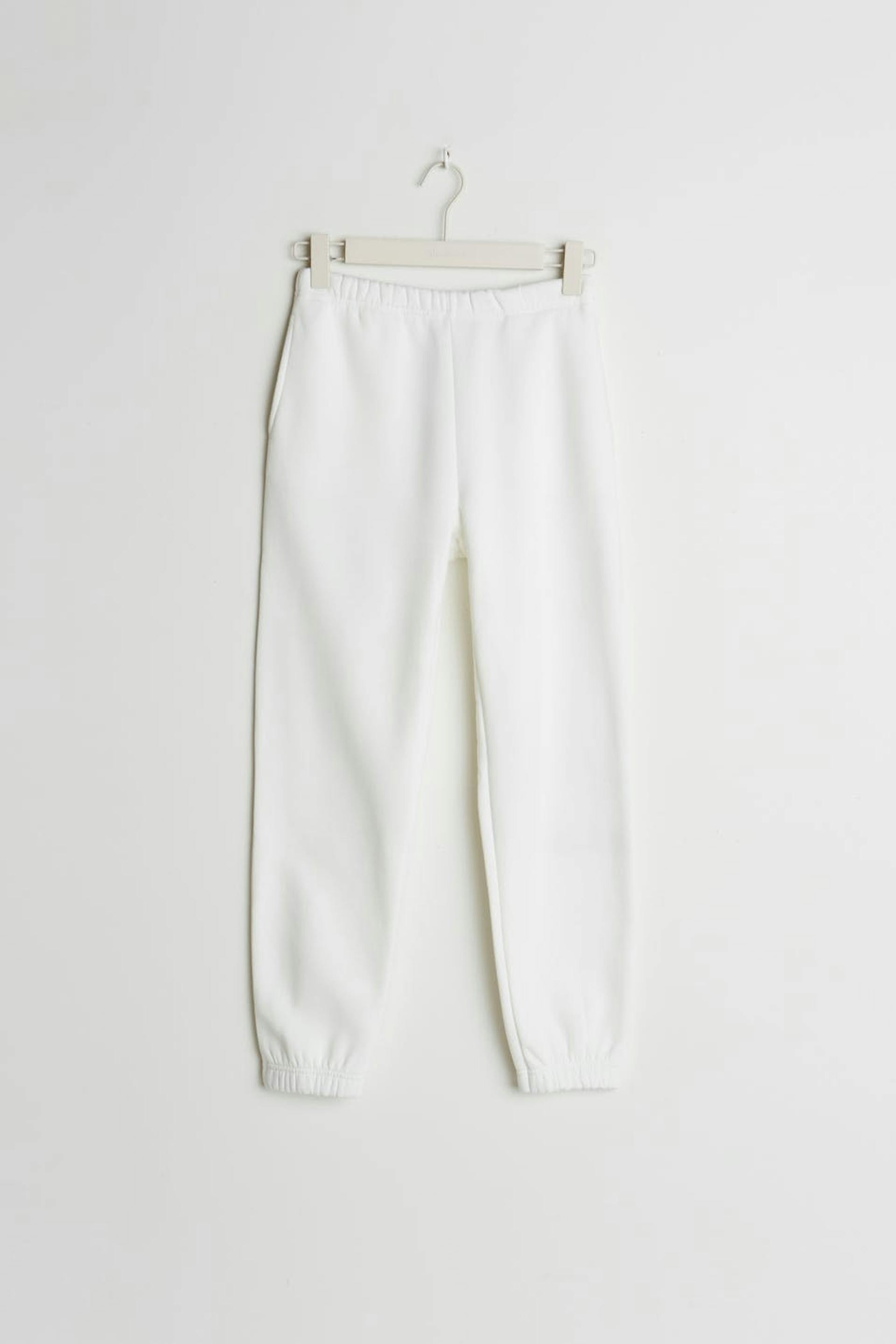 Petite træningsbukser med en normal pasform. Bukserne er hvide og har elastikremme ved taljen og ved enden af benene. Passer til dig, der er 160 cm eller derunder.