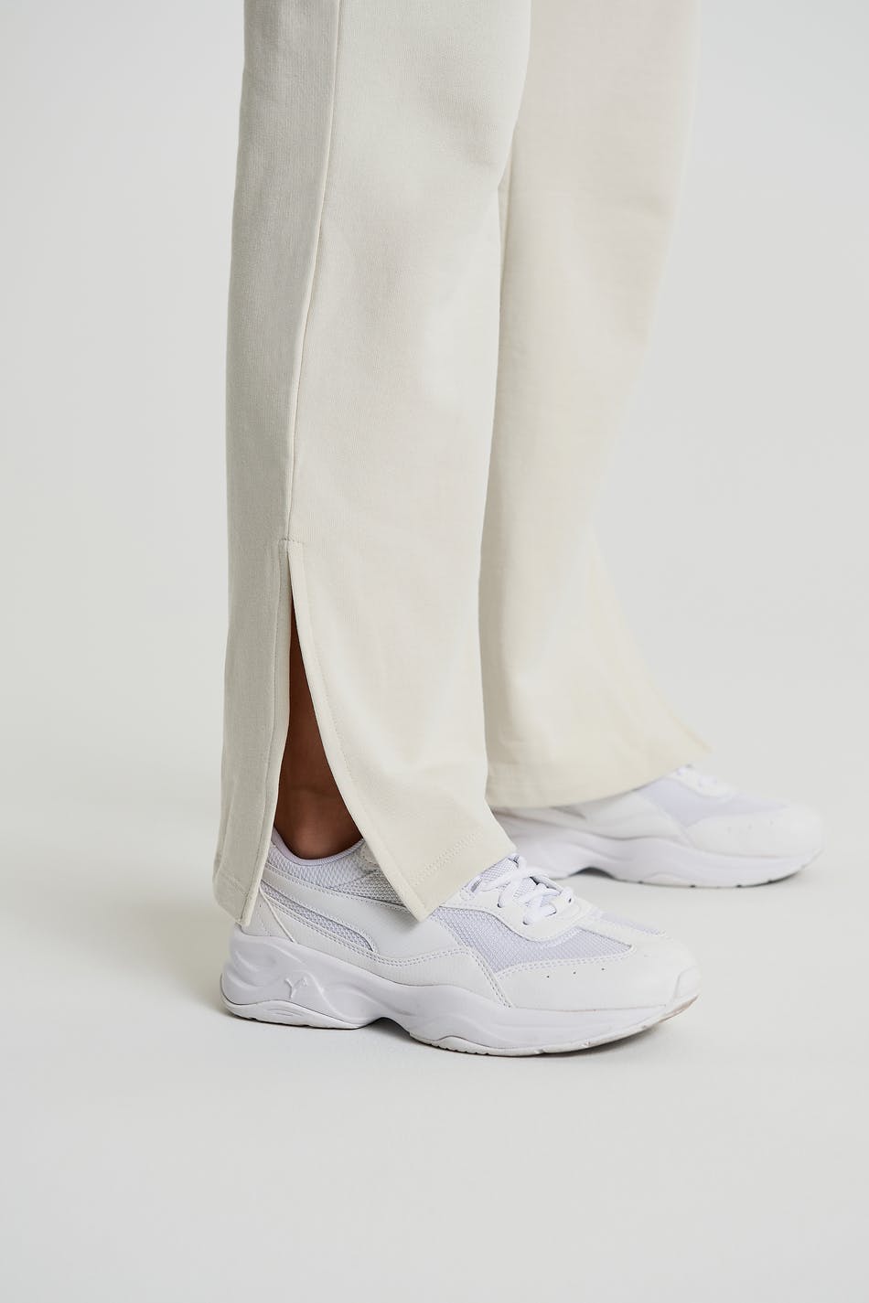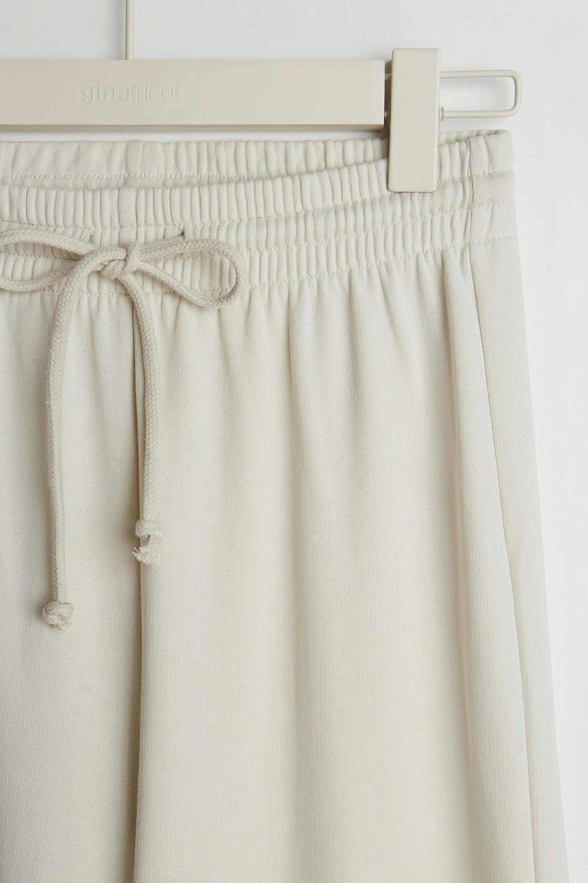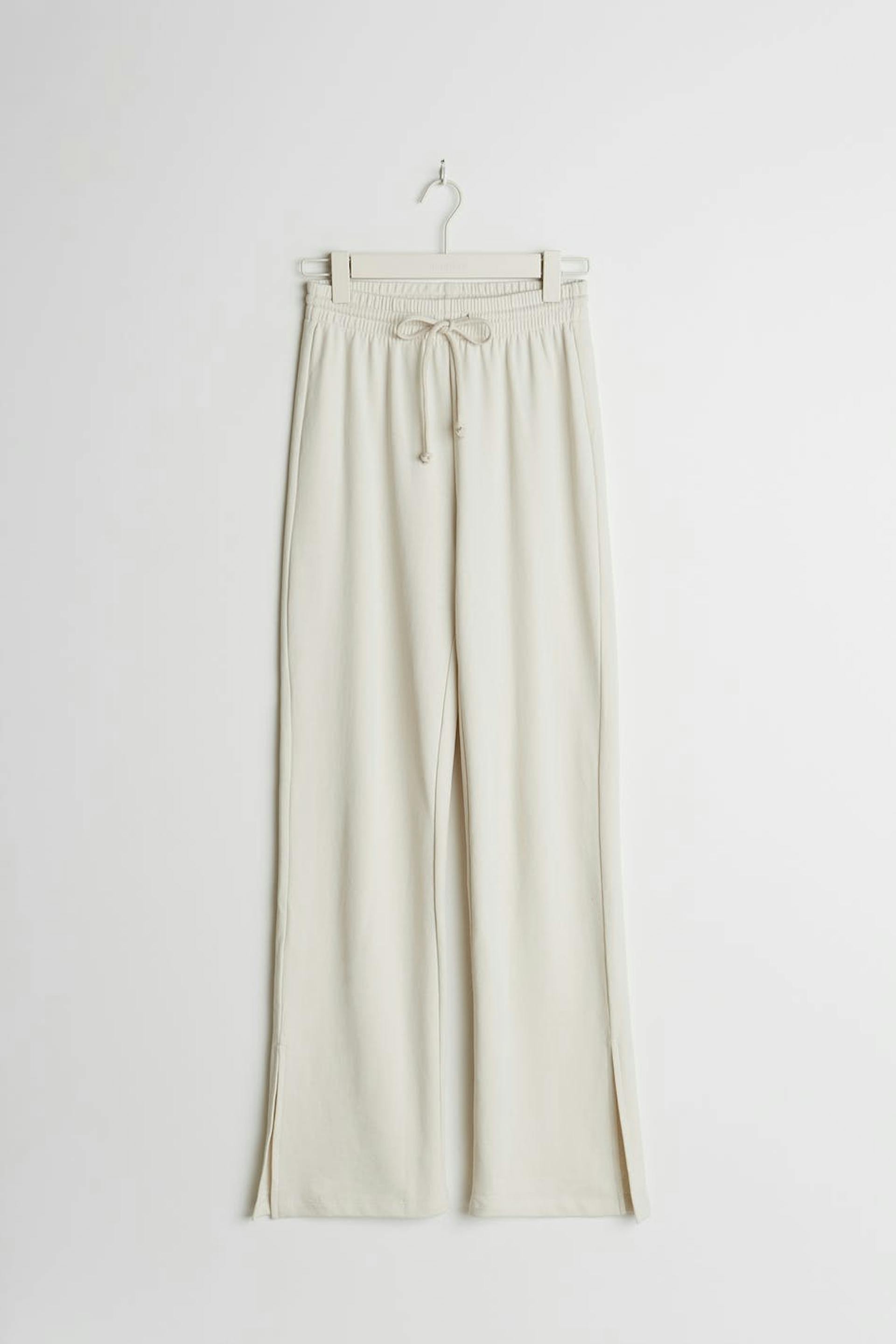 Træningsbukser med en normal pasform. Bukserne er beige og har en snøring ved taljen. De er fremstillet af jersey og har brede ben med en slids ved sømmen.