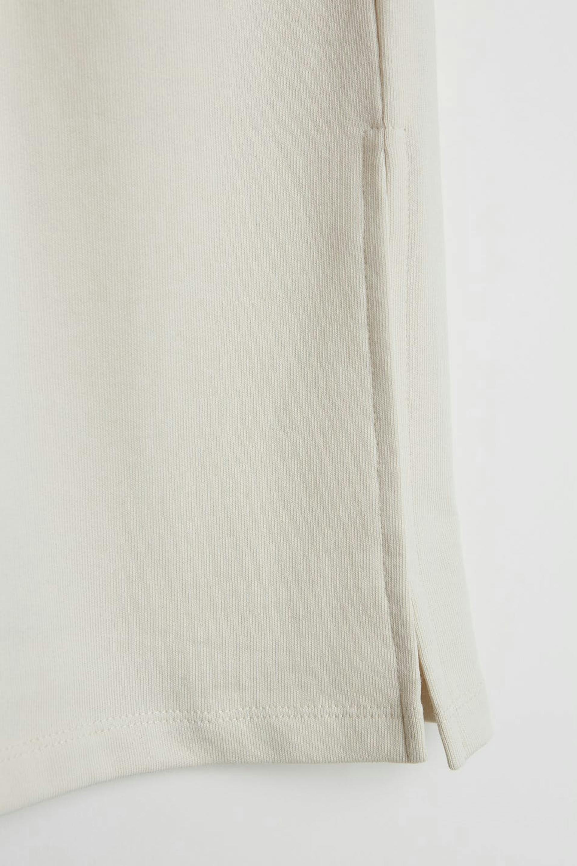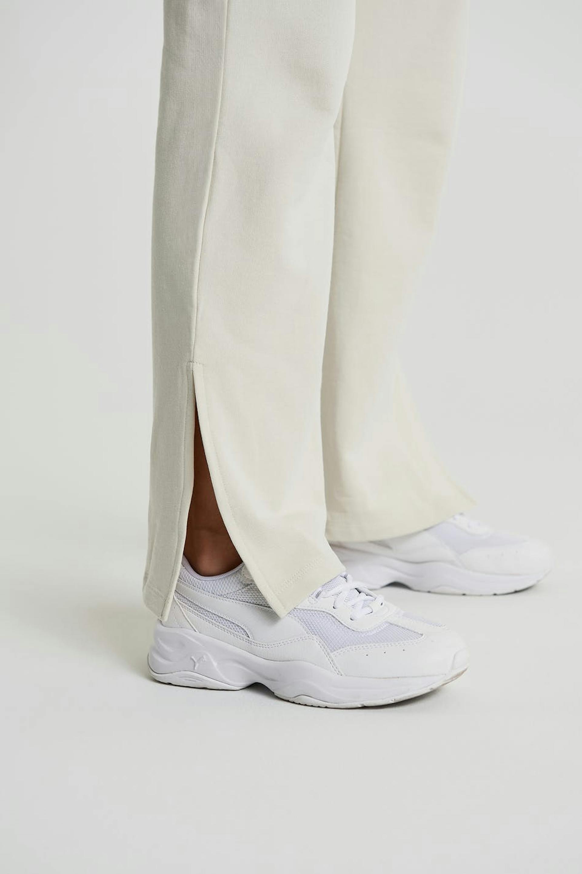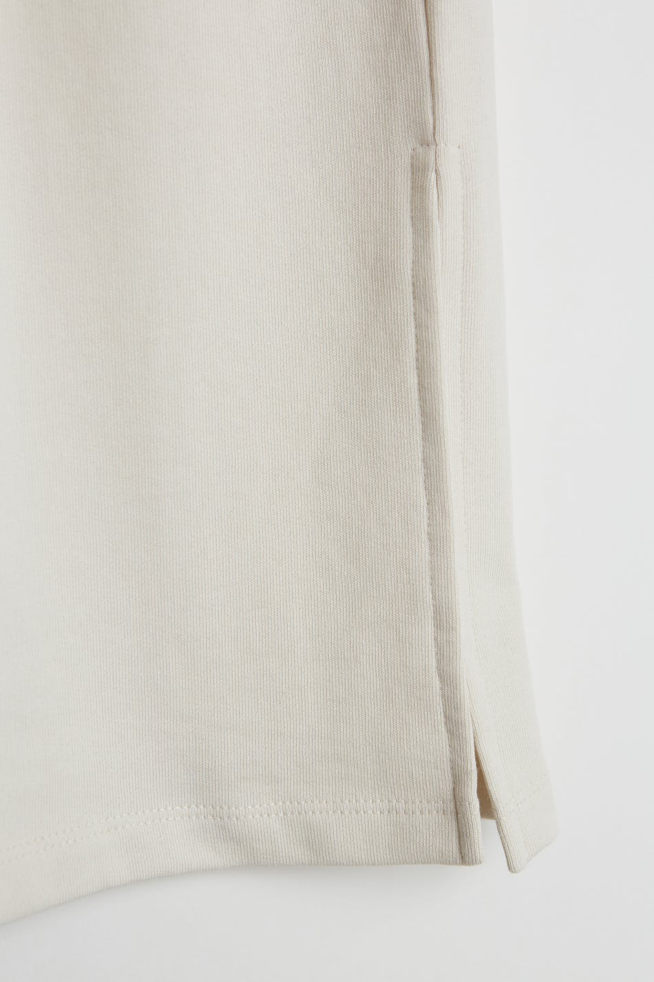 Træningsbukser med en normal pasform. Bukserne er beige og har en snøring ved taljen. De er fremstillet af jersey og har brede ben med en slids ved sømmen.