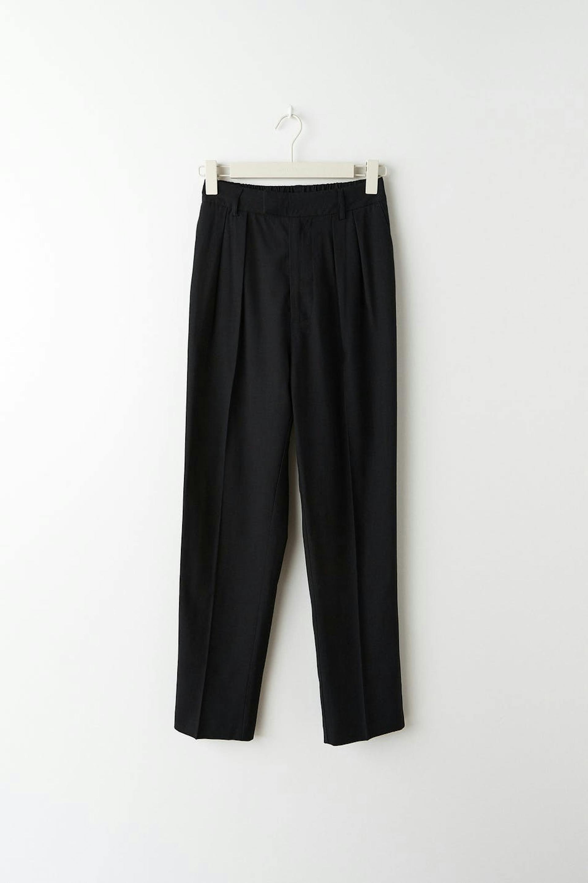 Elegante jakkesætsbukser med lommer i siderne og bagpå. Bukserne er sorte og har en normal pasform og formede bukseben.