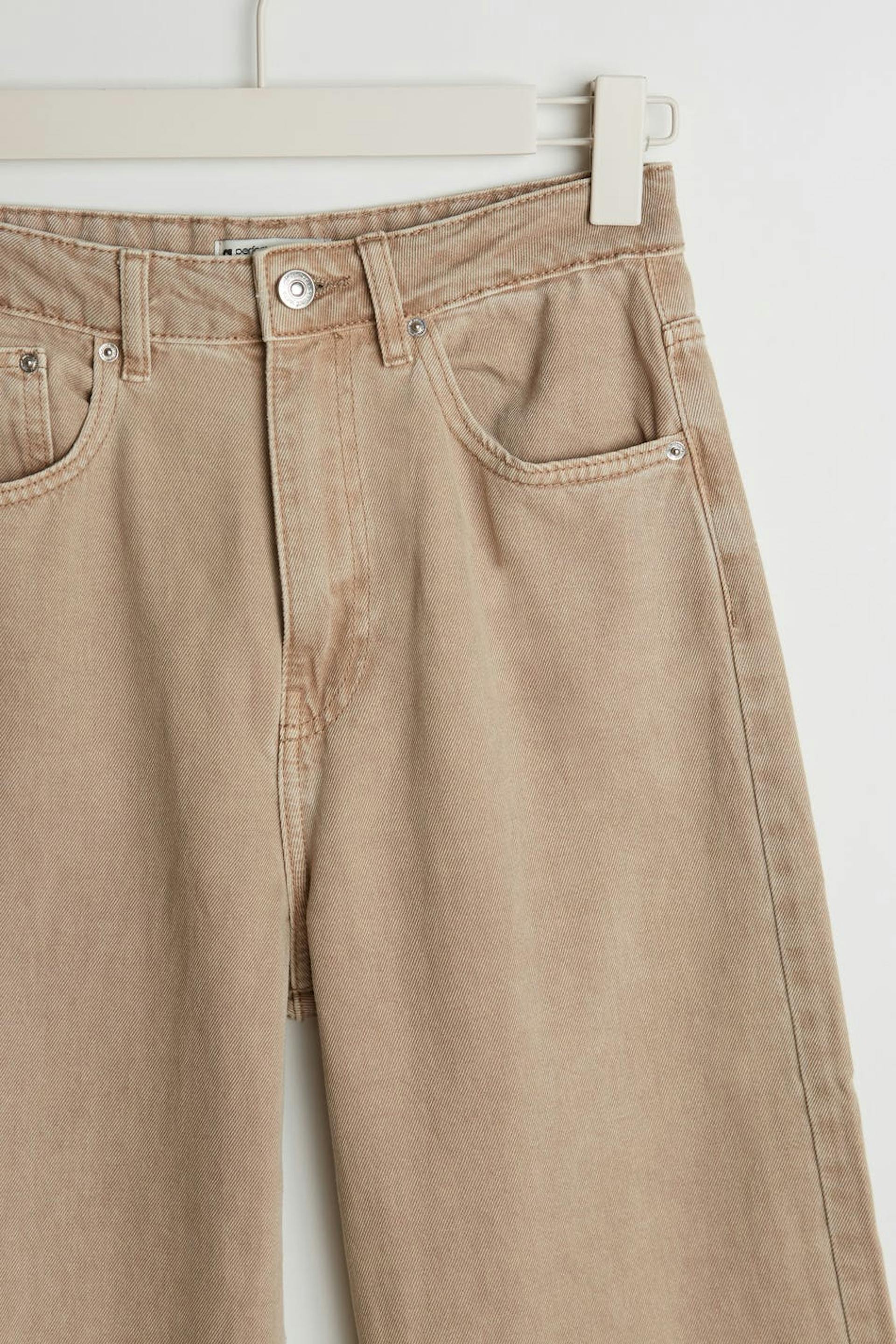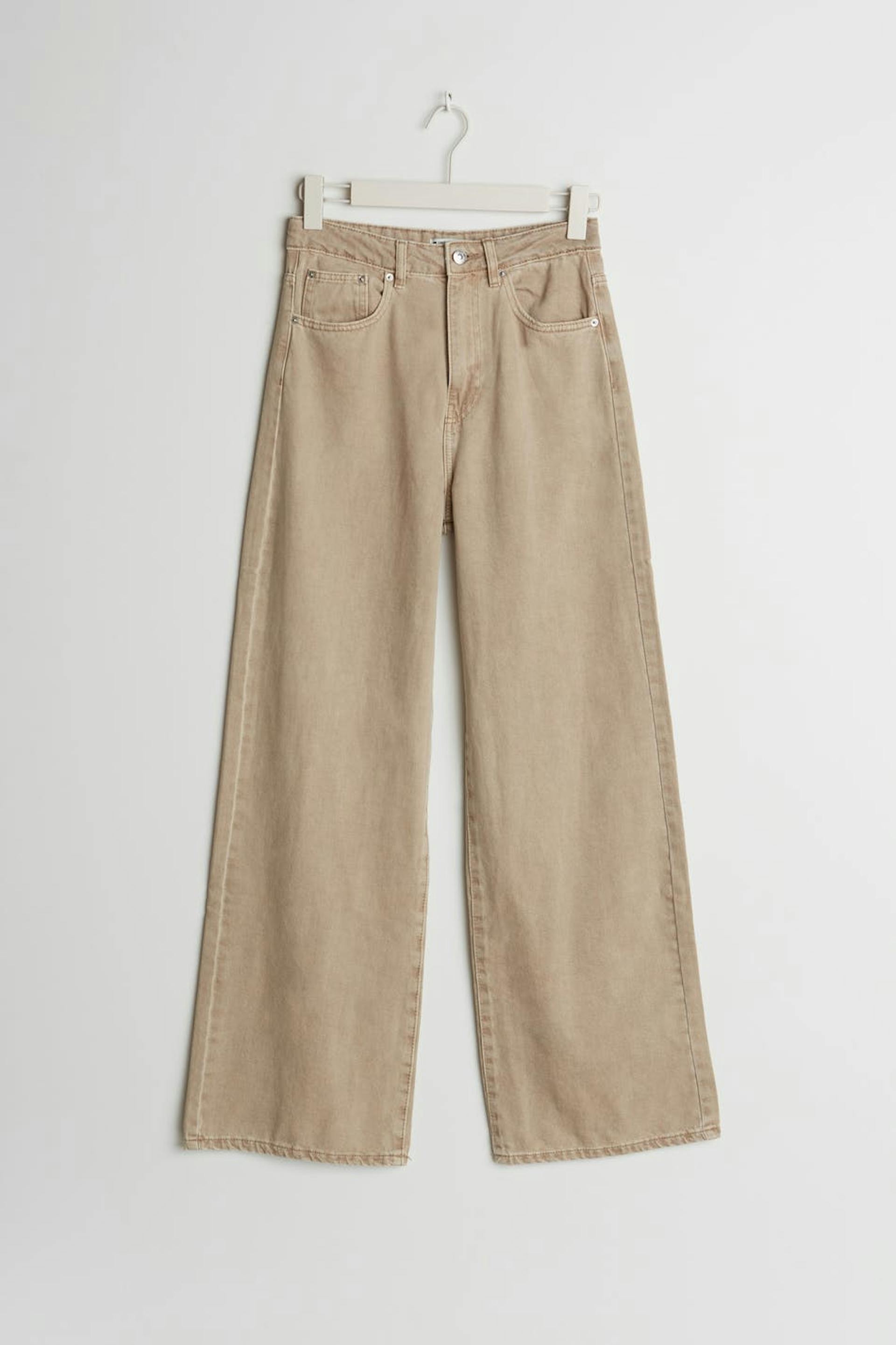Ikke strækbare brede jeans med en normal pasform. Jeansene er beige og har en høj talje. De har brede ben.