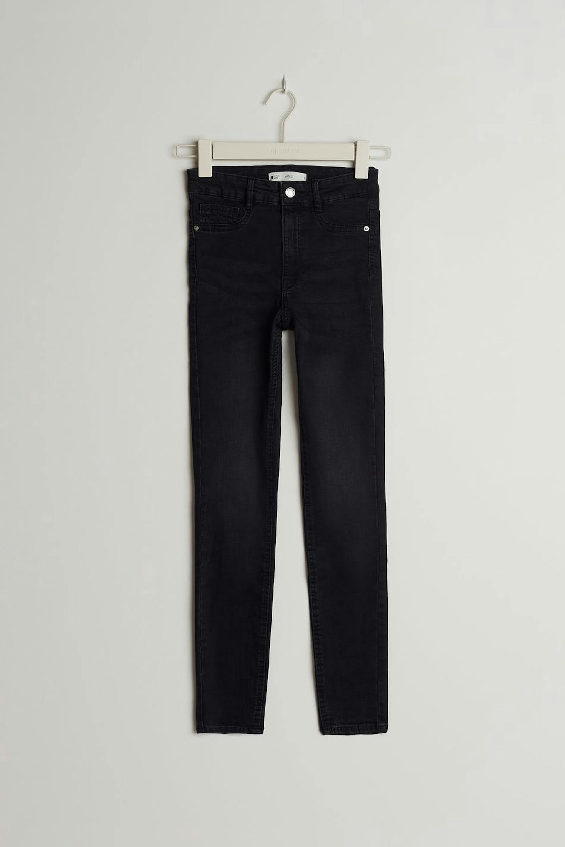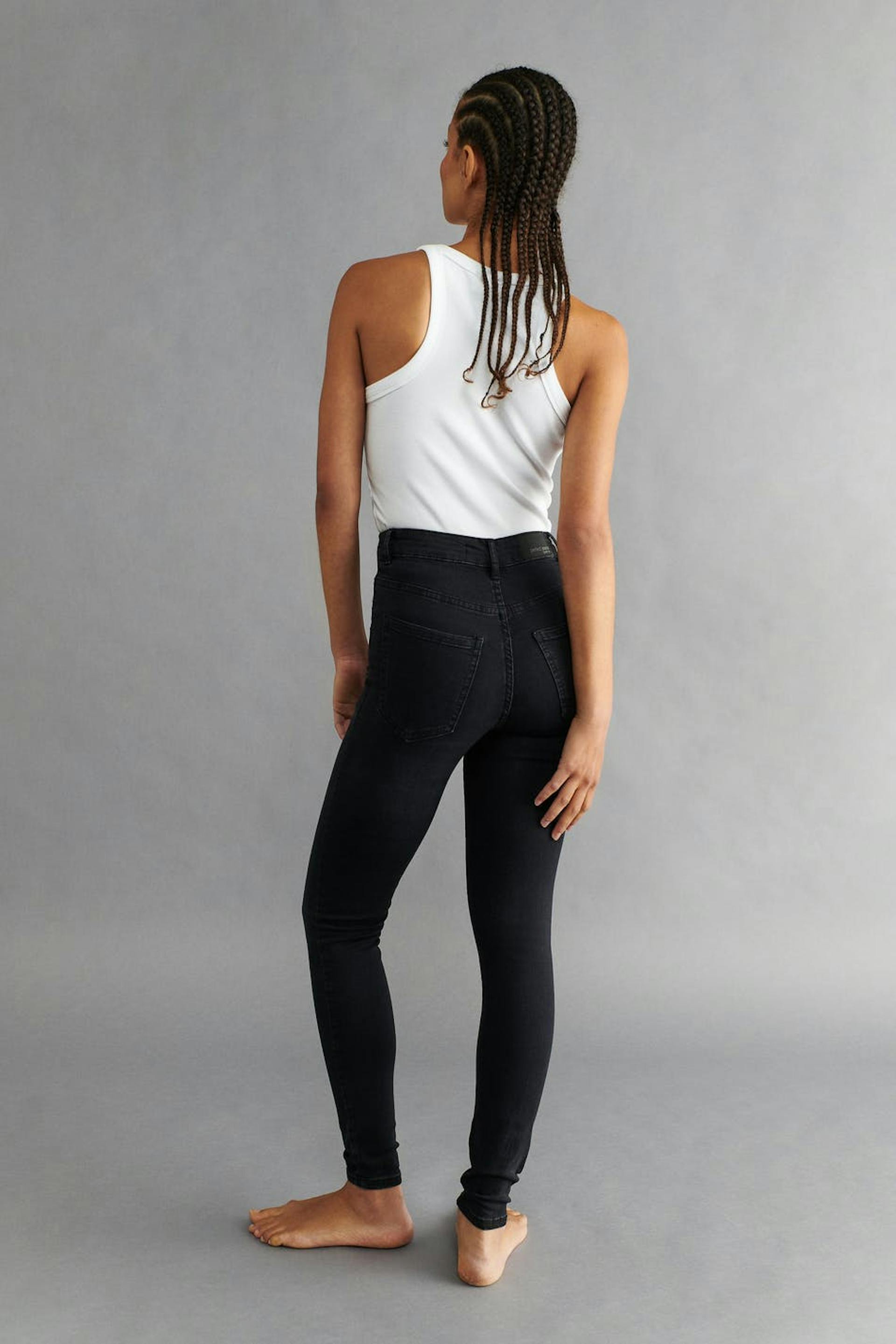 Jeans med superstræk og høj talje. Jeansene er sortgrå og har en figursyet, komfortabel pasform med smalle bukseben. De har gylp med lynlås, snydelommer ved fronten og ægte baglommer.