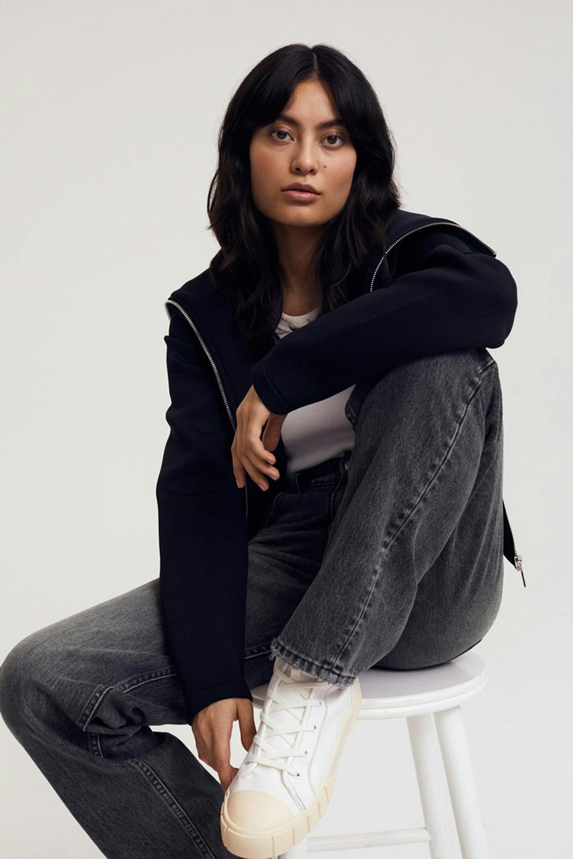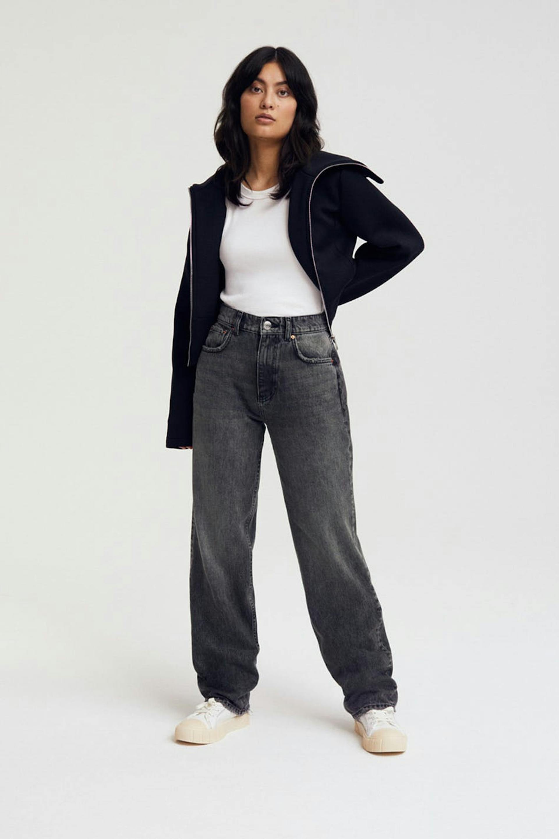 Petite jeans med høj talje. Jeansene er grå og har en lige, 90er-inspireret pasform. De er fremstillet af non-stretch denim og har bukseben med normal længde. Passer til dig, der er 160 cm eller derunder. Se vores størrelsesguide for at finde din størrelse.