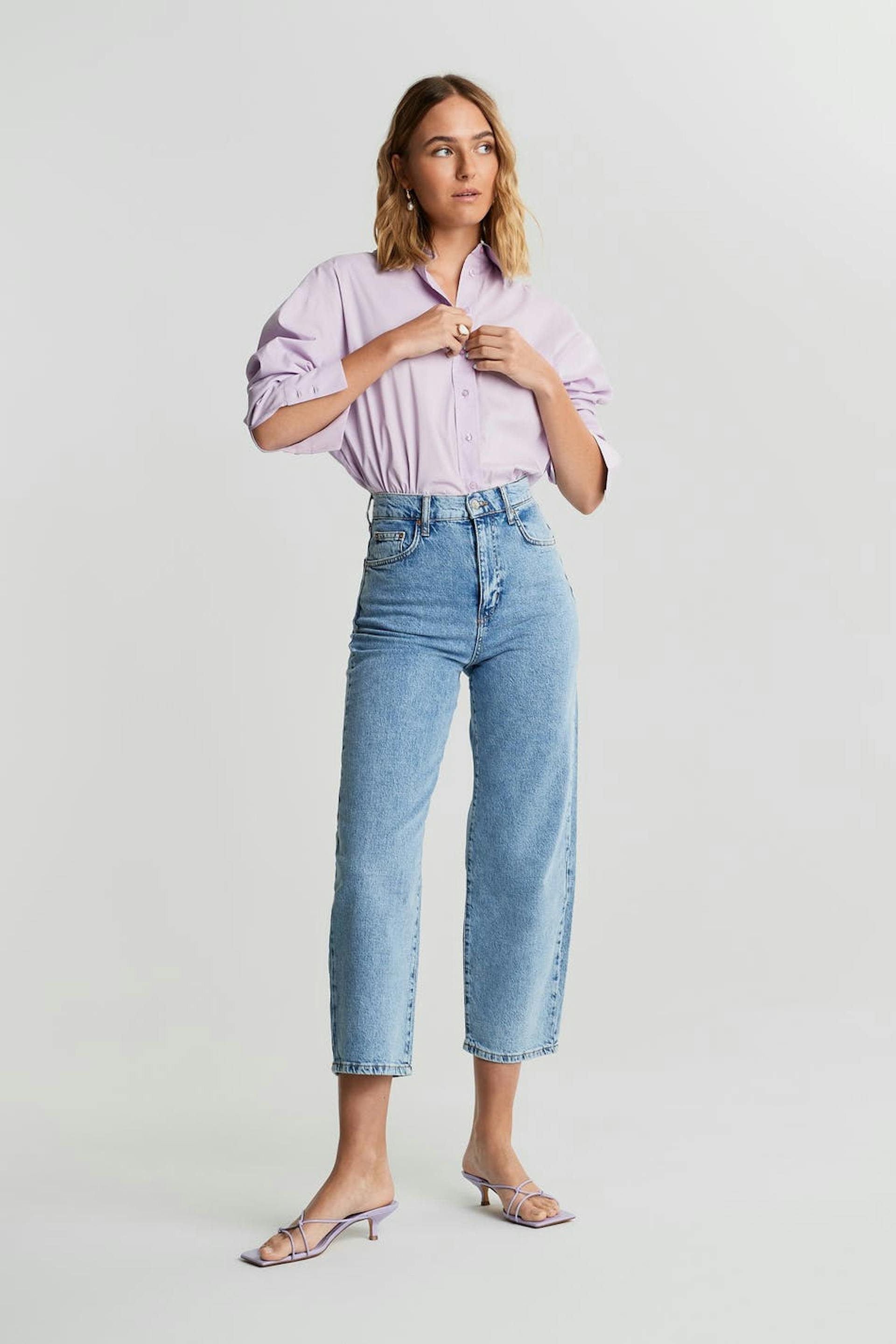 Uformelle jeans med en normal pasform. Jeansene er blå og lige og har en høj talje. De har komfortstræk.