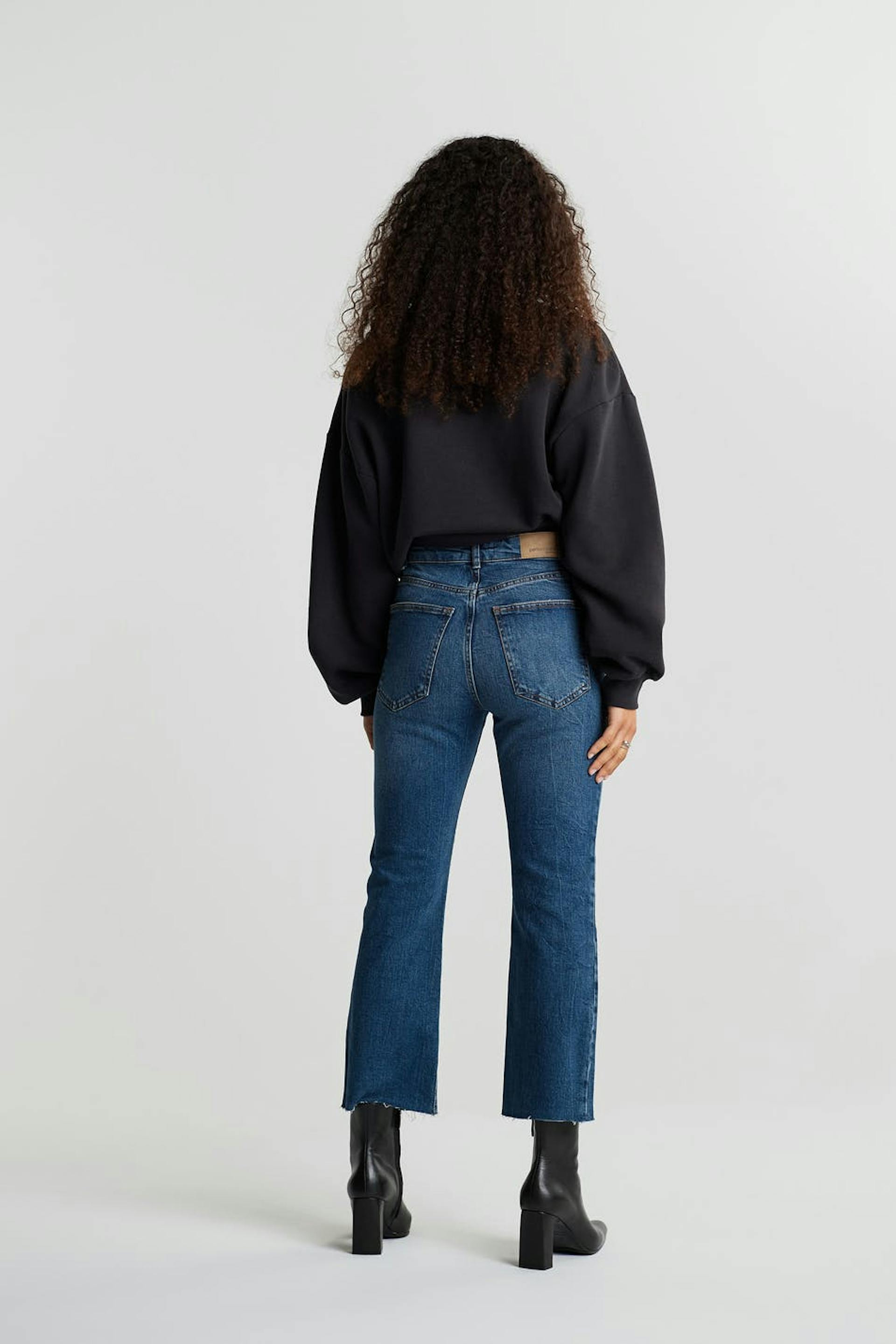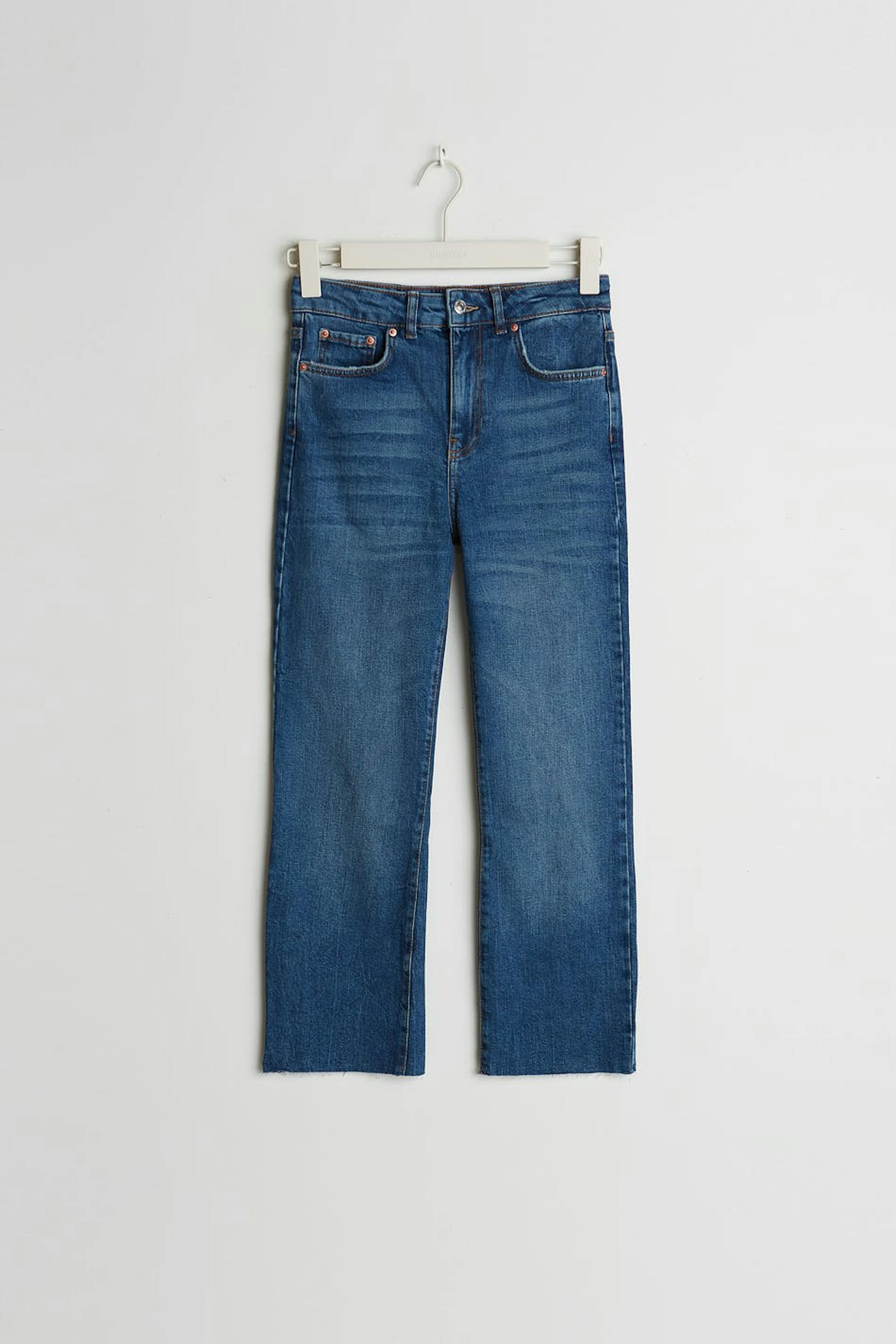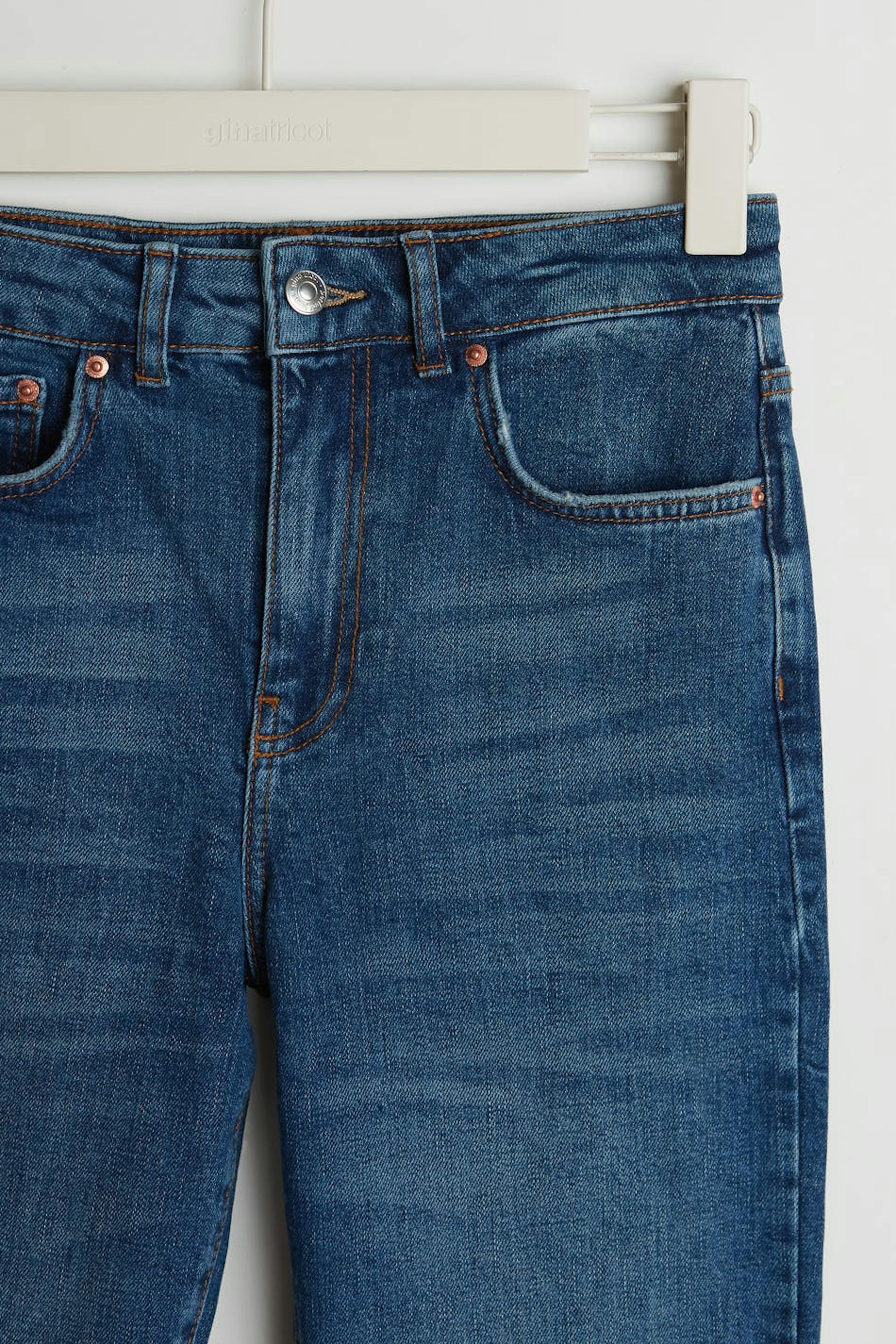Petite jeans med en figursyet pasform. Jeansene er blå og har en medium talje. De har korte ben med en svajdetalje. Passer til dig, der er 160 cm eller derunder.