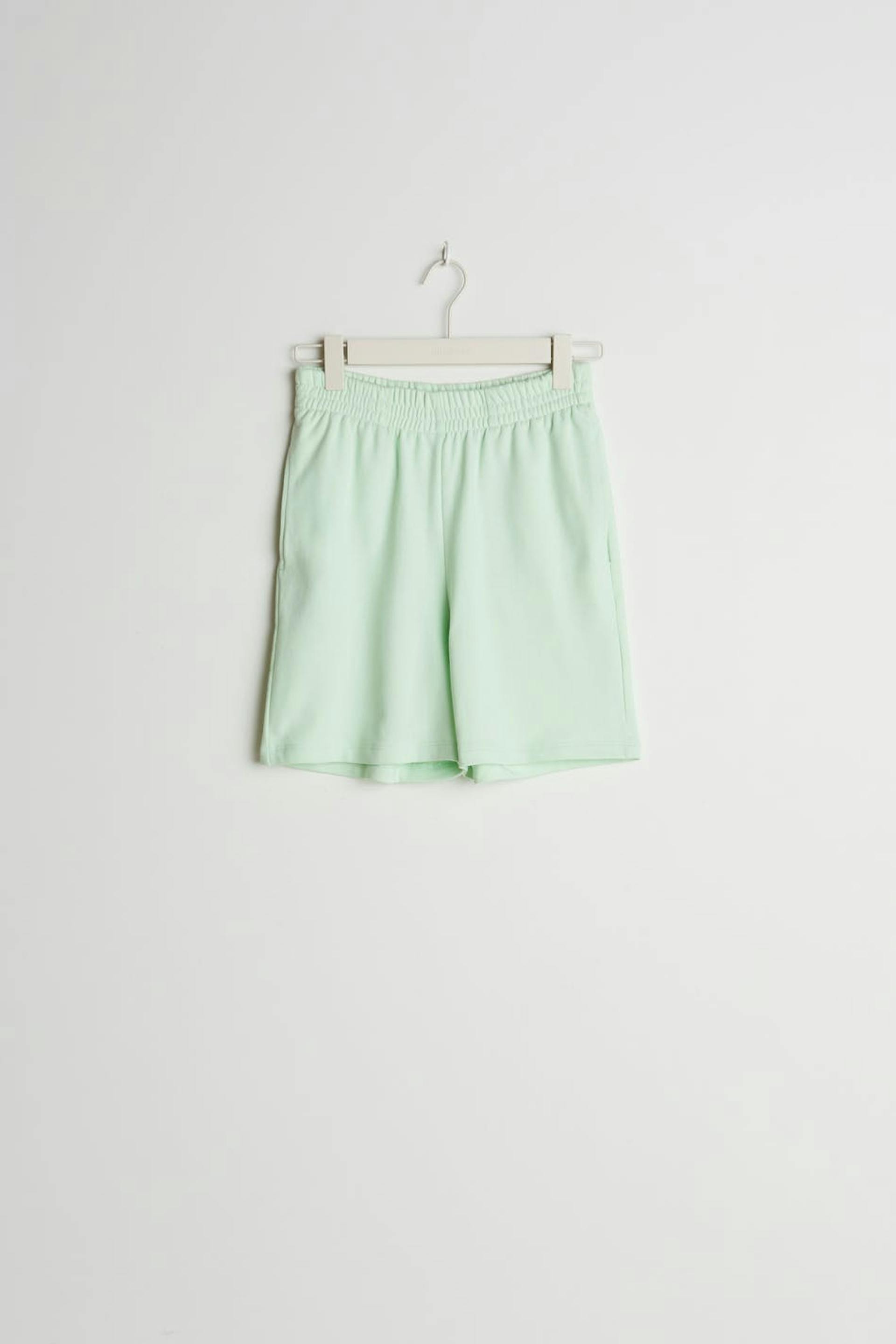 Langt shorts med en normal pasform. Shortsene er mintgrønt og har en høj talje i elastik. Det er fremstillet af sweatshirtstof i bomuld.