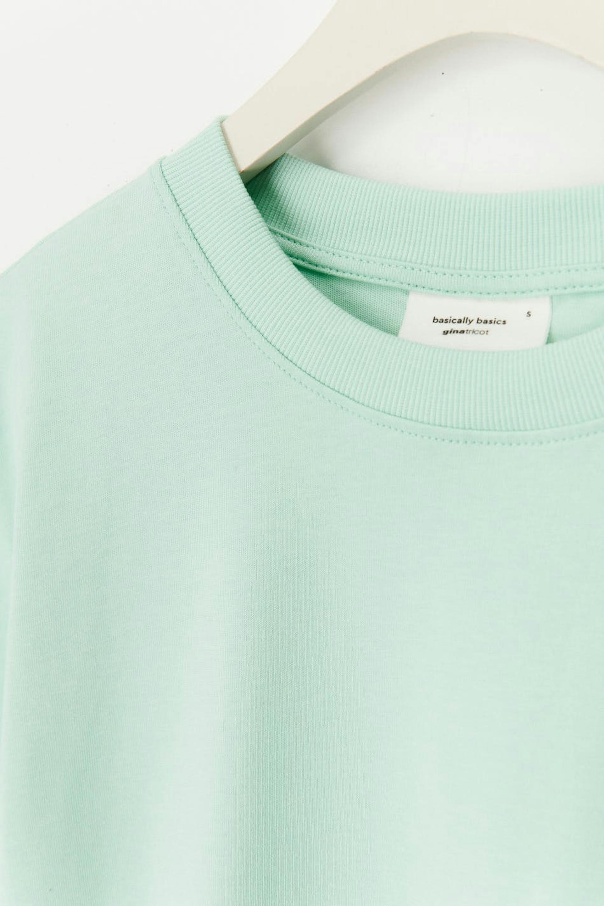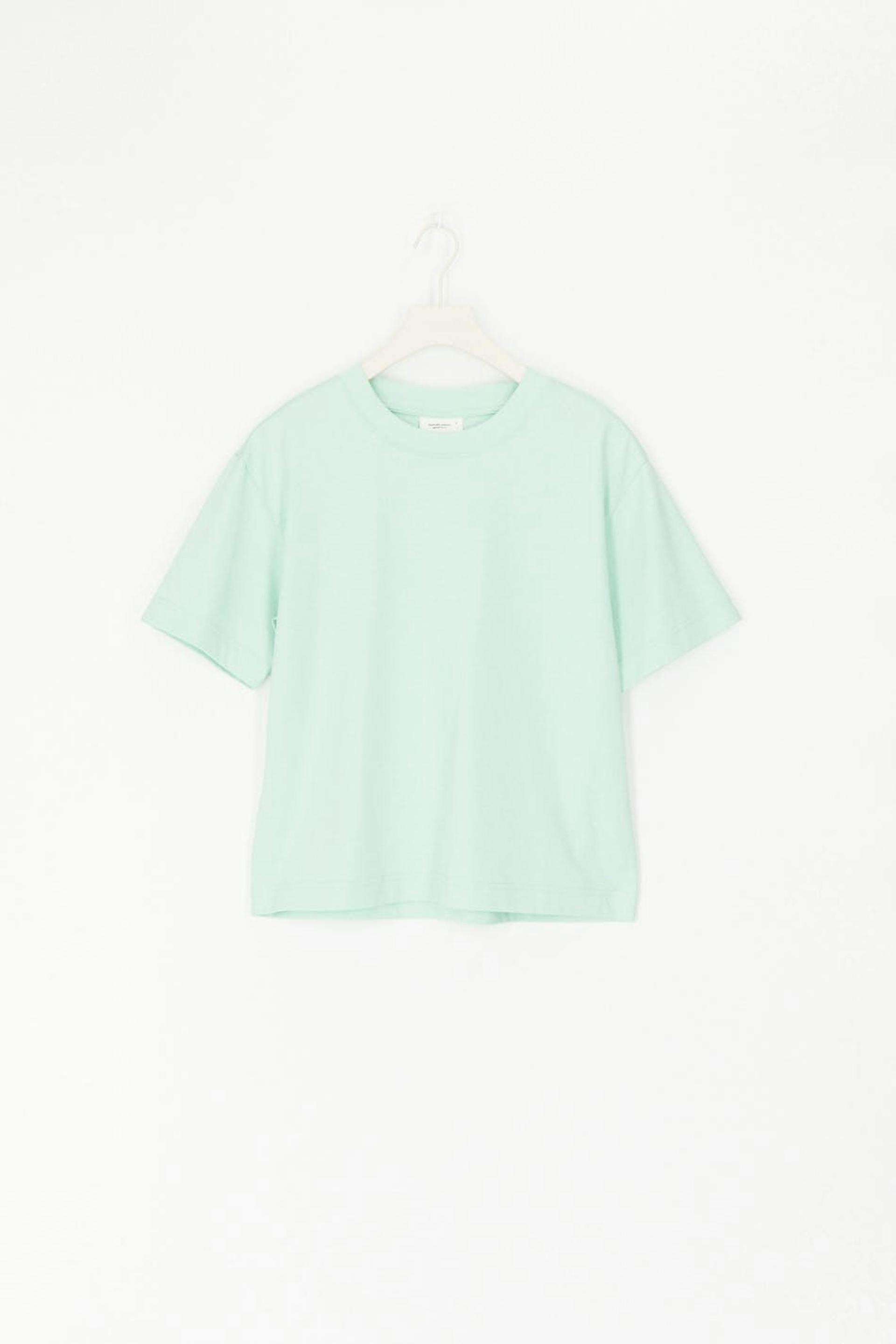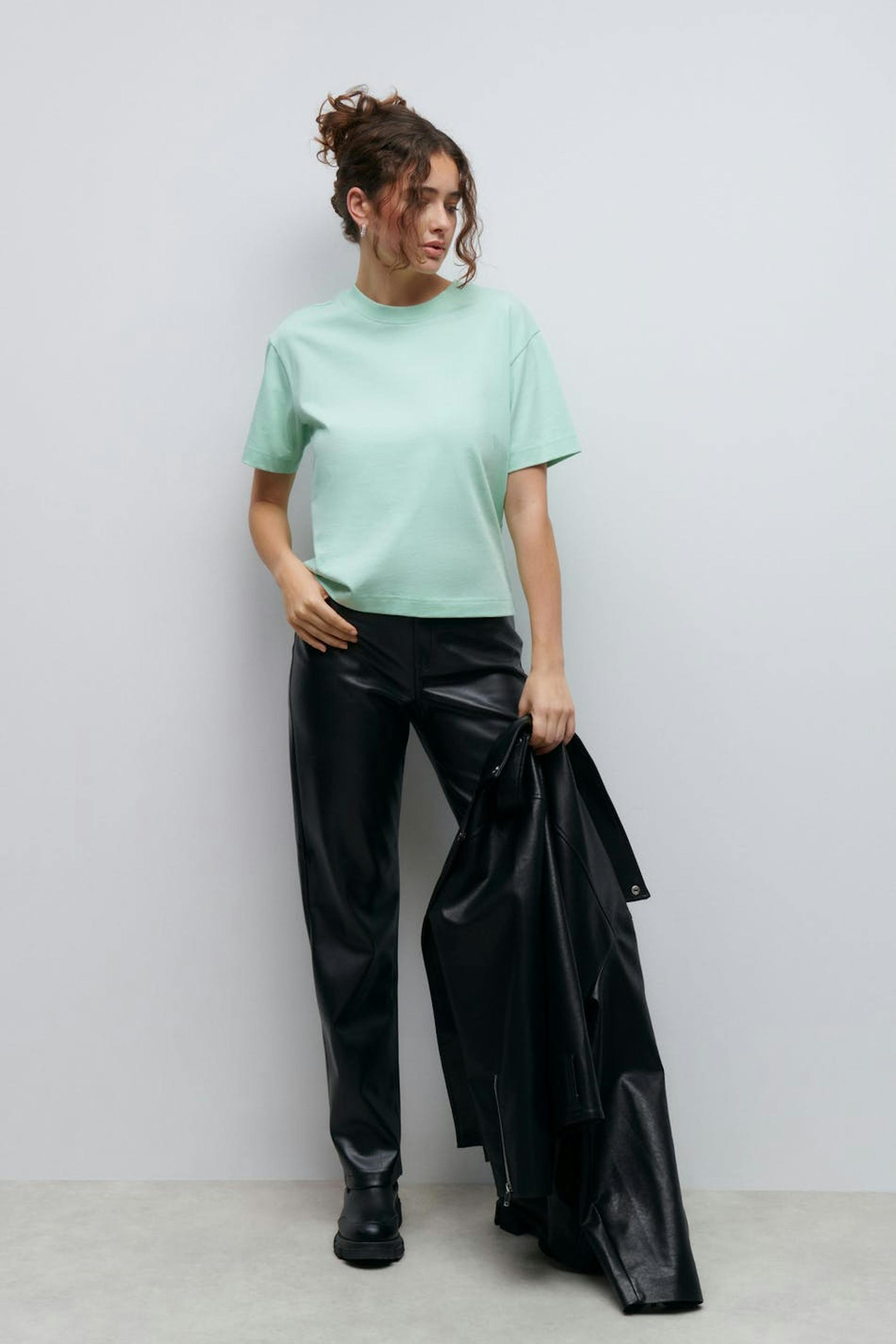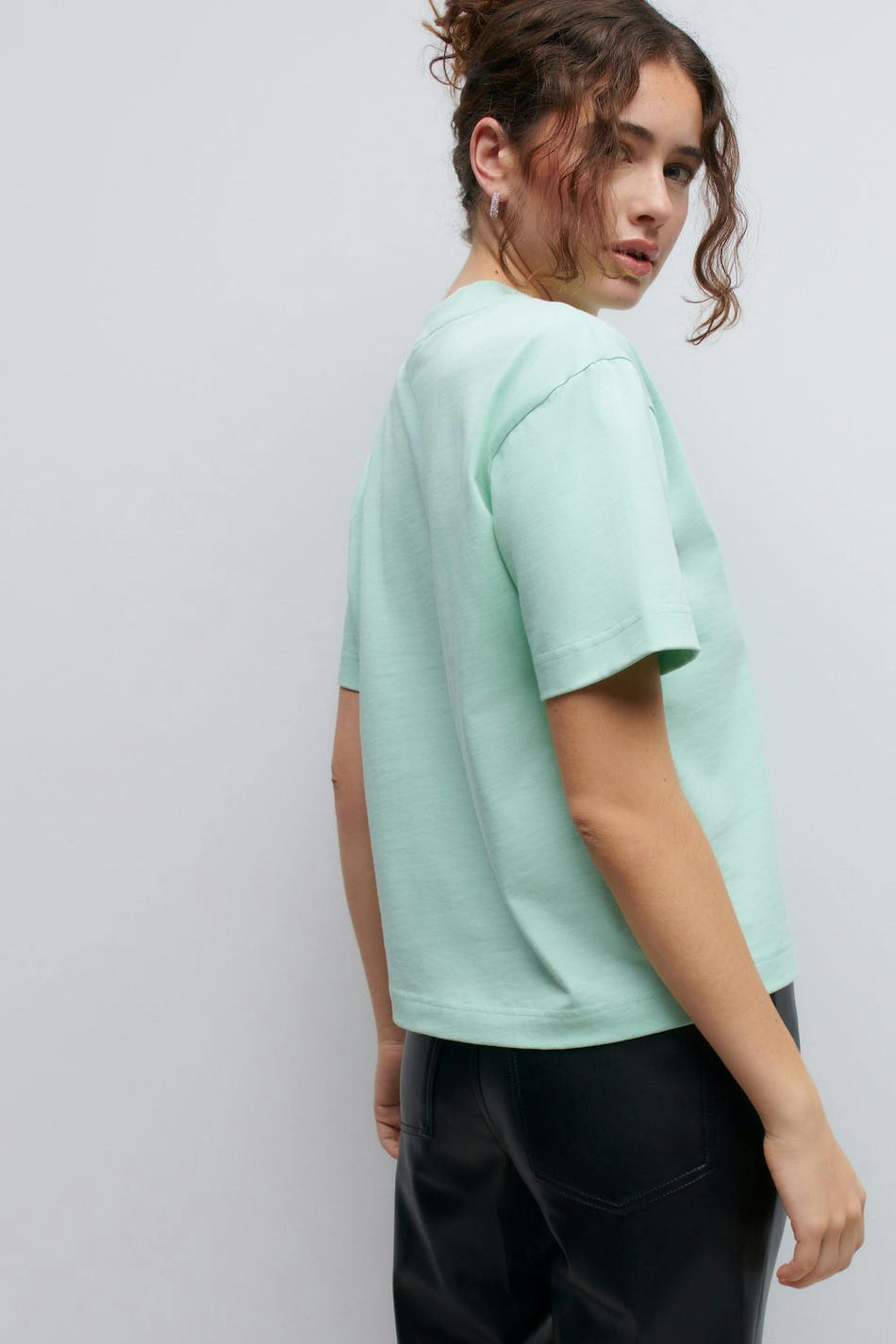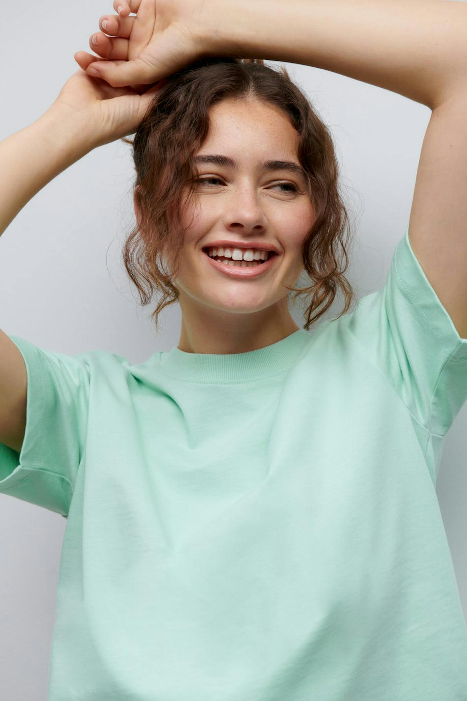 T-shirt med en oversize pasform. T-shirten er grøn og har en oversize pasform. Den har et blødt, tykt materiale i bomuld og en ribmanchet på udskæringen.