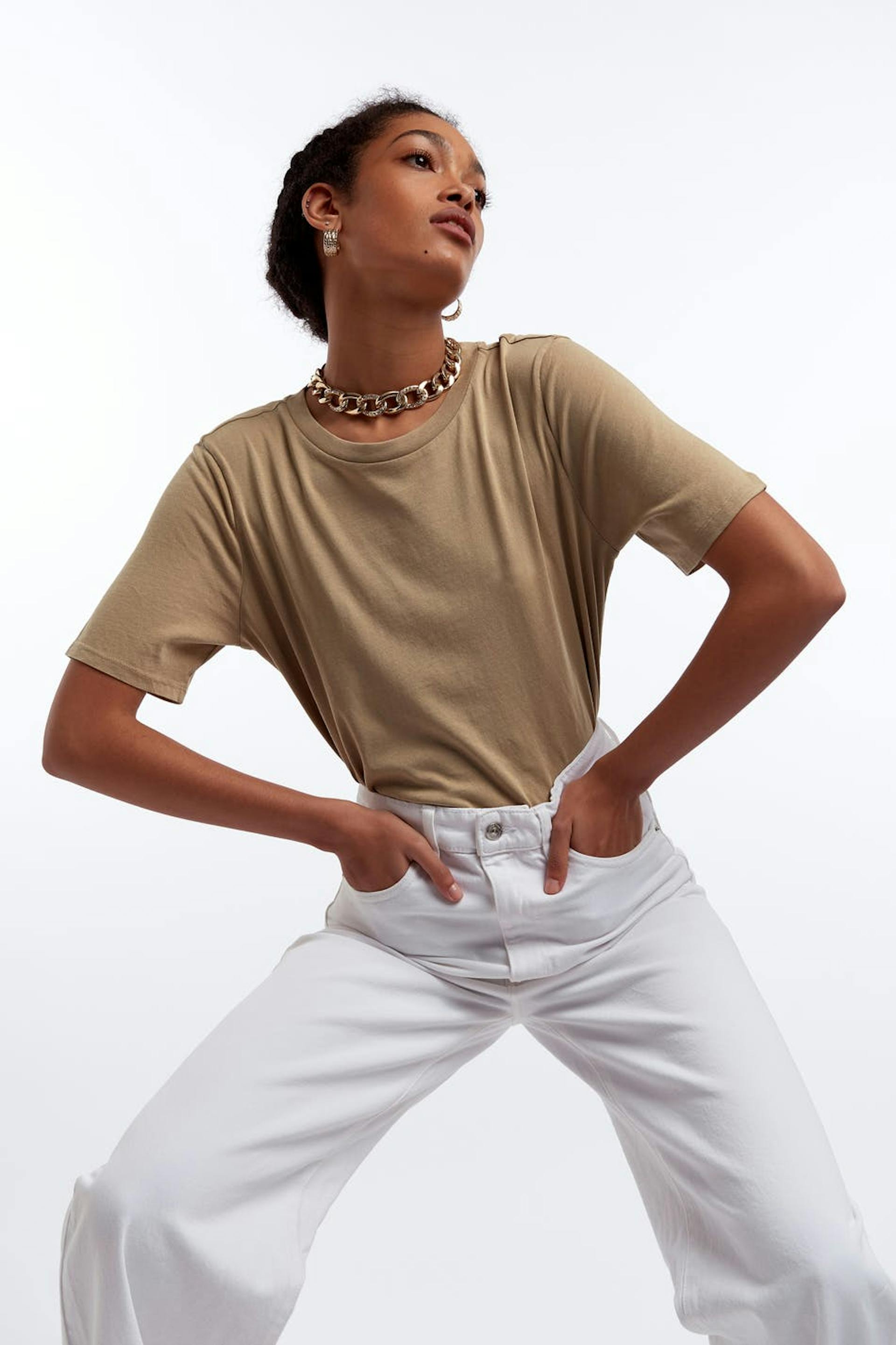 Kortærmet t-shirt med en generøs pasform. T-shirten er beige.