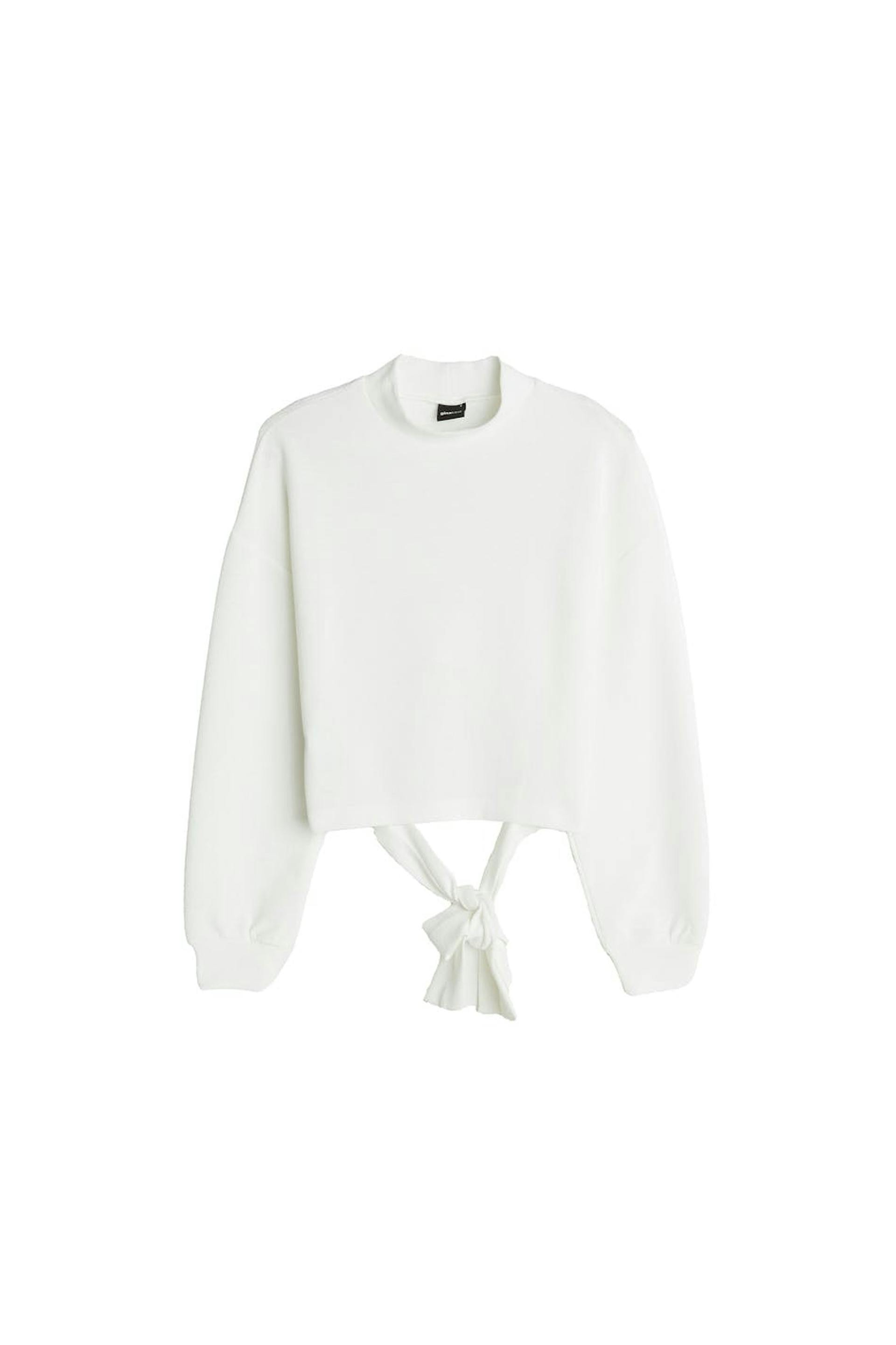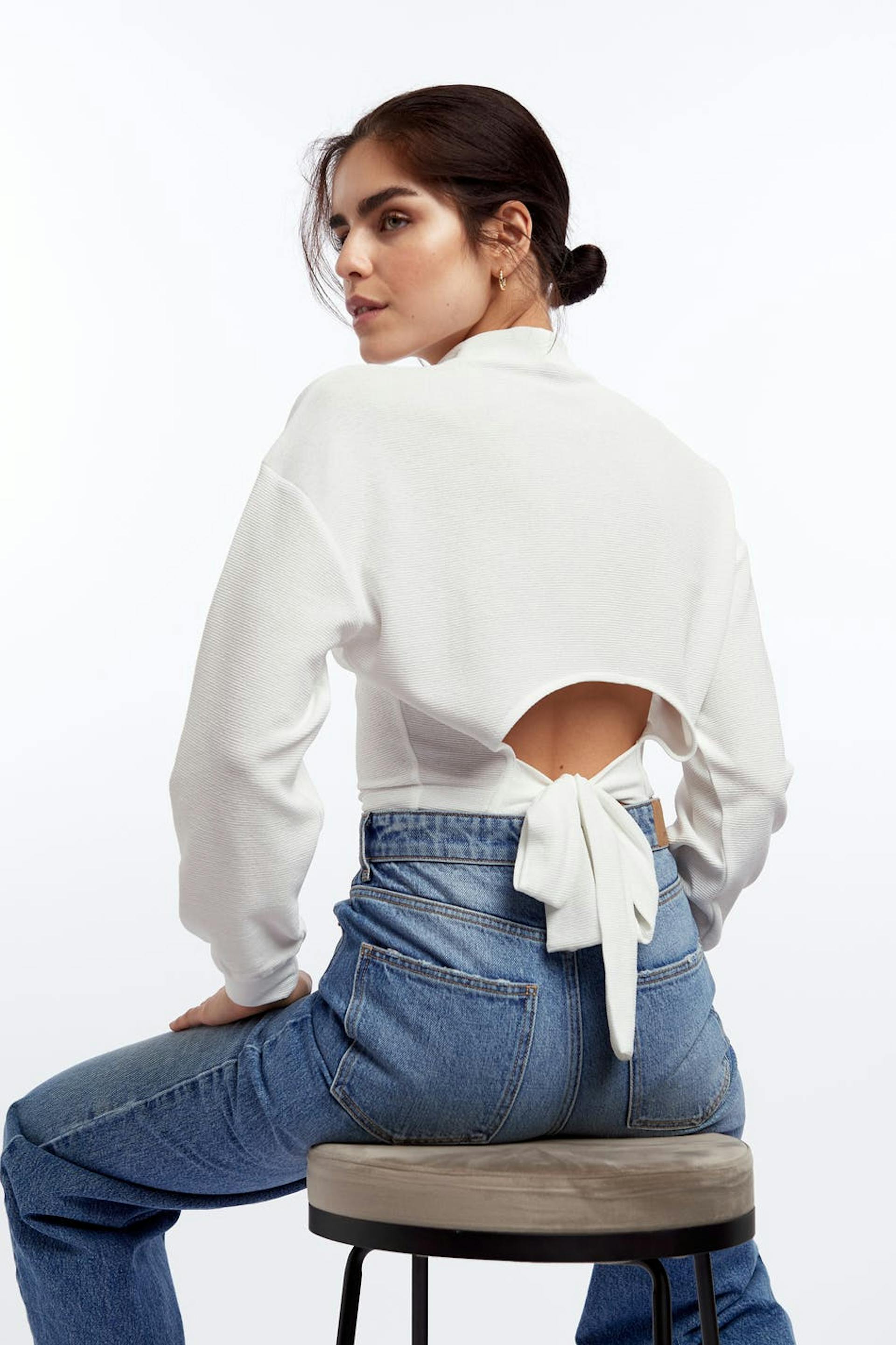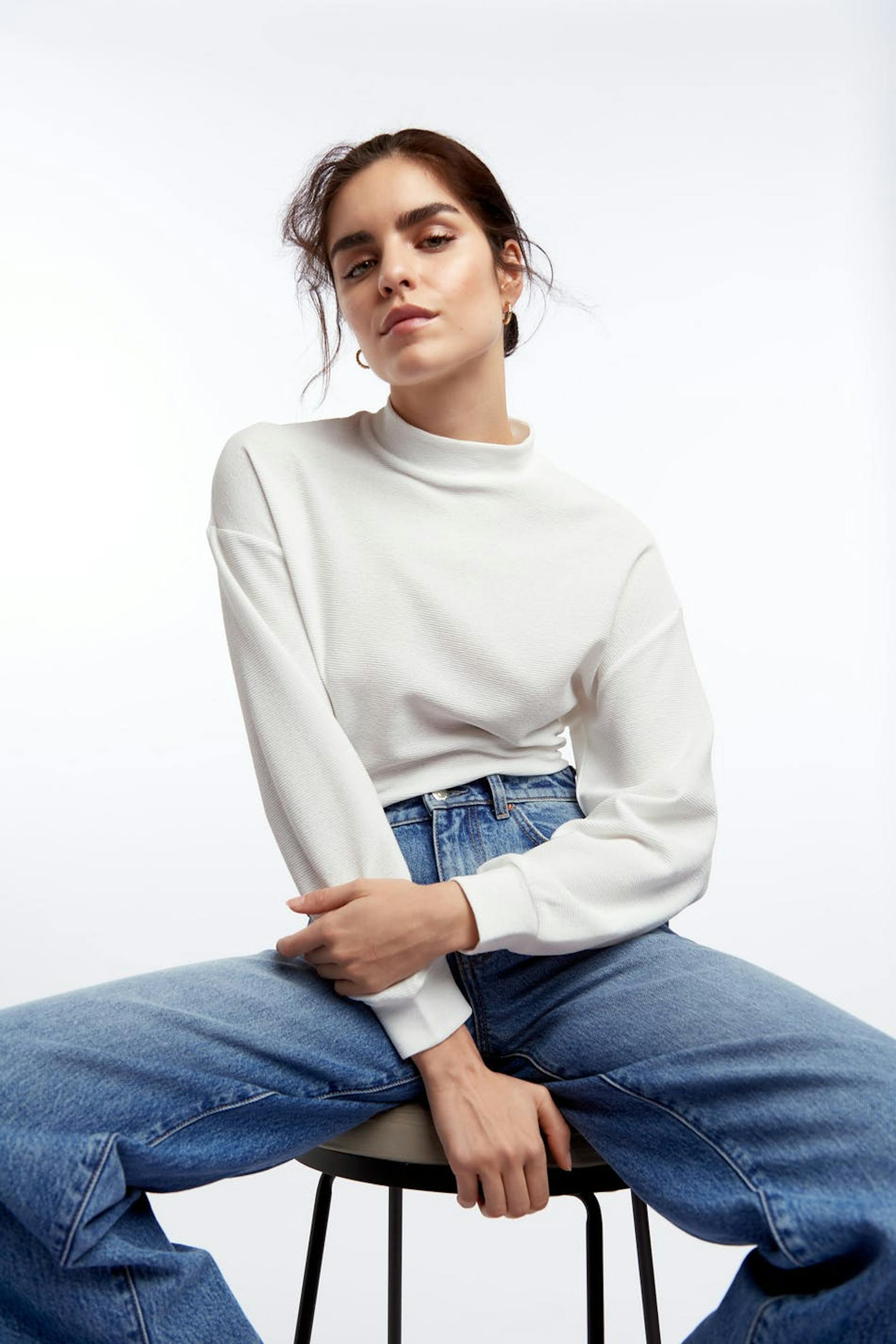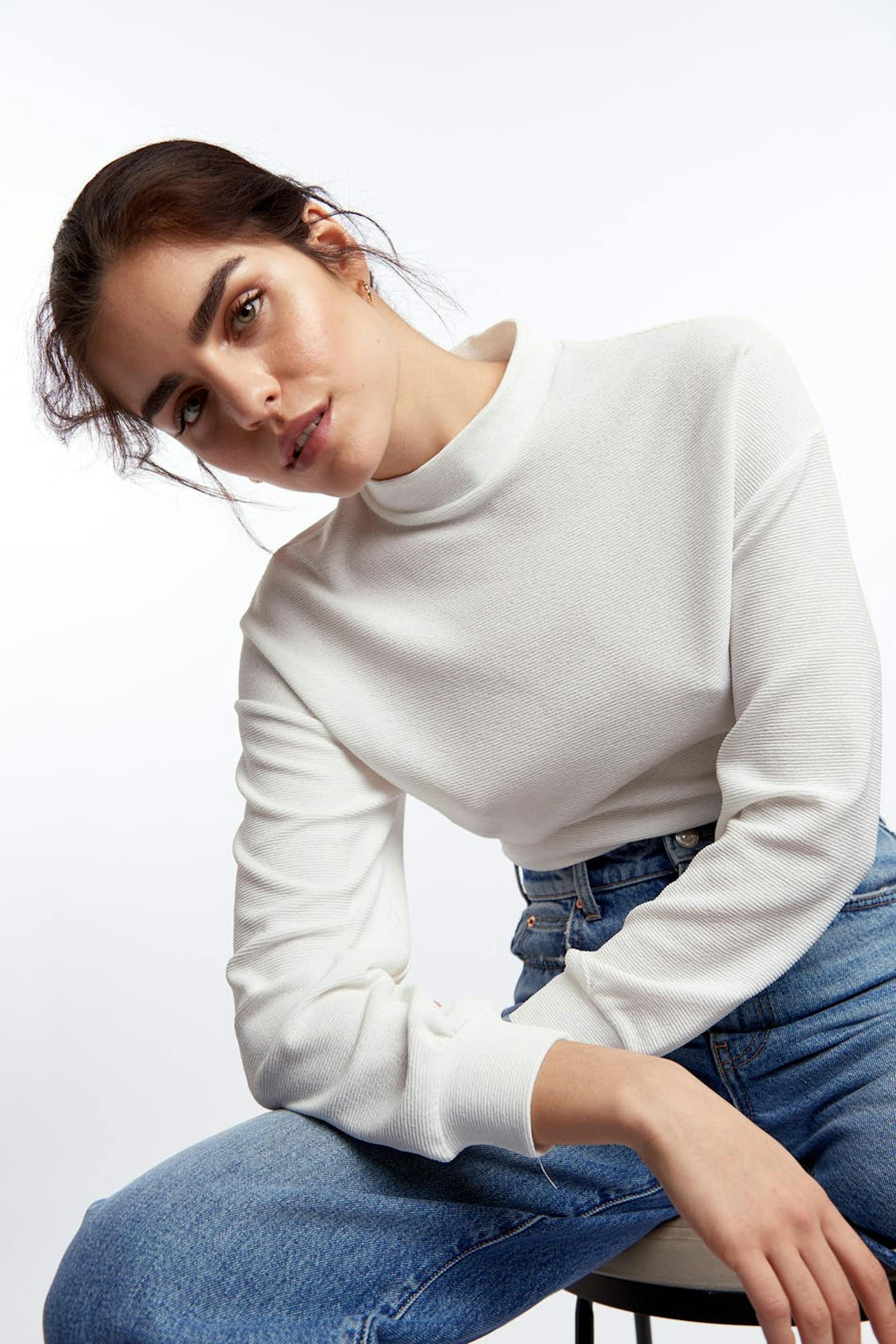 Behandlet top med en normal pasform. Toppen er hvid, elastisk og ribbet. Den er fremstillet af jersey og har nedsænkede skuldre.