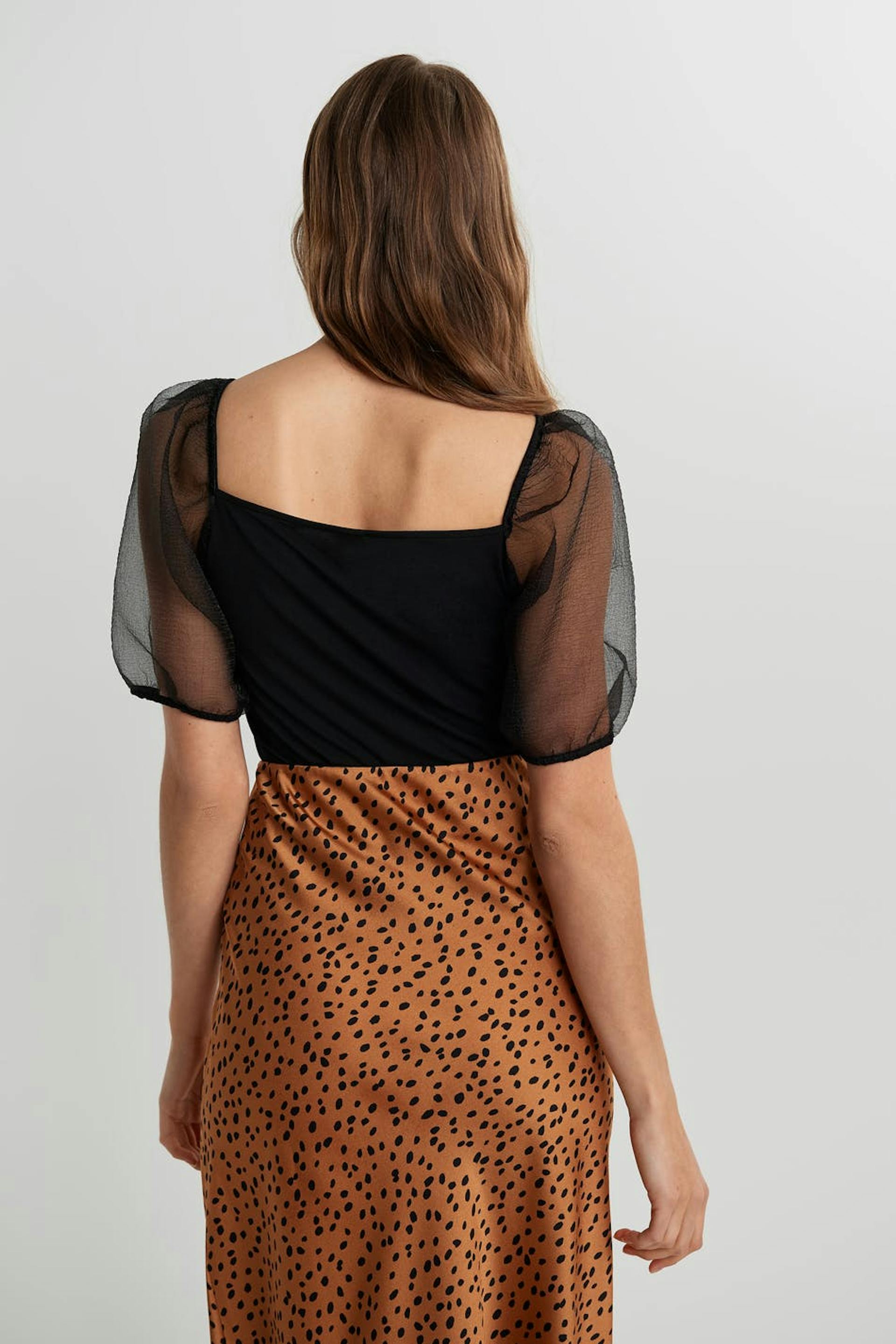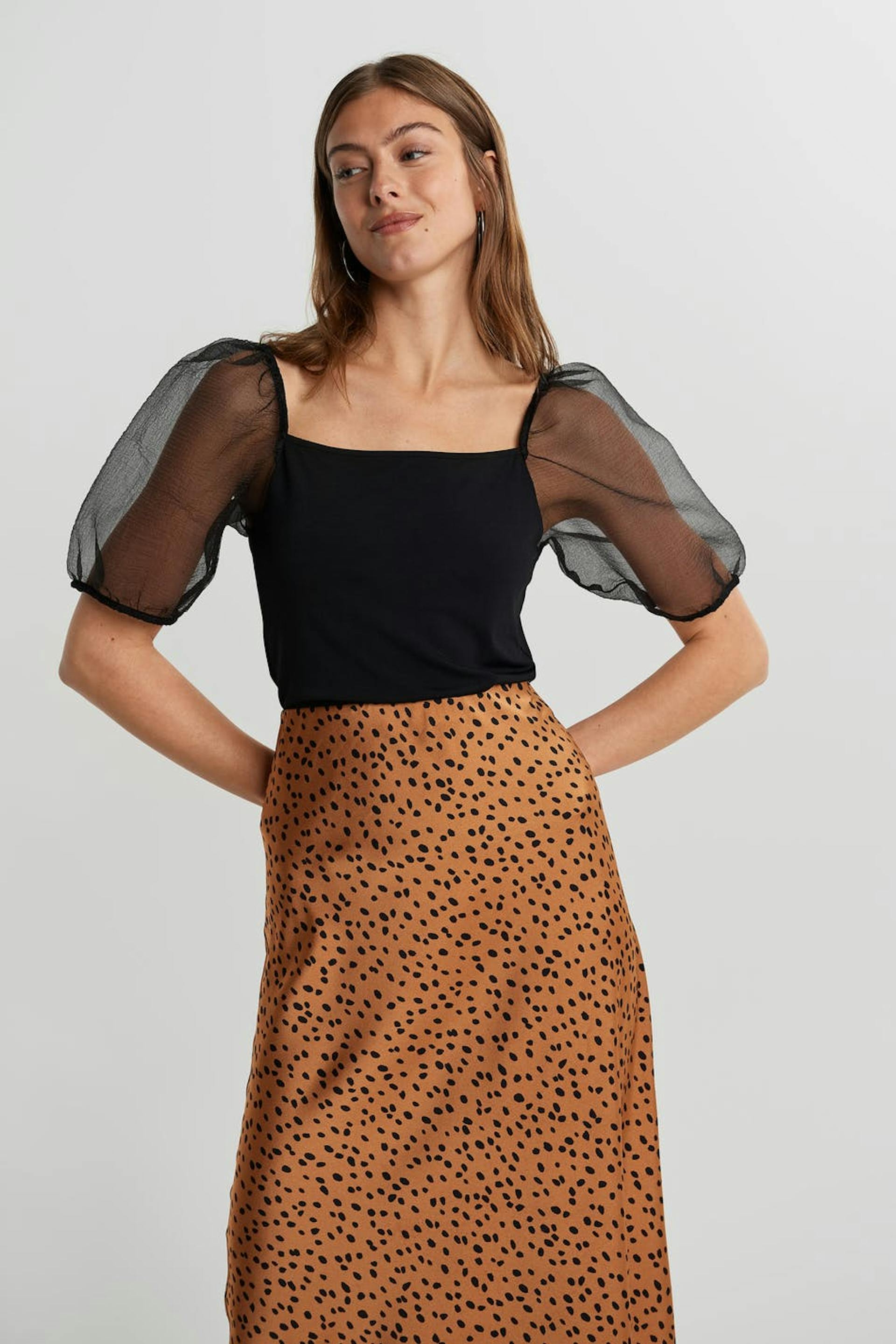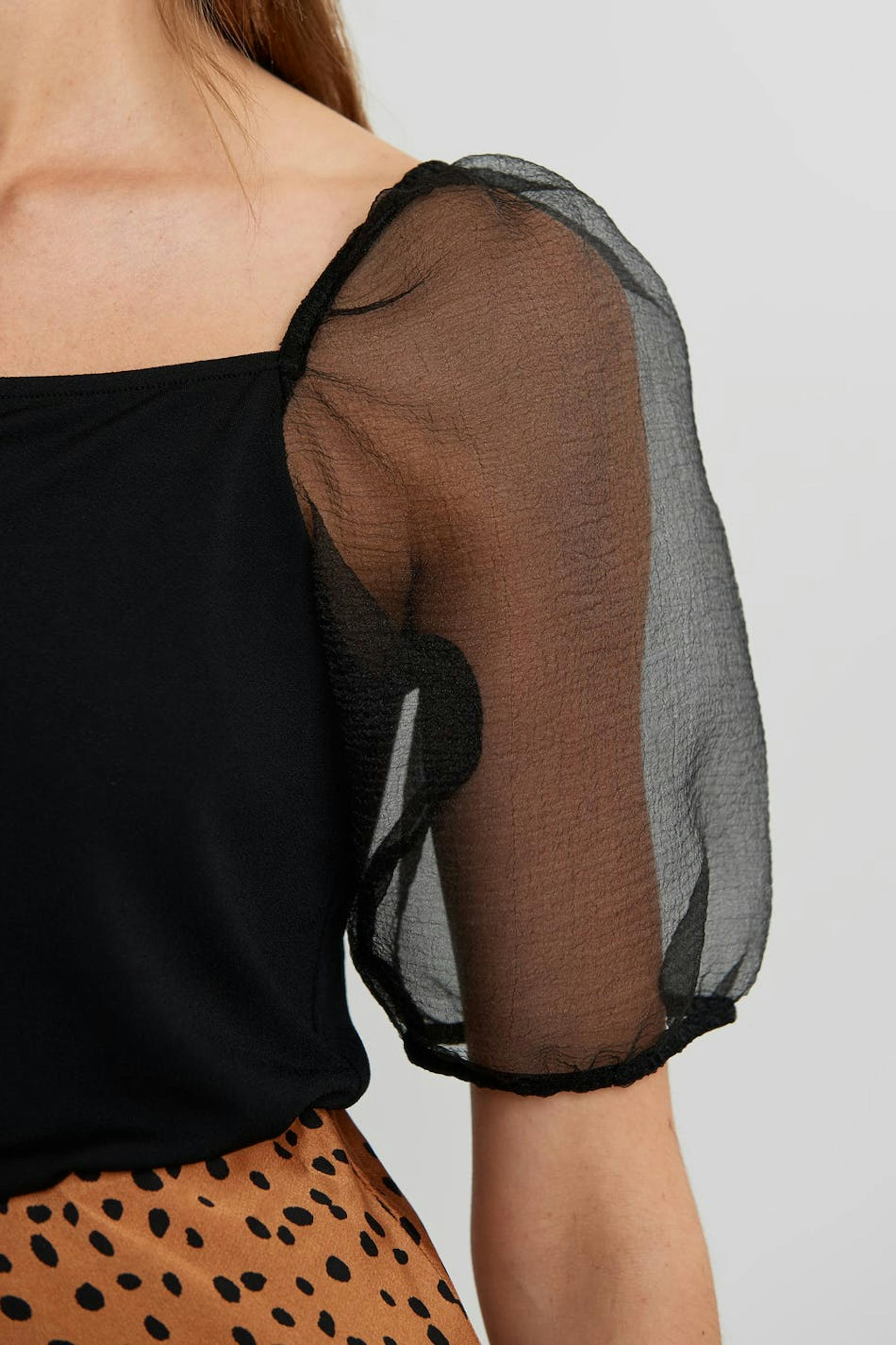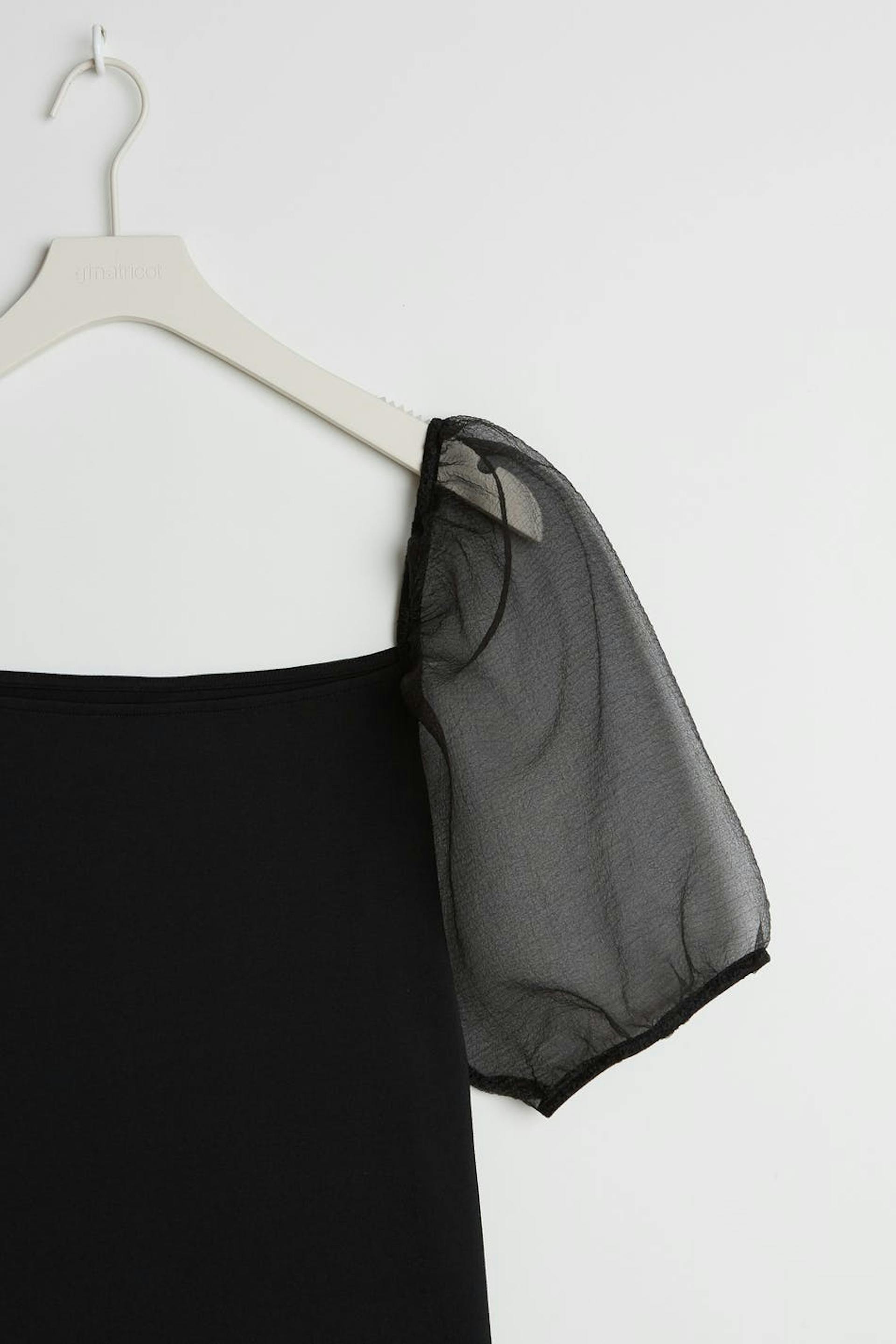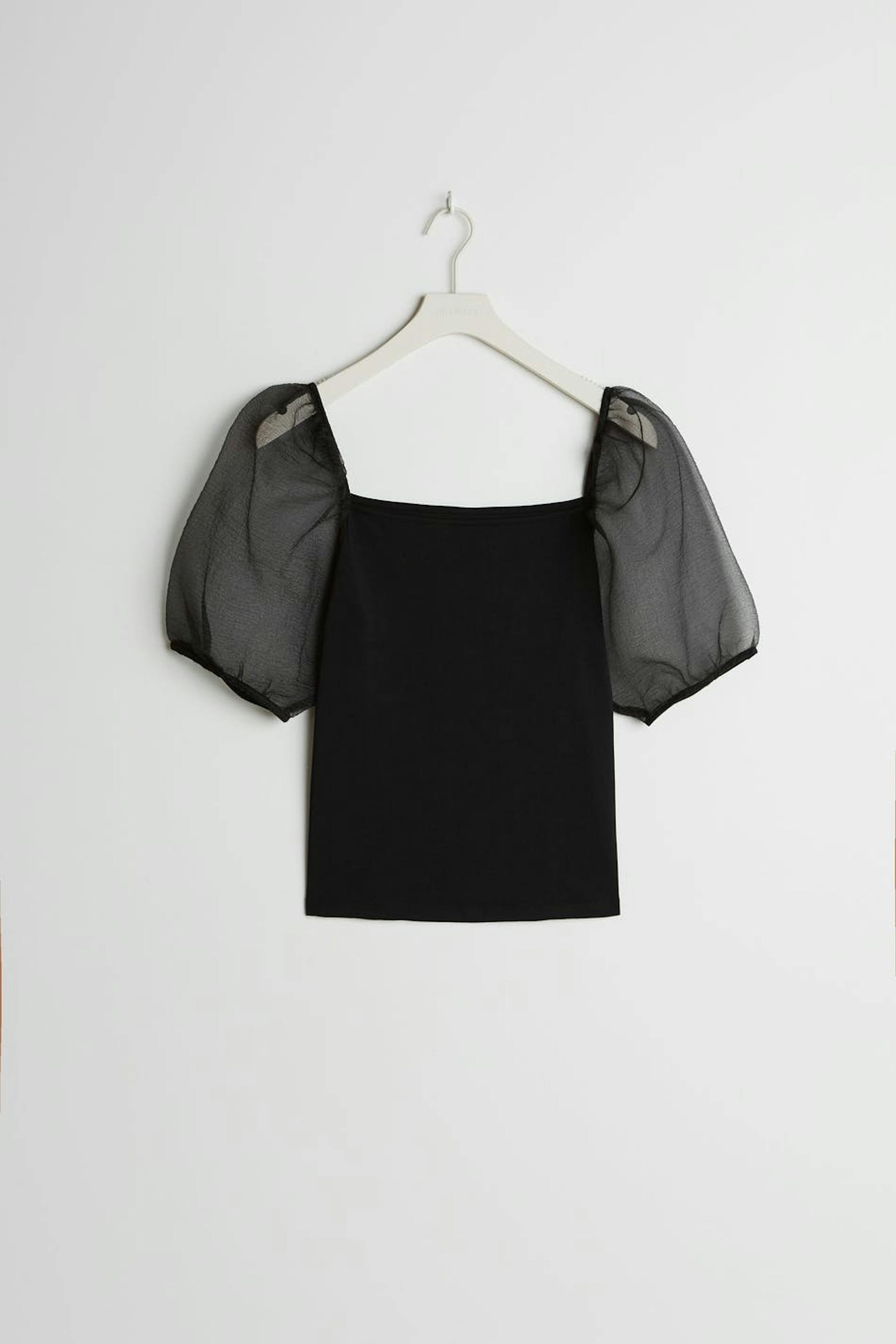 Top med en normal pasform. Toppen er perfekt til festen og sort og har korte pufærmer i organza. Den er fremstillet af jersey.