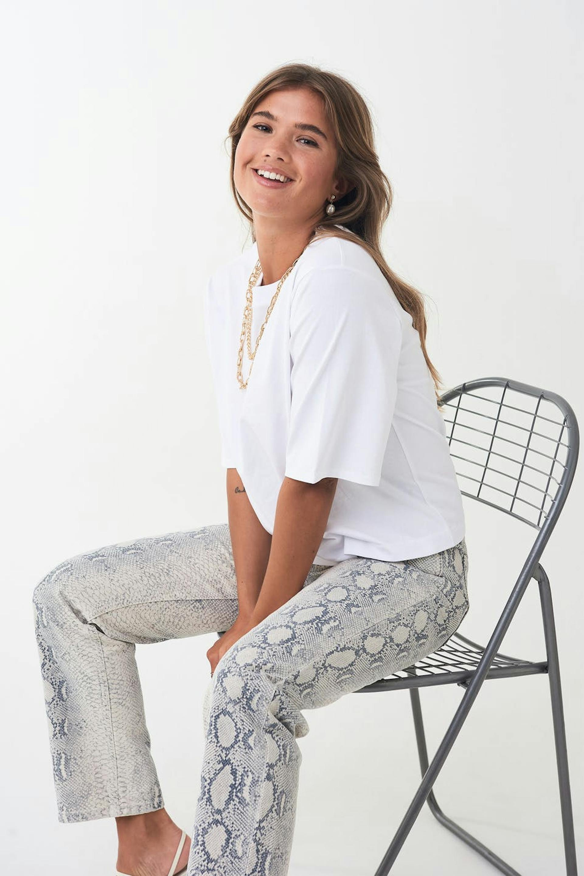 Modellen er 161 cm høy og har på seg størrelse S.