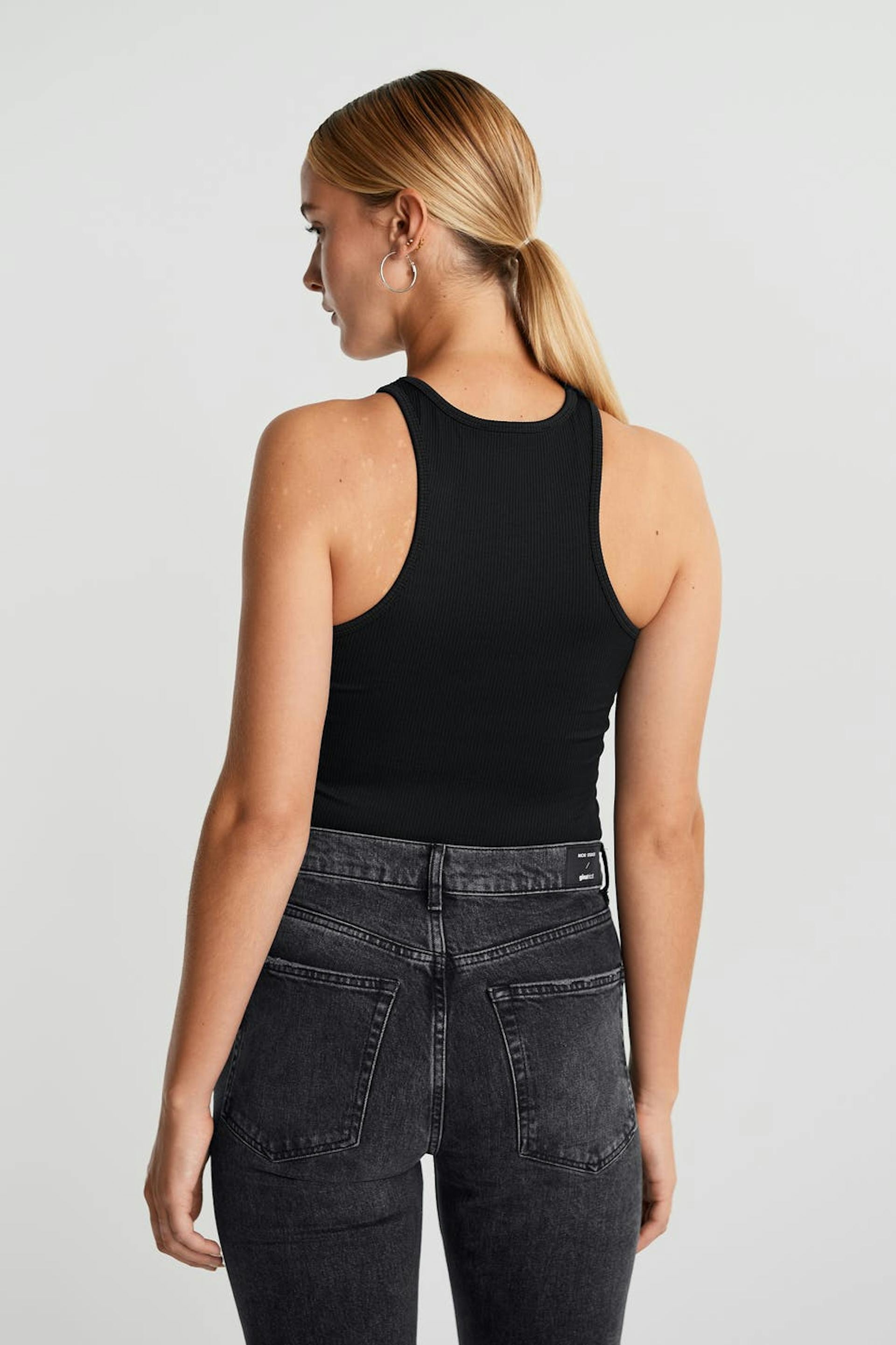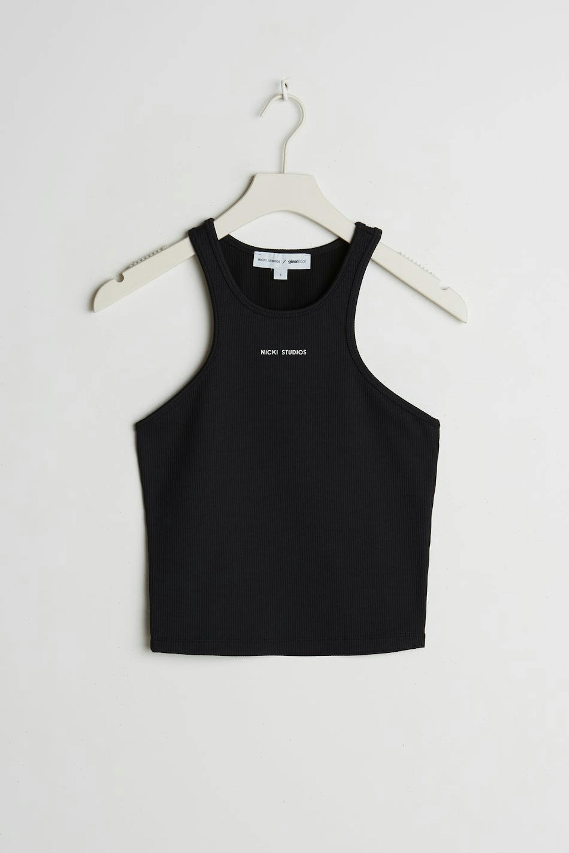 Elastisk tanktop med en figursyet pasform. Tanktoppen er sort, ribbet og lidt kort. Den har et muscle fit.