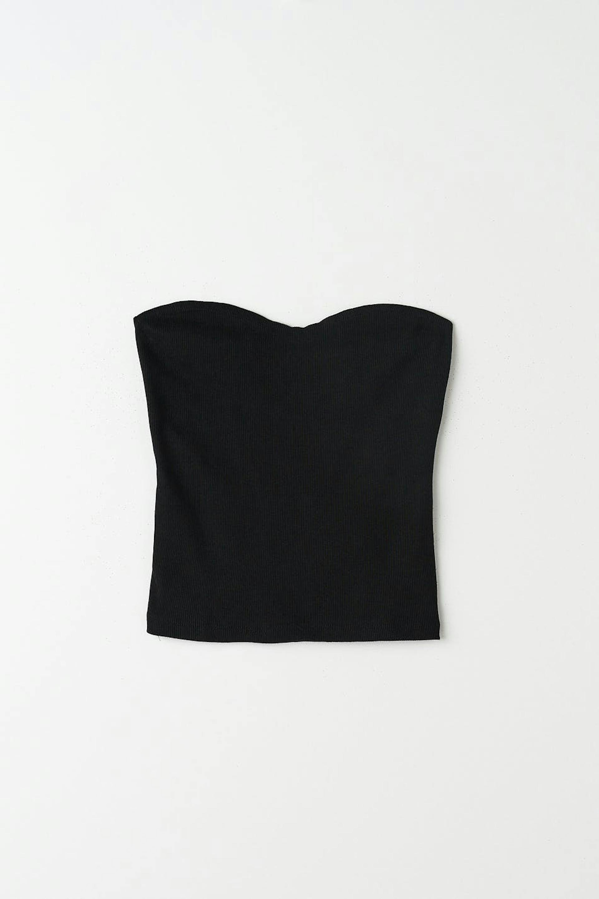 Tubetop i jersey med sweetheart udskæring. Toppen er sort og har indre silikonekant med elastisk tape.