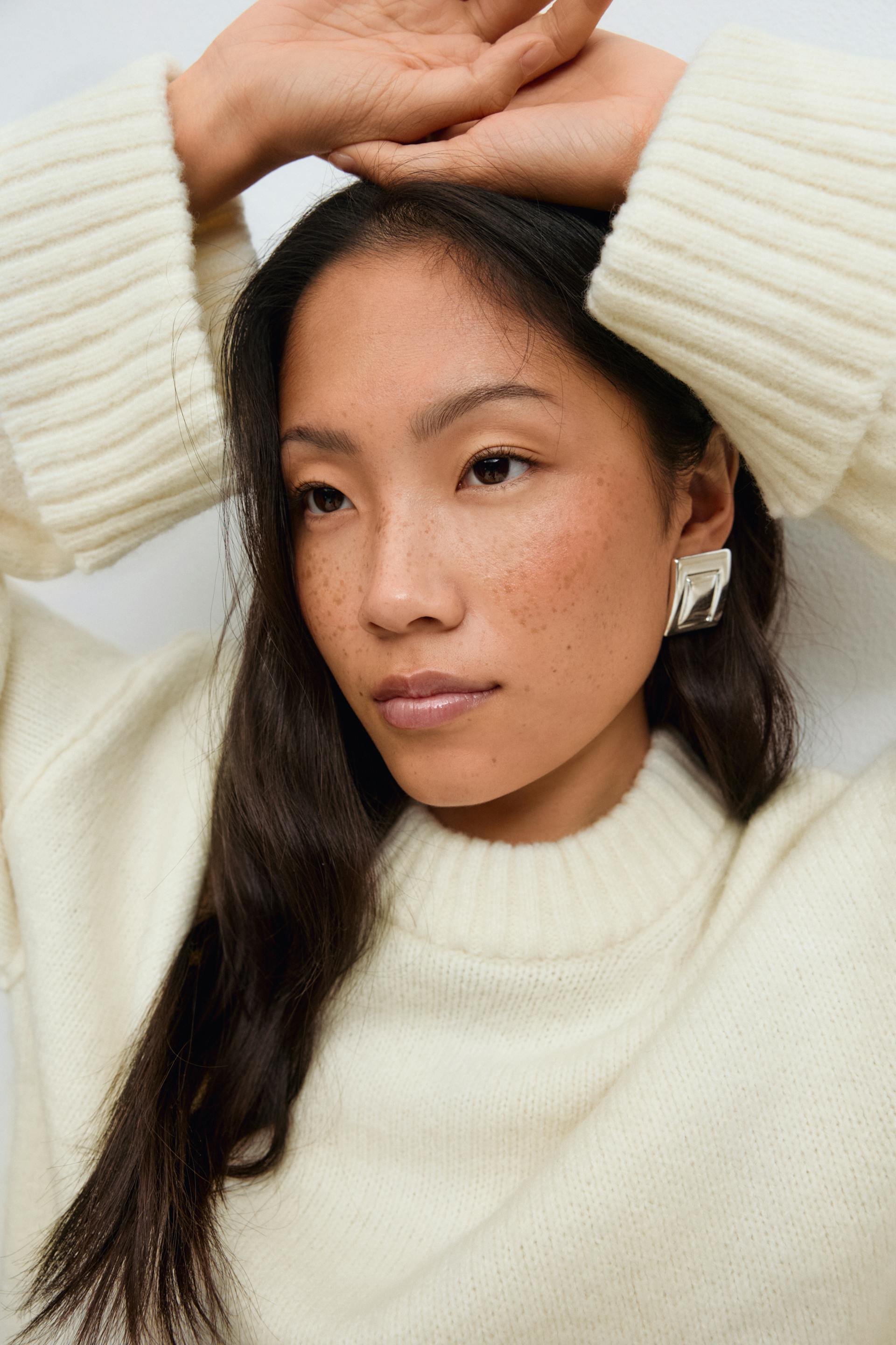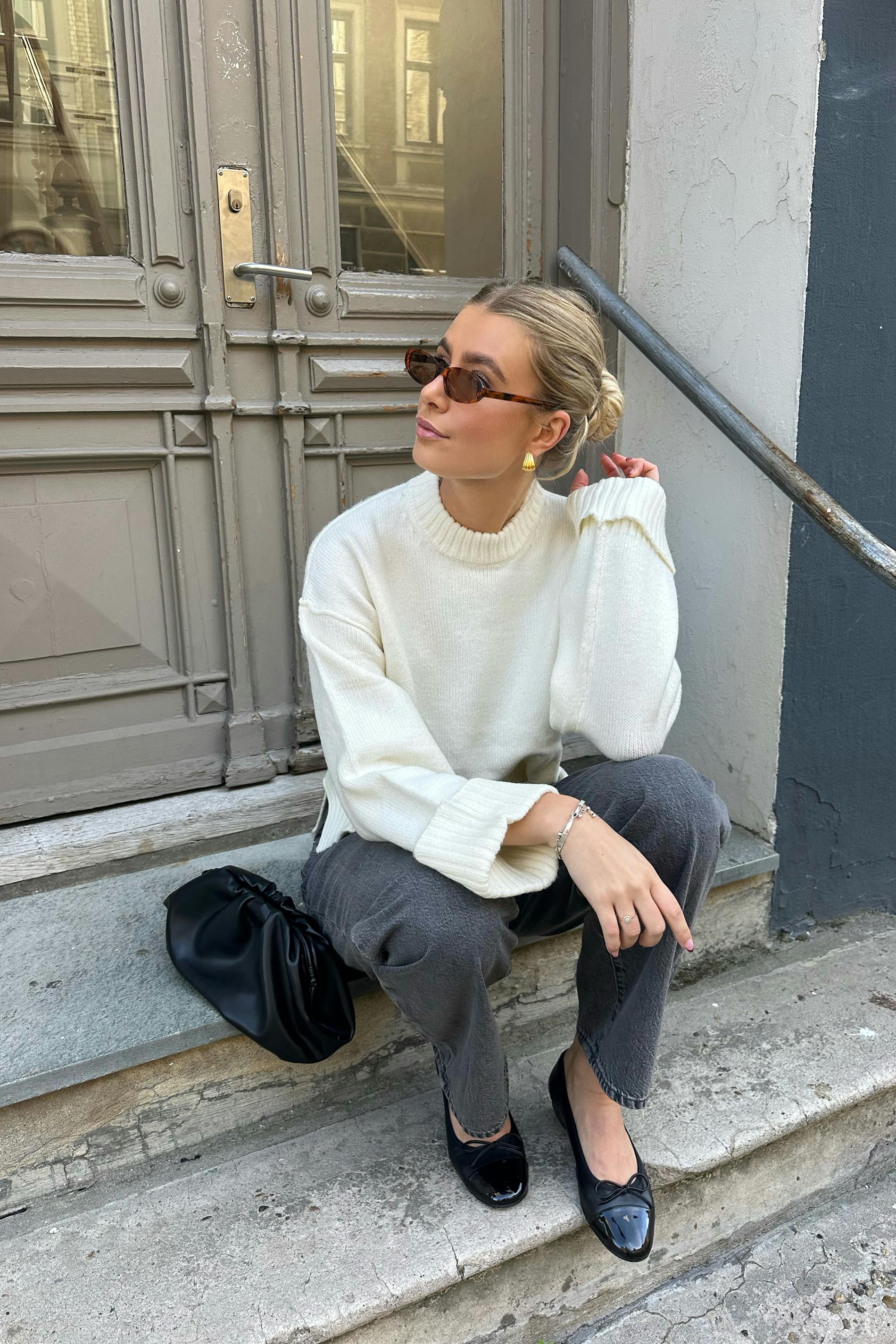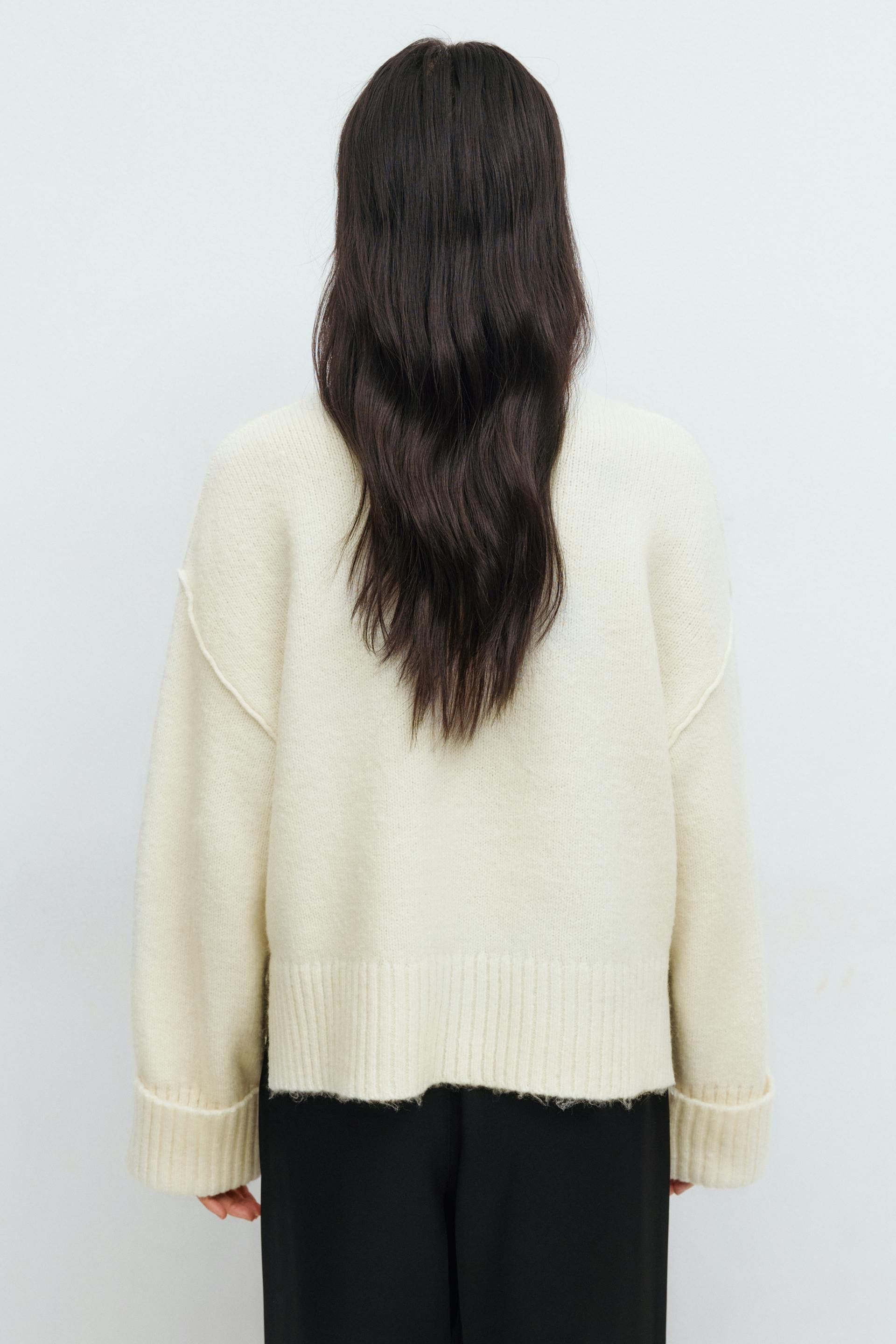Folded sleeve knitted sweater
