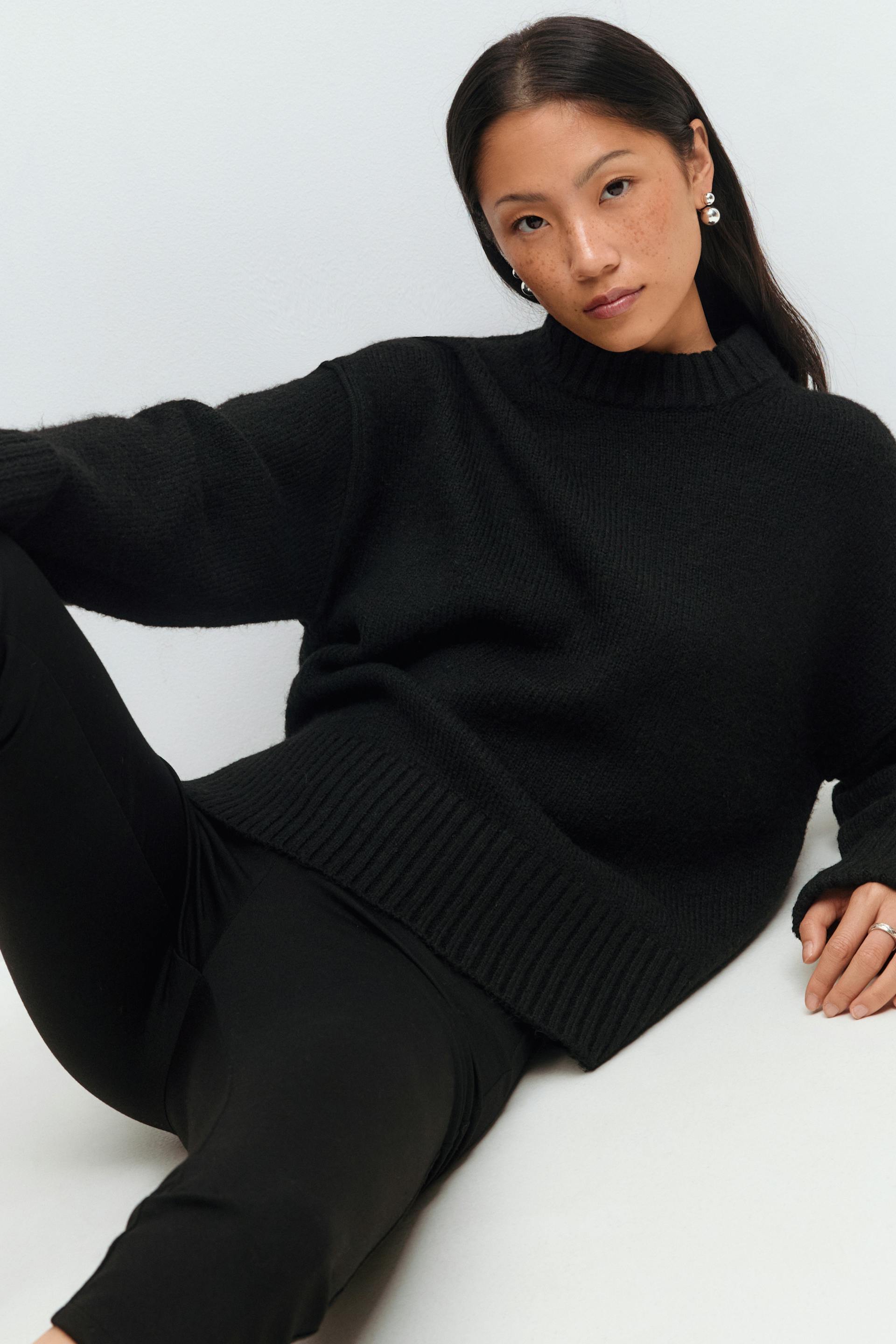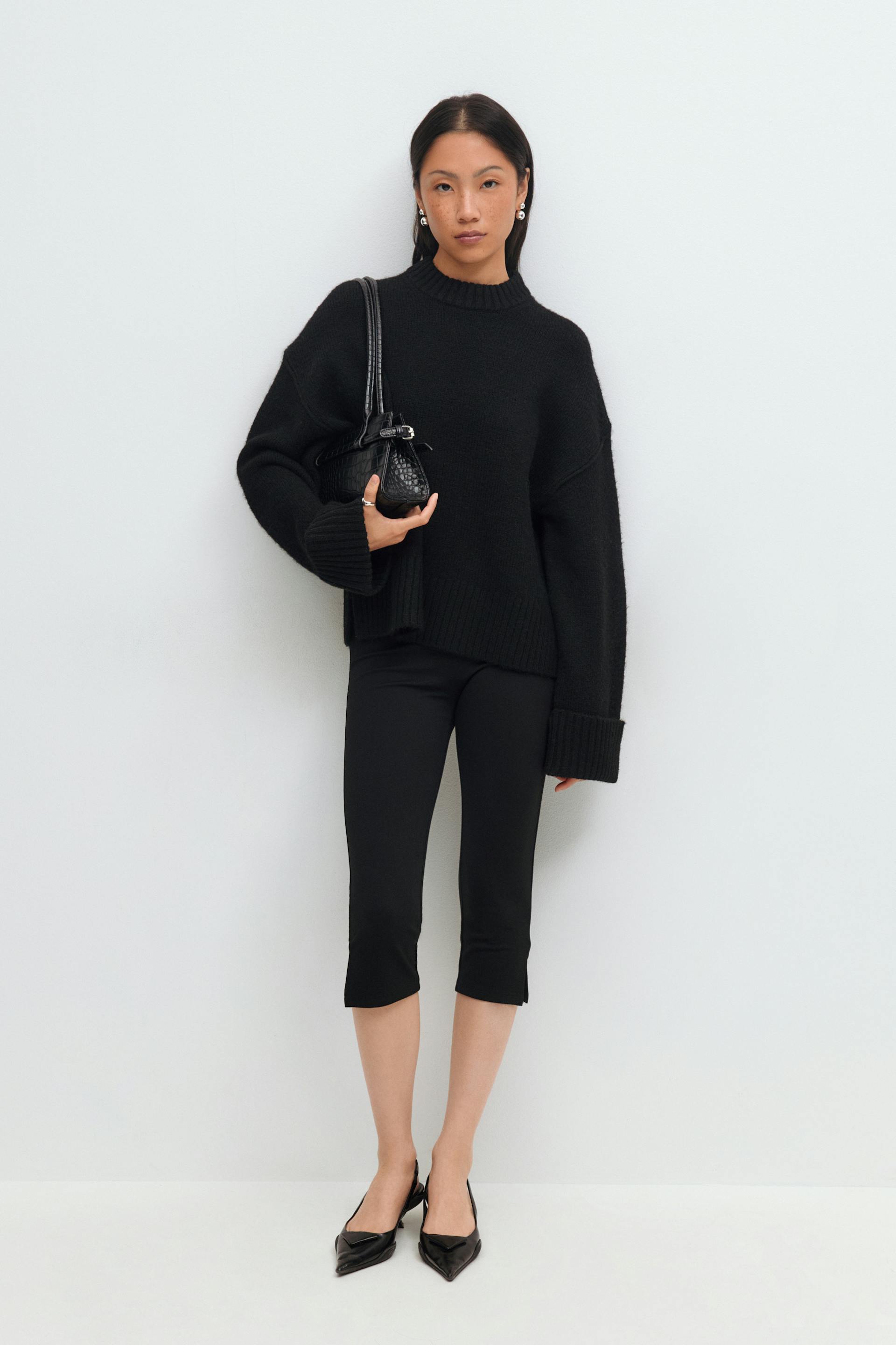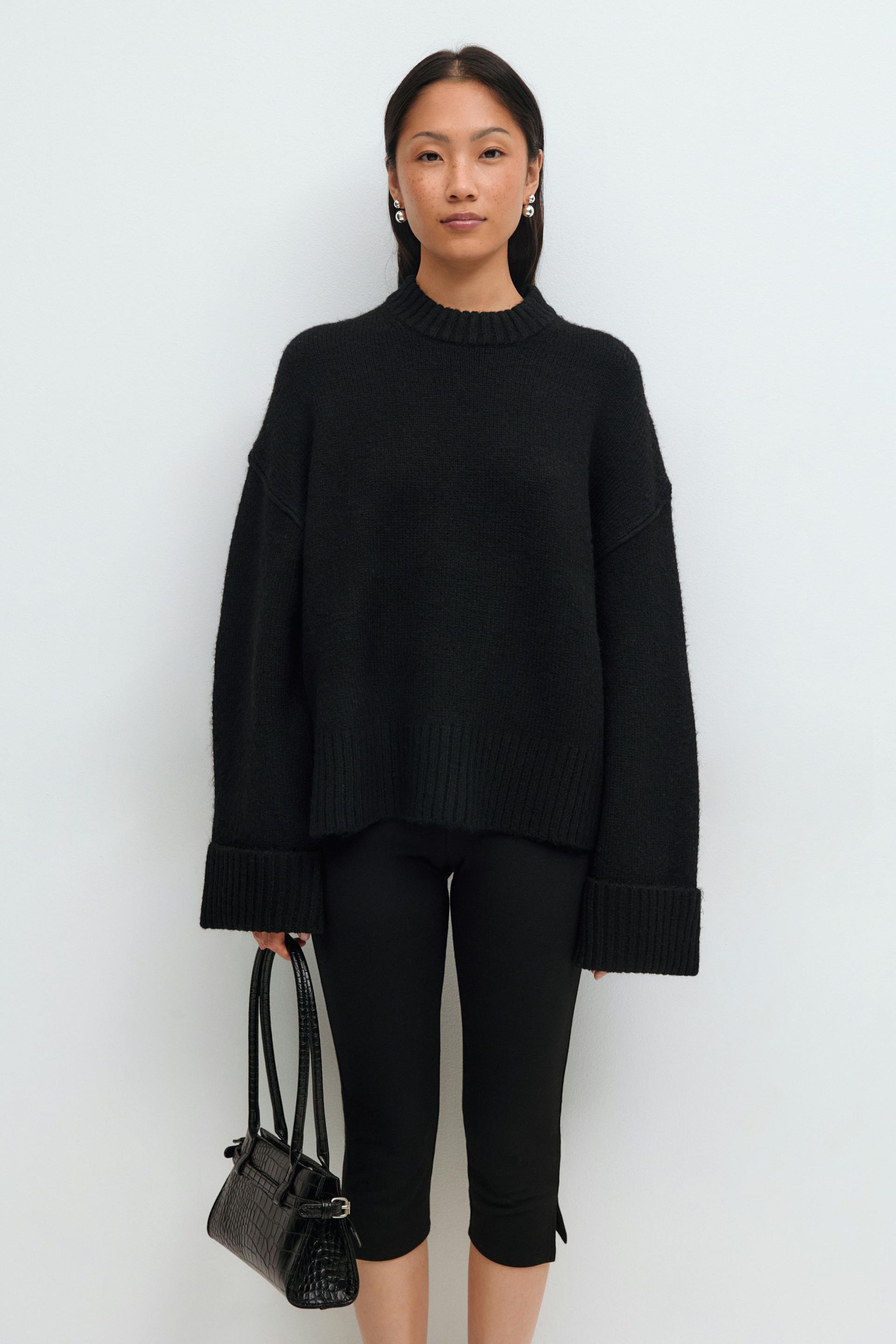 Folded sleeve knitted sweater