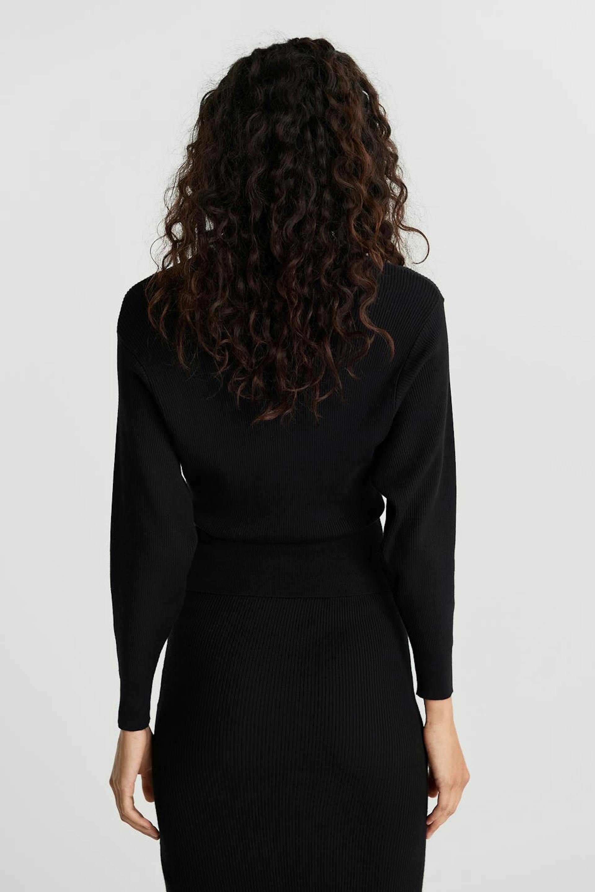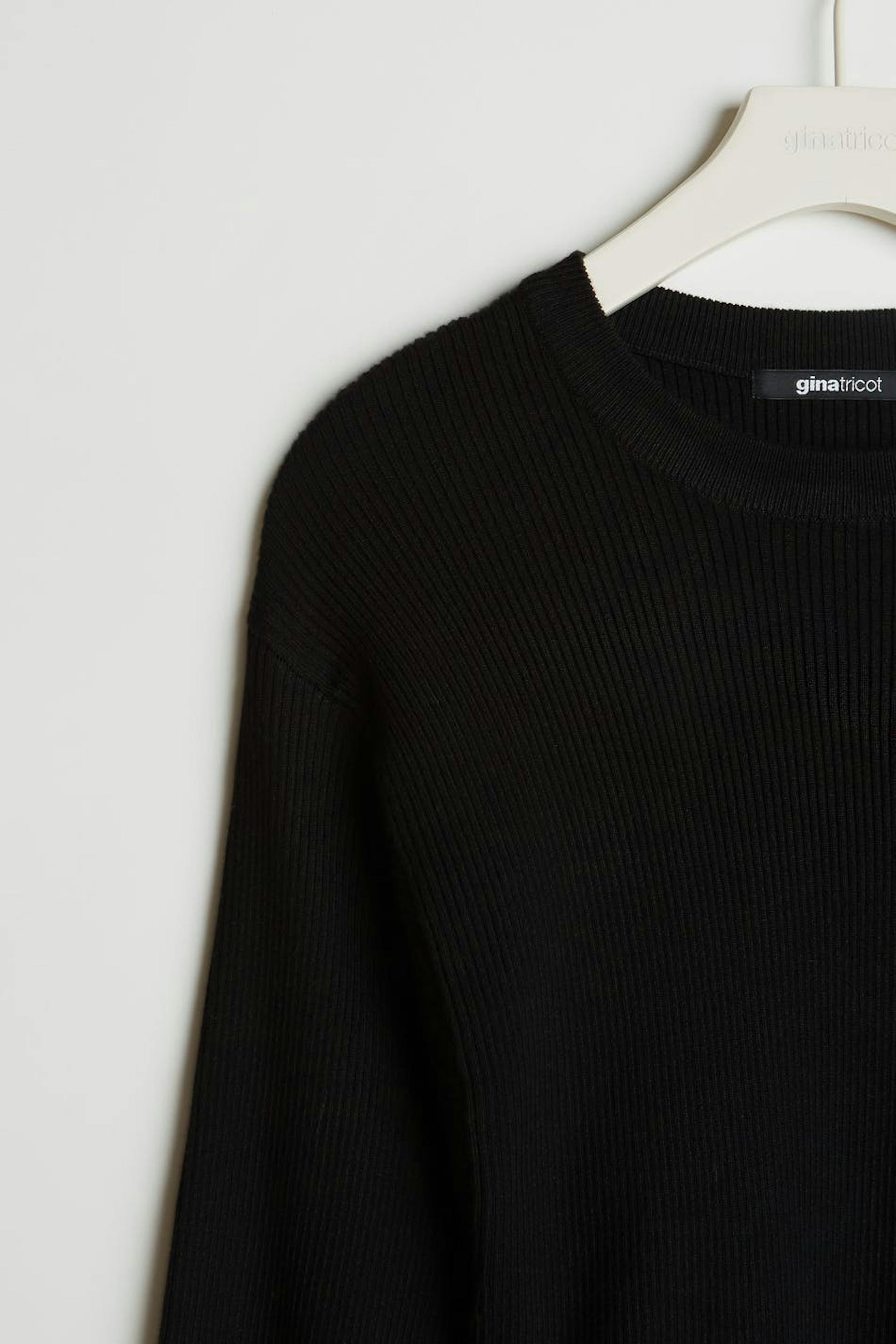 Strikket trøje med dybe ærmegab. Trøjen er sort og strikket.