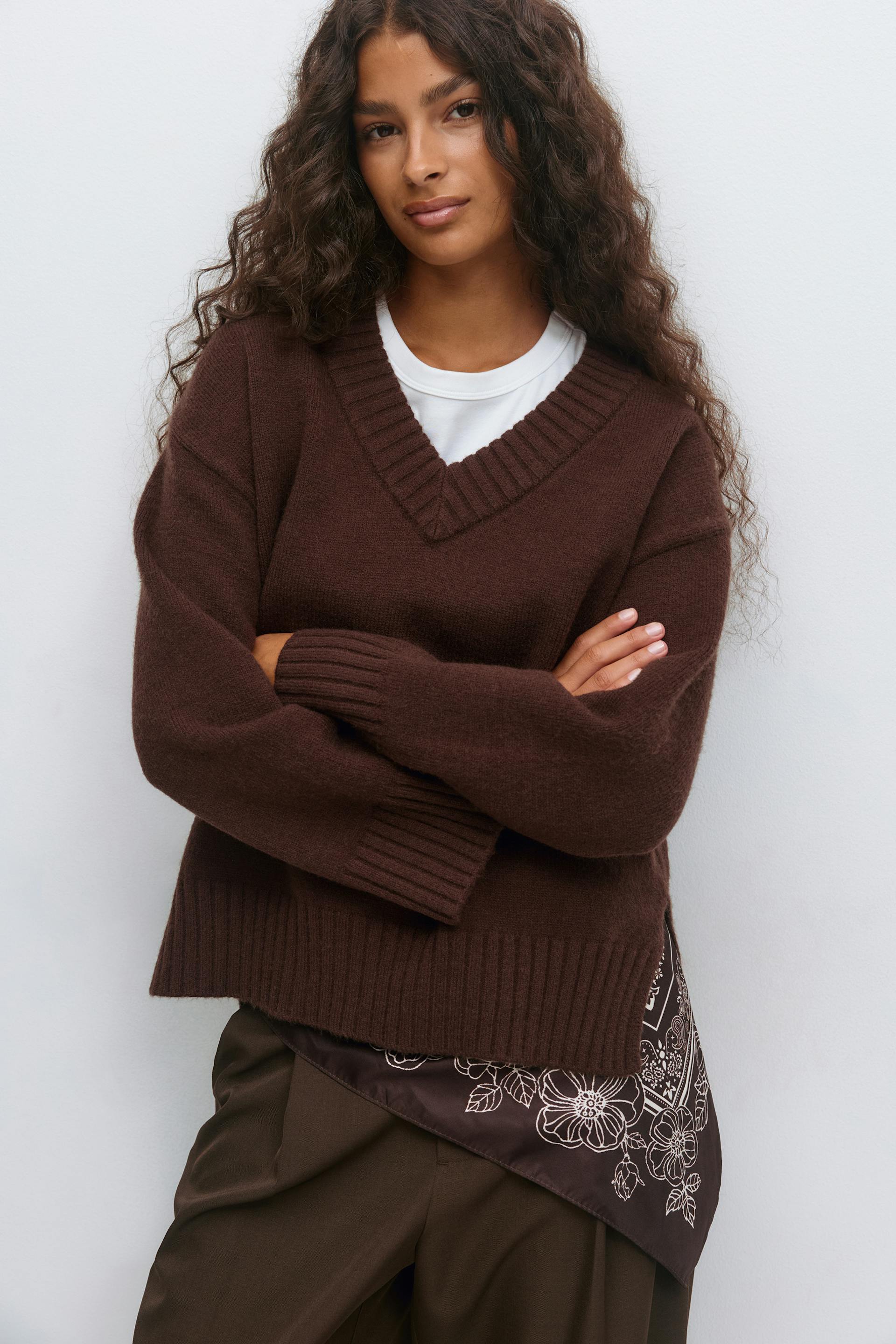 V-neck knitted sweater