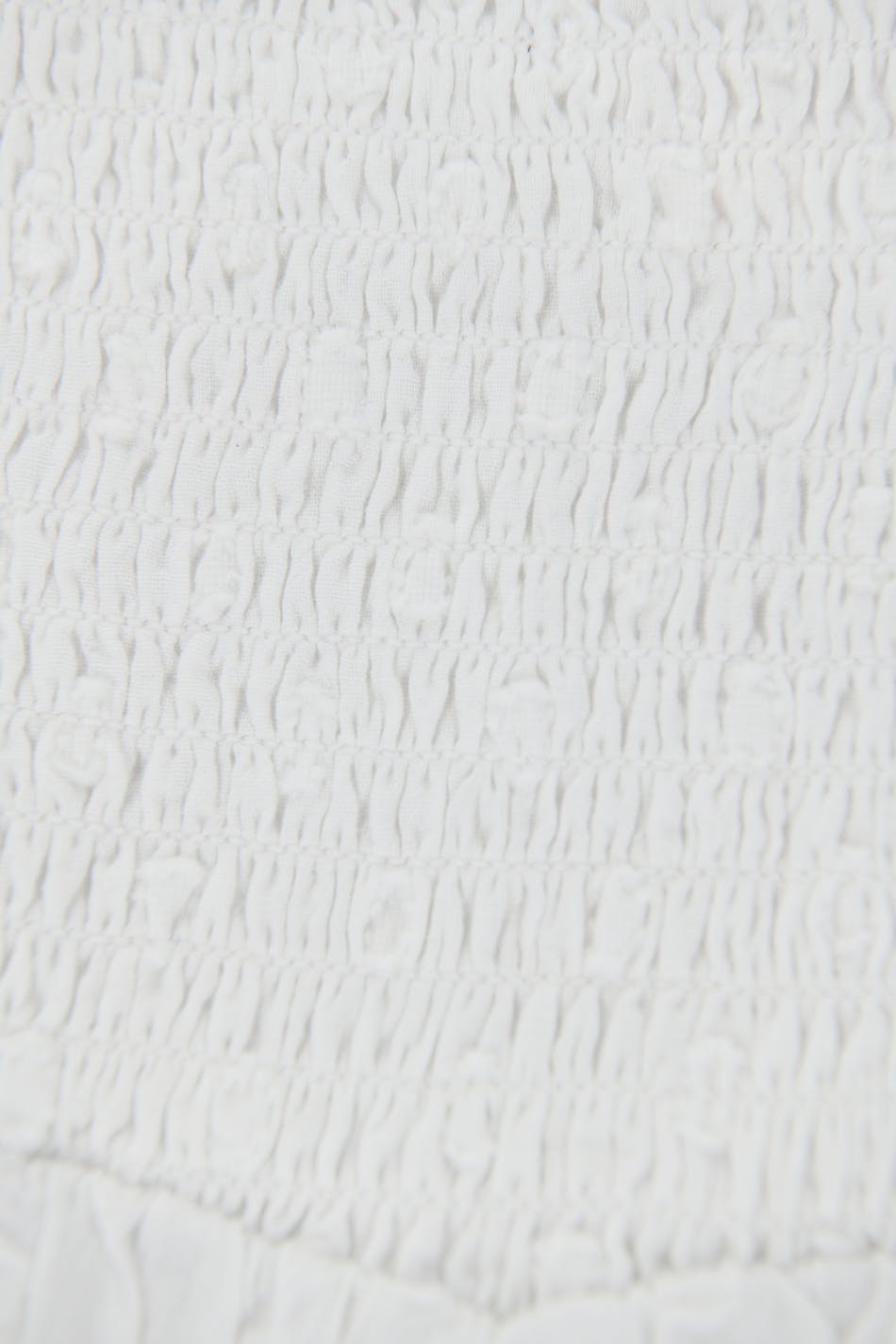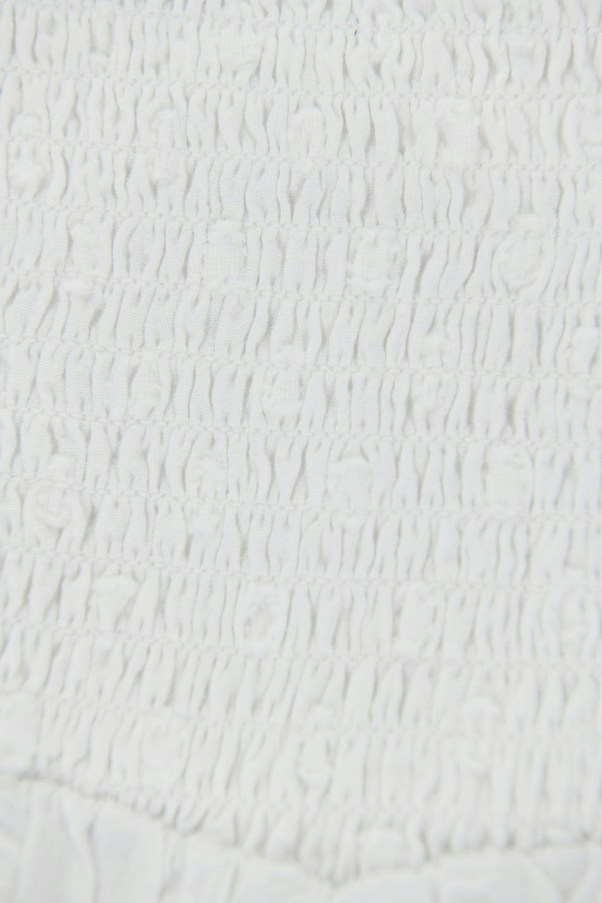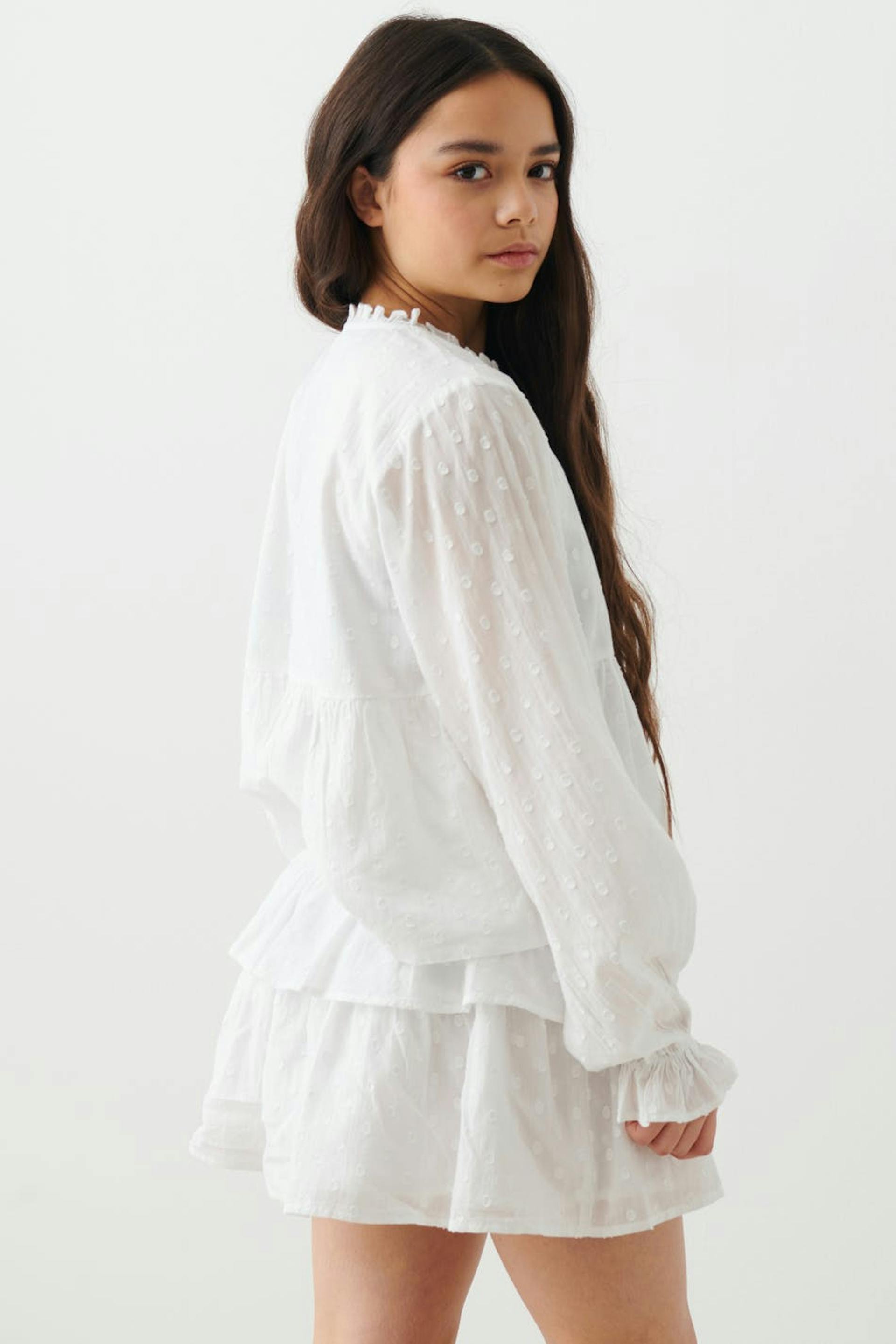 Prikket volantnederdel fra Gina Tricot Young med smocktalje. Nederdelen er hvid og kort og har normal pasform.