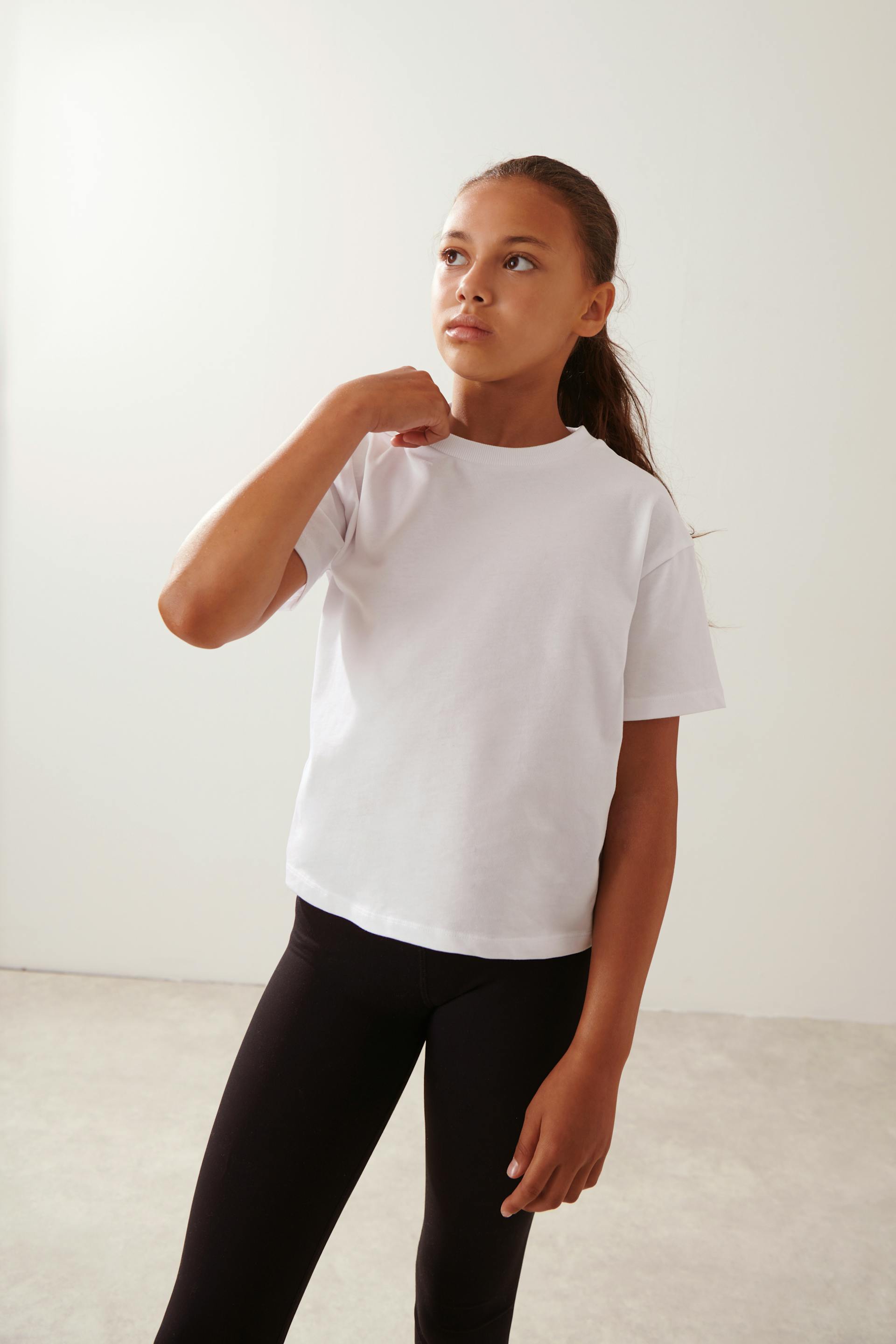 Oversized t-shirt fra Gina Tricot Young med rund udskæring. T-shirten er hvid og har kort ærme.