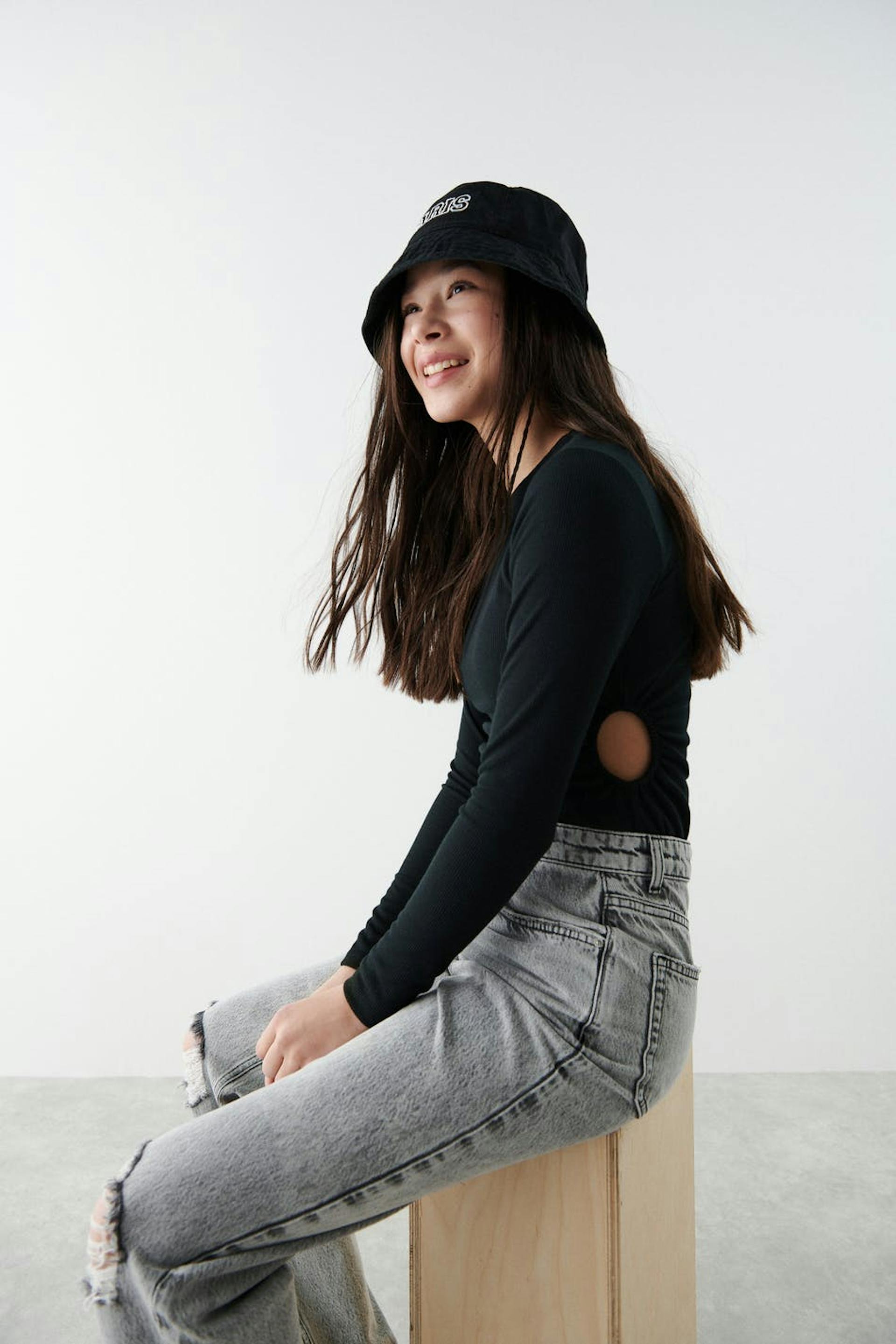Langærmet top fra Young-sortimentet vårt med cut out-detaljer i siderne. Toppen er sort og har en ribbet kvalitet med figursyet pasform.