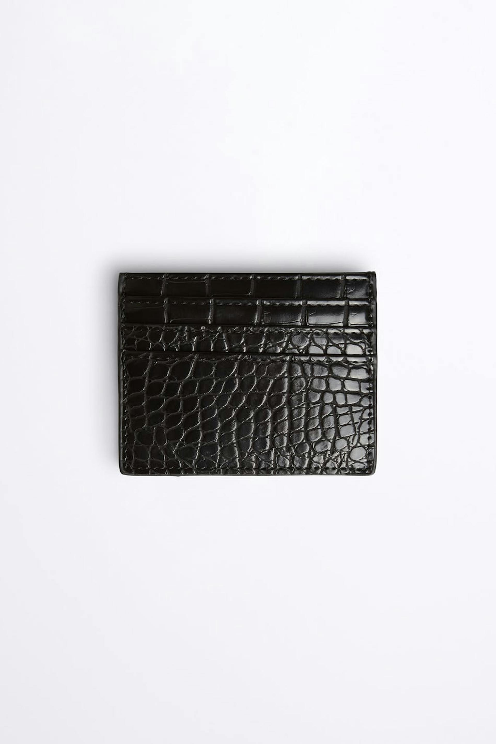 Card holder with a crocodile pattern. The card holder is black.