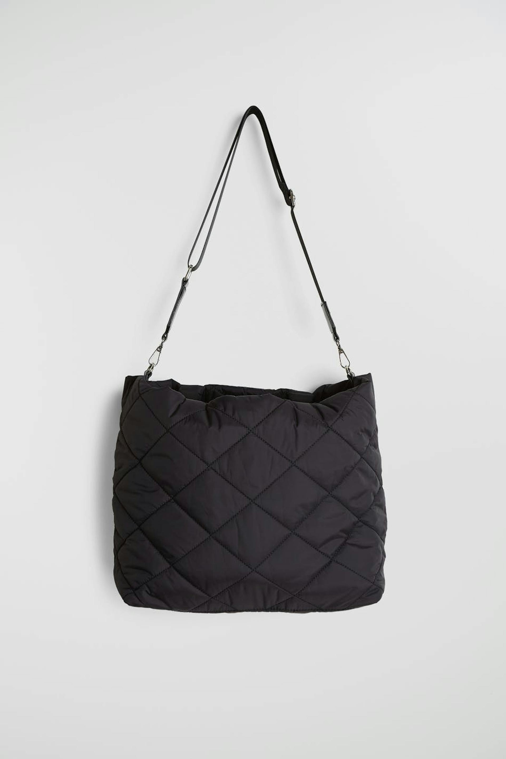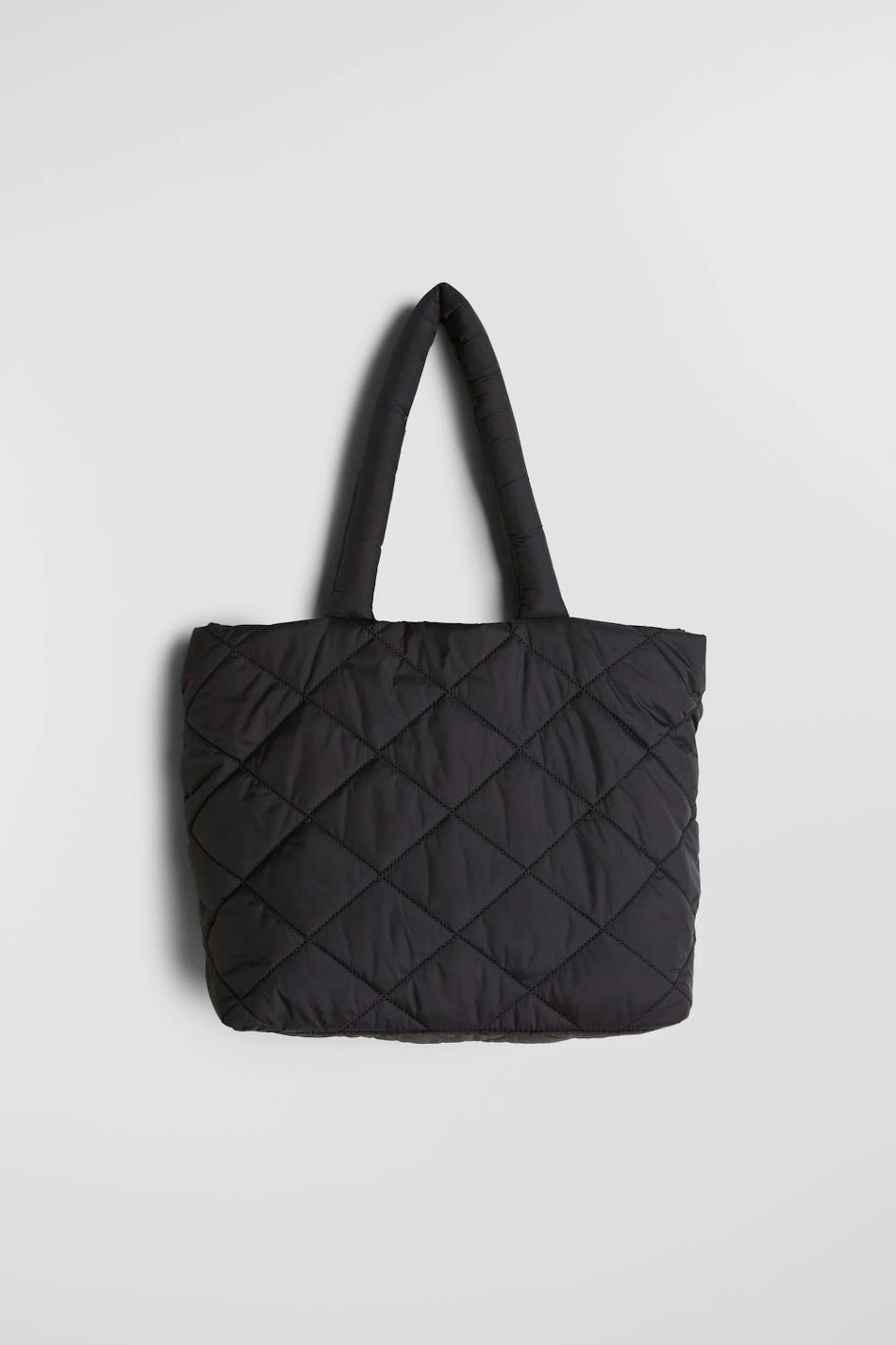 Quilted bag with a shopper design. The bag is black. It is made of nylon.