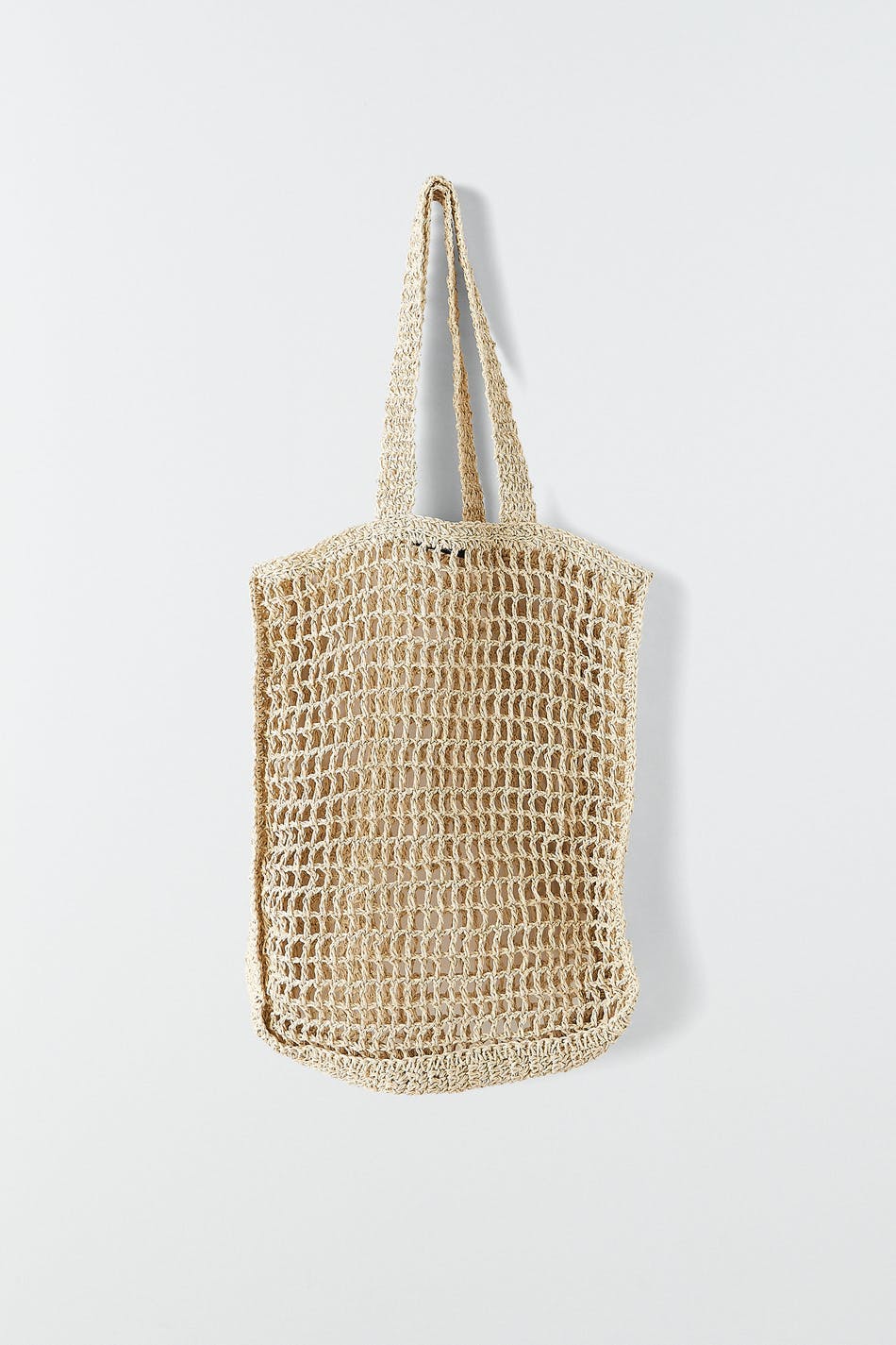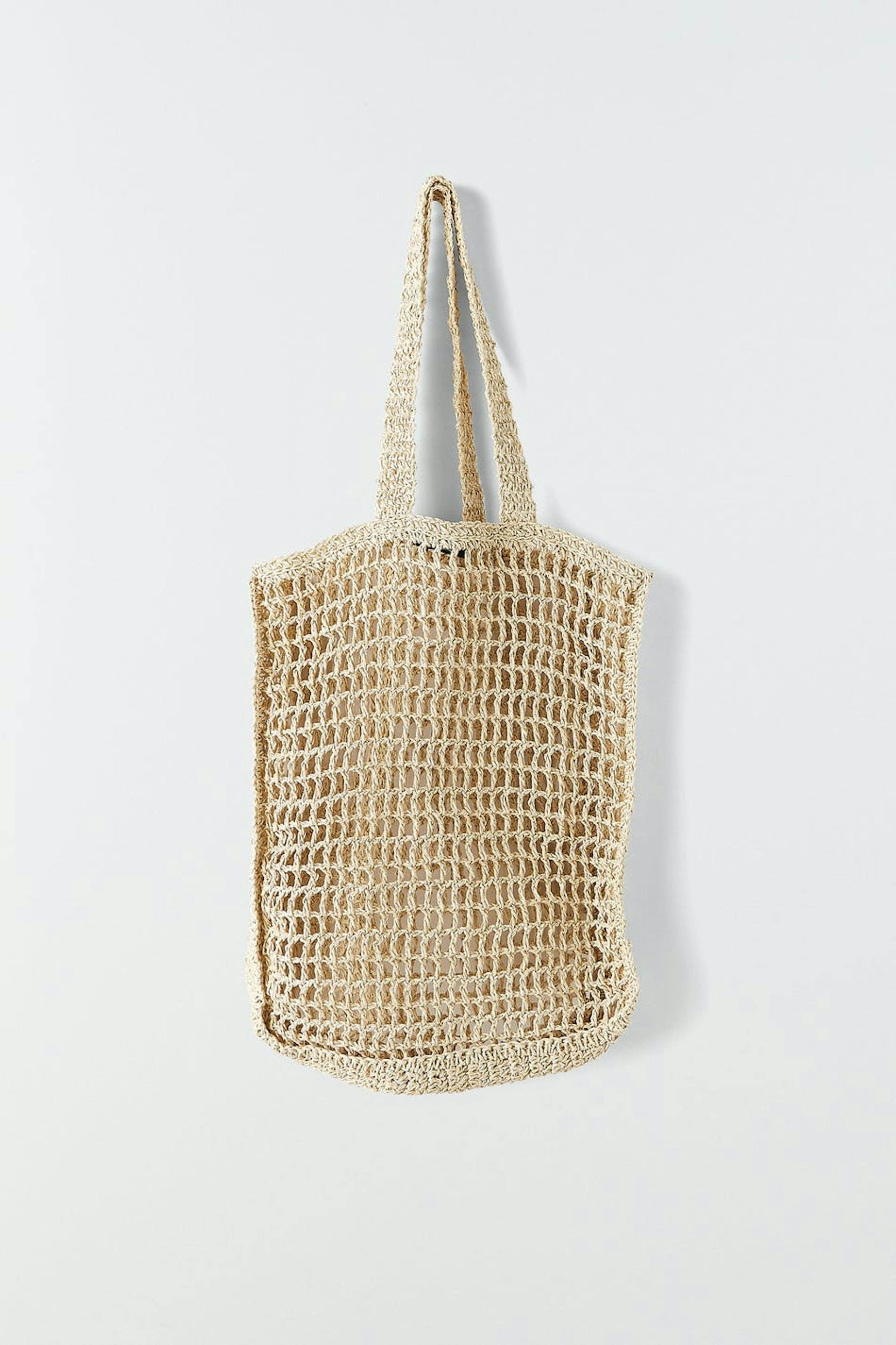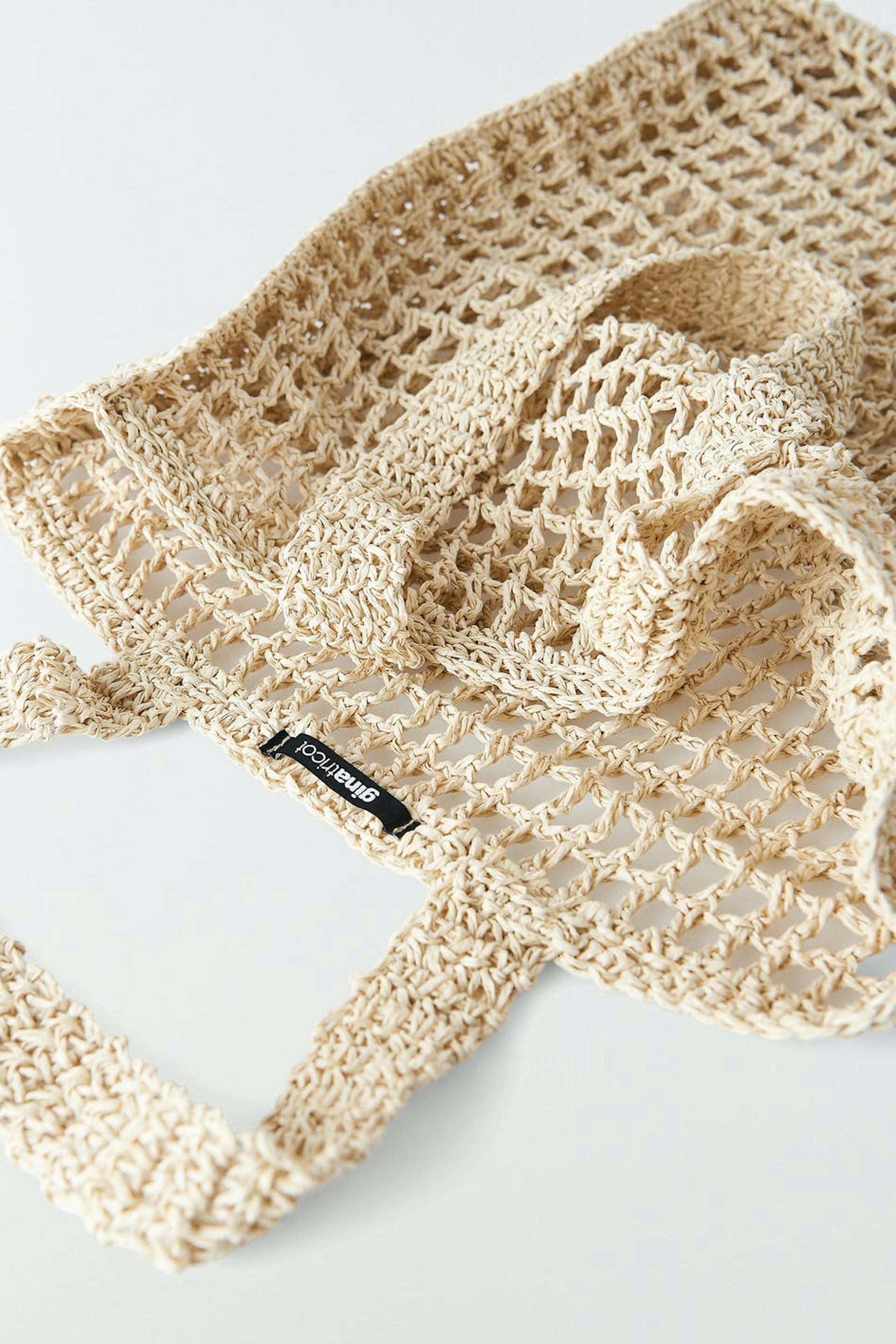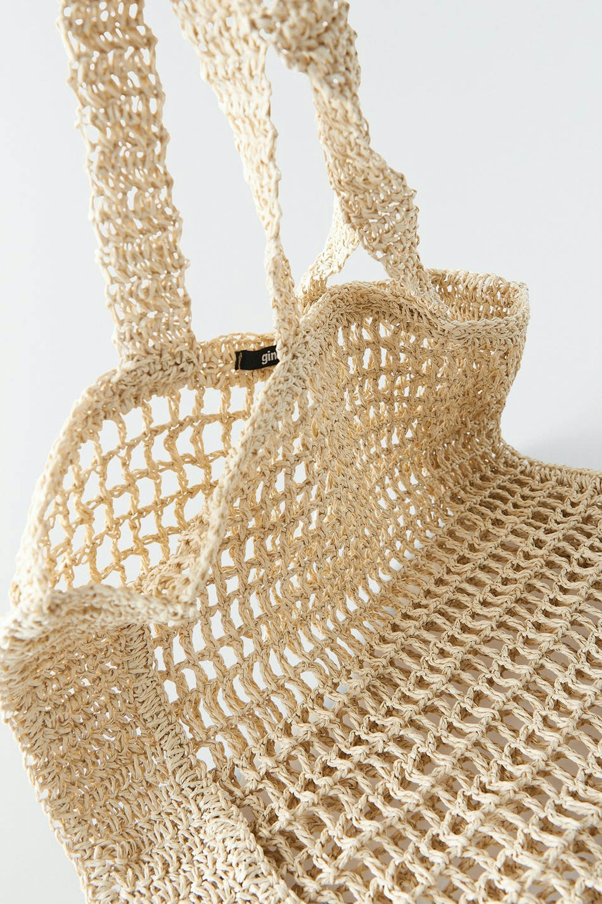Bag with two handles at the top. The bag is beige and has a braided shopper design.