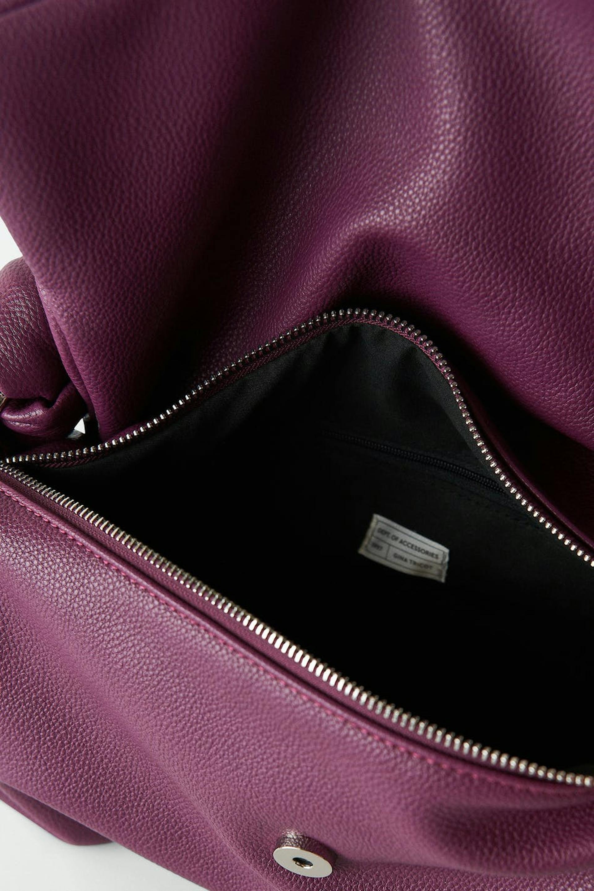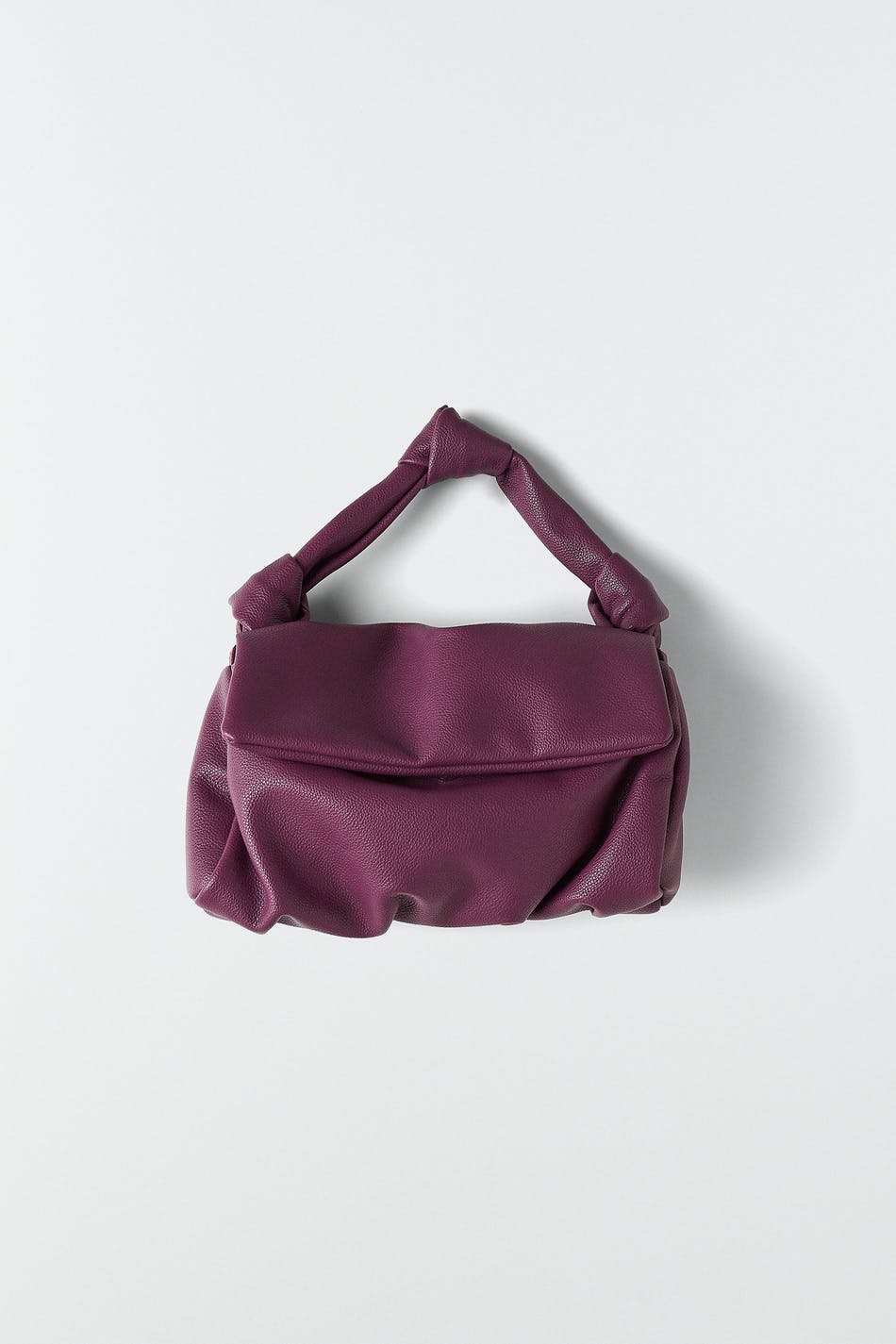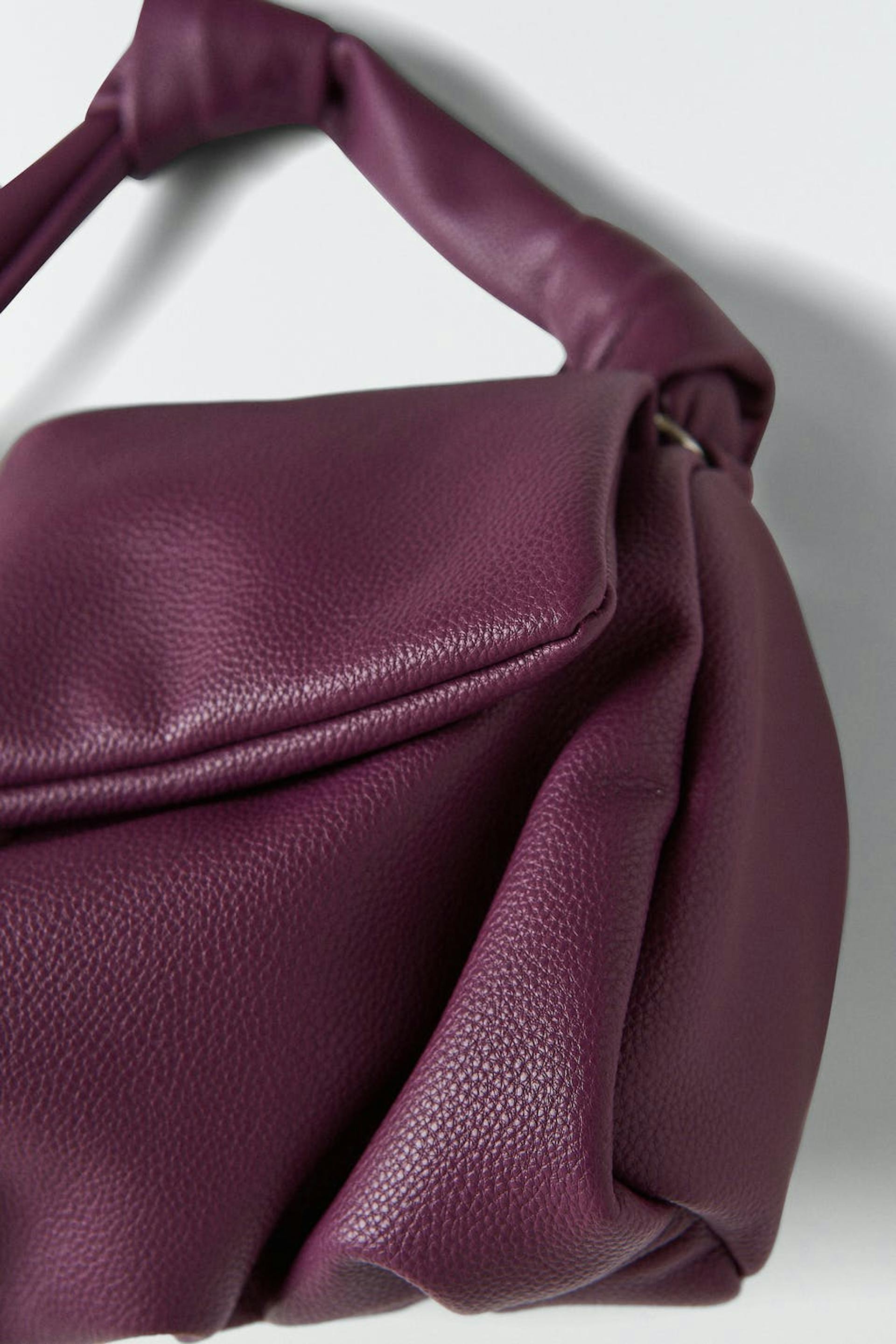 Soft bag in PU with an inner compartment. The bag is red and has a short shoulder strap with knots.