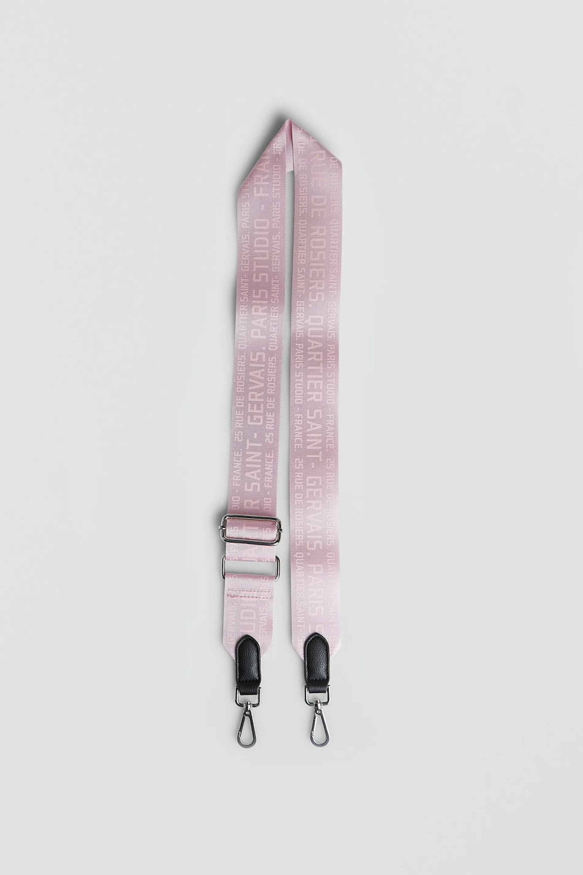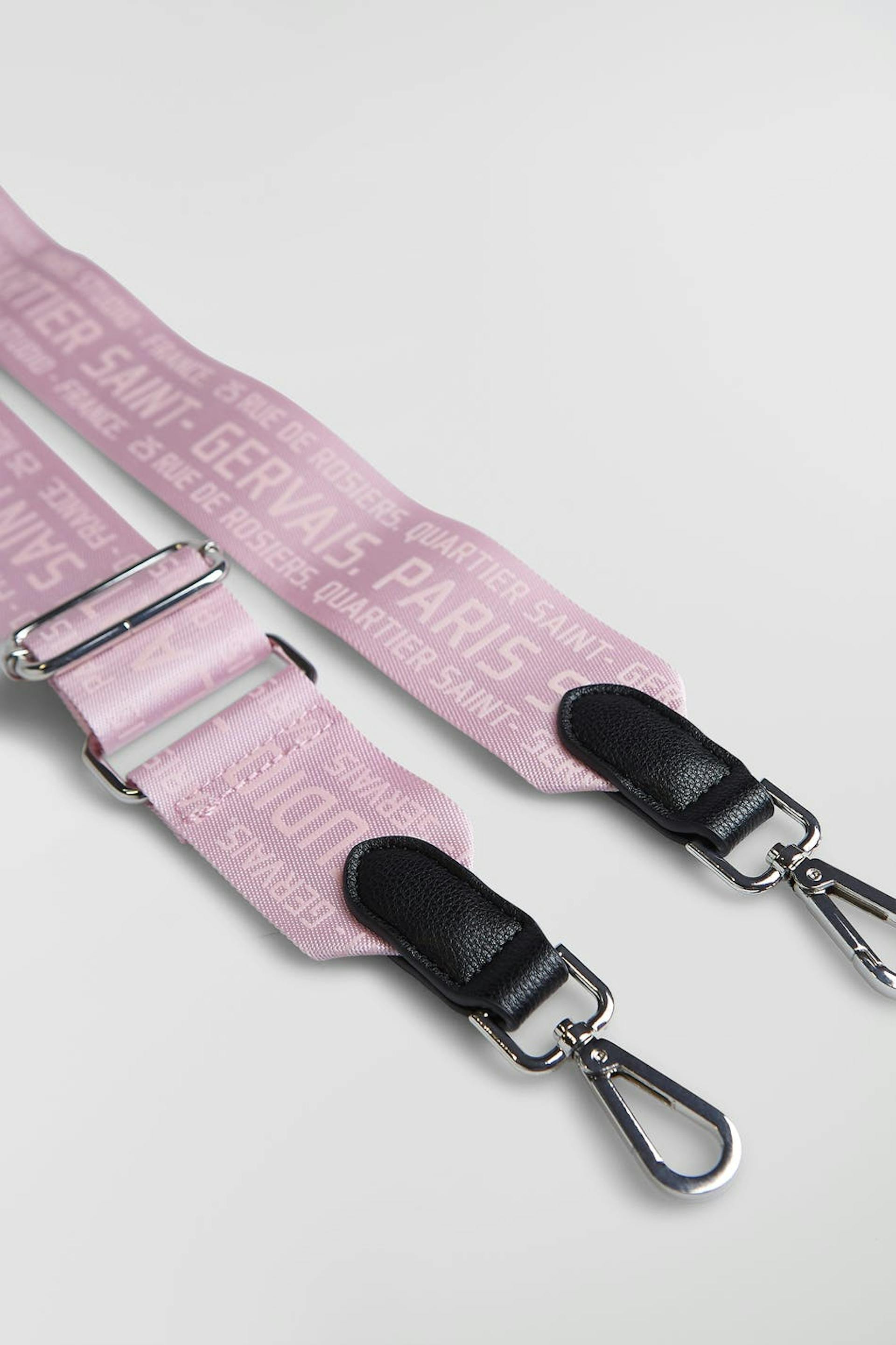 Adjustable shoulder strap. The strap is pink.