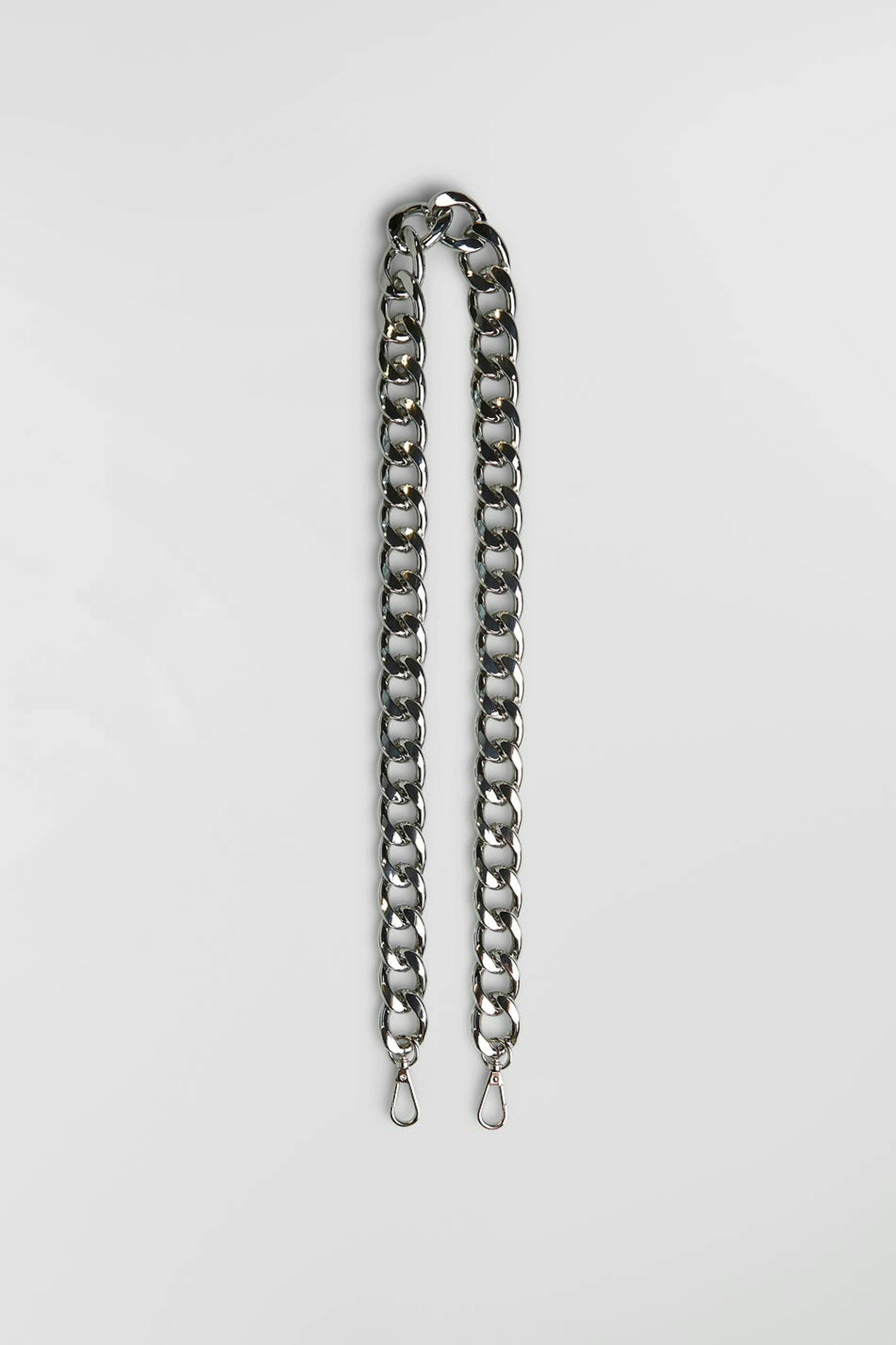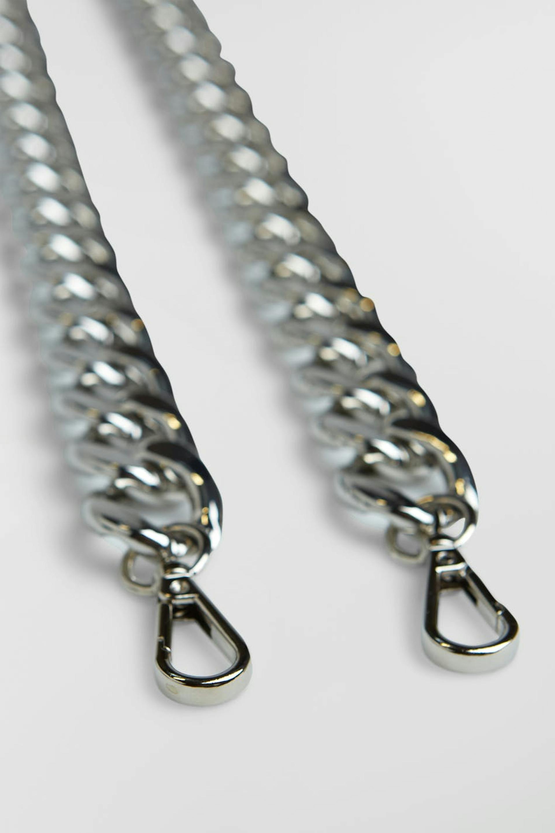 Shoulder strap with a chain design. The strap is silver coloured.